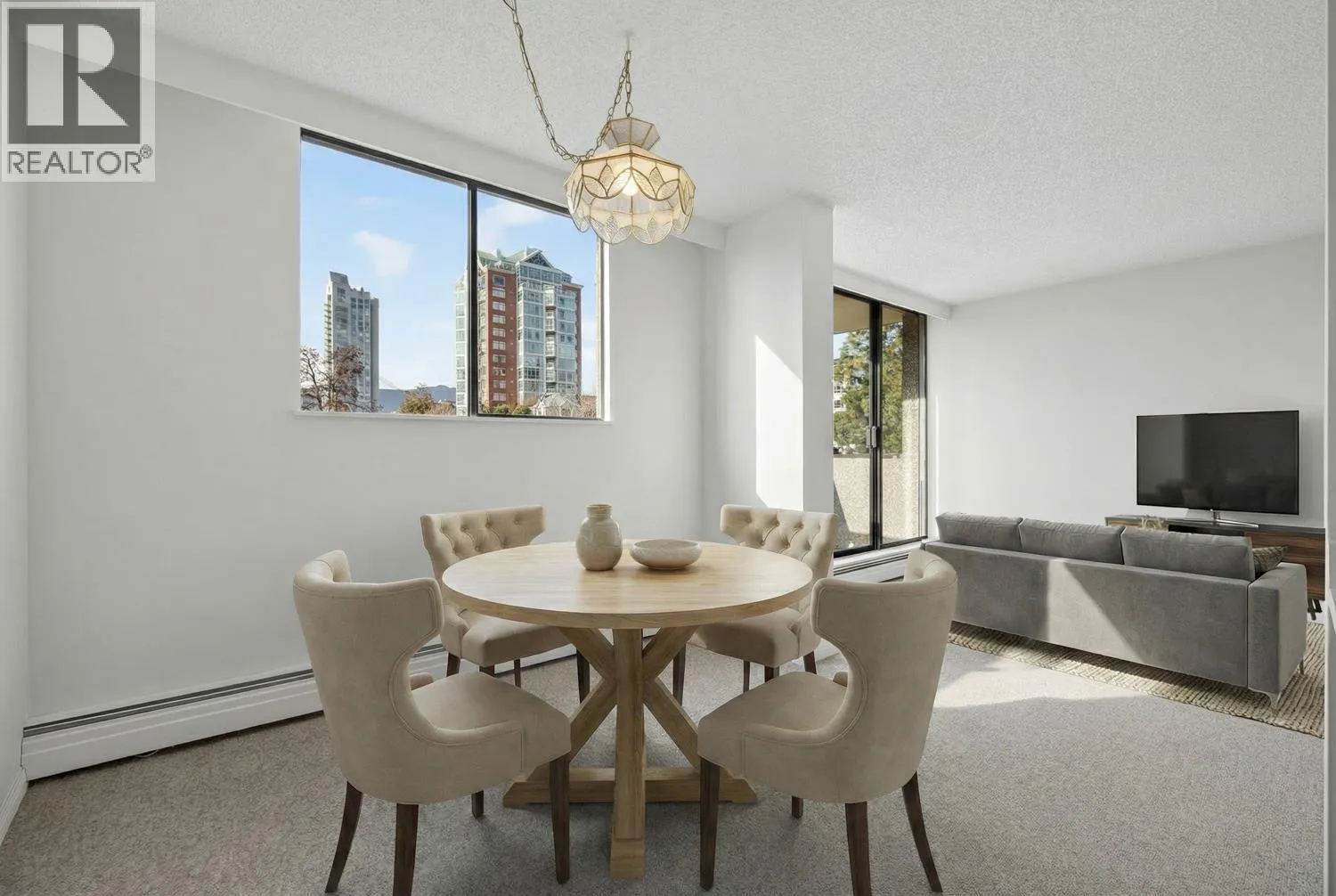 Welcome to Talisman Tower in the heart of Lower Lonsdale. This bright, west-facing 1 bedroom, 1 bathroom home offers over 690 sq.ft of comfortable living with new wool carpet, fresh paint, and a spacious private balcony overlooking the garden courtyard and mountain views. The functional floor plan features a spacious living and dining area, a generous bedroom, and excellent storage. Located in a well-maintained, pet- and rental-friendly concrete building with amenities including a fitness centre, sauna, workshop, guest suite, and shared laundry. Includes parking and storage. Steps to the Shipyards, Lonsdale Quay, Seabus, shops, restaurants, Brewery District and transit. Open House Sat Feb 21st 2-4pm & Sun 22nd 1-3pm! (id:27476)