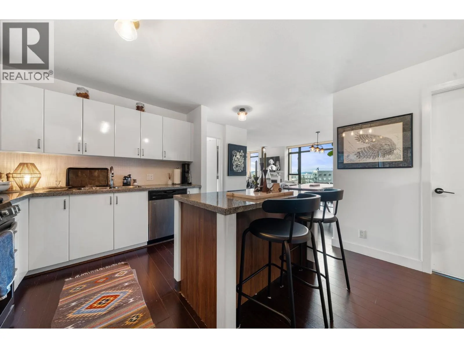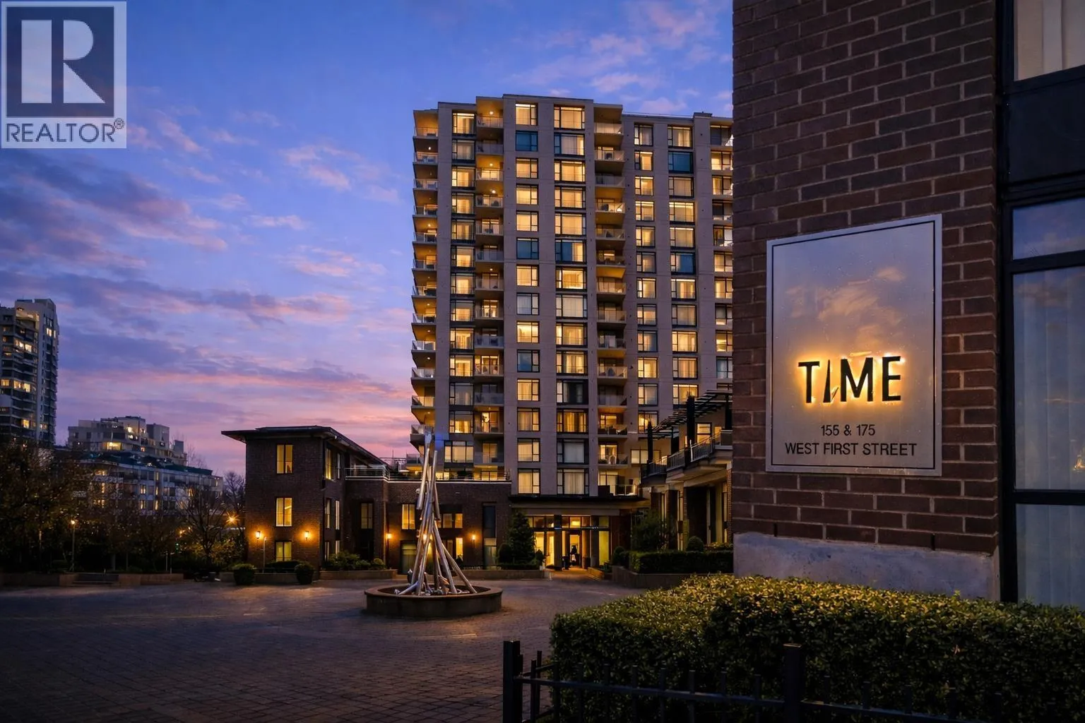 SOUTHWEST CORNER 2 bd, 2bath in the prestigious TIME building with WATER VIEWS and all day sunshine. This well laid out suite features an open floor plan with entertainment style kitchen, stainless steel appliances including a gas stove, white custom cabinetry, granite counters, an island eating bar, laminate flooring in the main living areas, carpet in bedrooms and a a cozy gas fireplace for the more gloomy days. This building offers concierge services & allows one pet. A storage locker & 1 secured parking space are also included. This concrete building is extremely well maintained and located just steps from Lower Lonsdale's best shops & restaurants, the Seabus, buses, Lonsdale Quay, Braithwaite Community Centre/Gym and the ongoing festivities at THE SHIPYARDS. Showings by appointment. (id:27476)