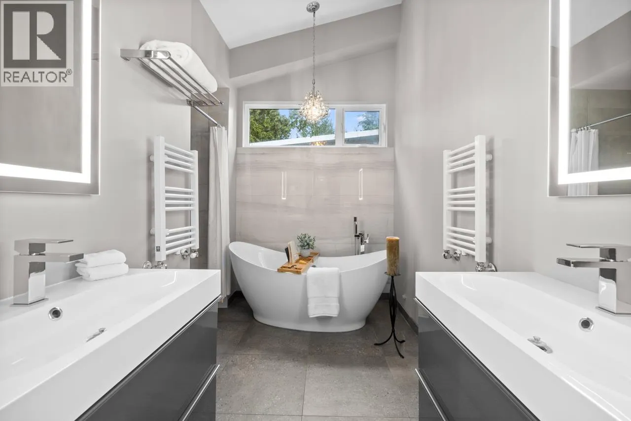 Exquisite custom-built West Coast Modern masterpiece showcasing exceptional craftsmanship and refined finishes throughout a thoughtfully designed, highly functional layout with hydronic heated floors throughout. The chef´s kitchen features premium cabinetry, striking waterfall countertops and elite appliances, perfect for seamless entertaining. Upstairs offers a luxurious primary suite plus two additional bedrooms. The lower level includes a media room, recreation space, flex room and wine cellar. Enjoy vegetable gardens, a private patio with hot tub and dedicated dog run. Complete with a 2-car garage and workshop with 13´ ceilings, plus a legal 2-bedroom suite. A rare offering. Call for your private showing. (id:27476)
