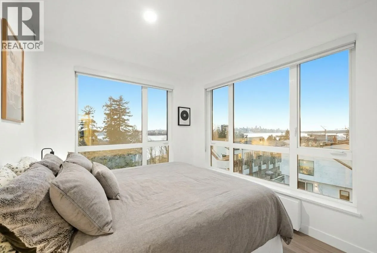 Rare and truly special. The only 3 bedroom + Flex CORNER condo with PANORAMIC ocean, city & park VIEWS on the market in Moodyville. This spacious, light-filled, south-facing home is wrapped in floor-to-ceiling windows that frame breathtaking views - your backdrop to everyday life. The open living space feels generous offering room to gather, relax, & unwind without compromise on space or PRIVACY. A chefs kitchen with gas cooking, integrated appliances, a large island, & plenty of room for hosting. Step outside to your expansive balcony and take in views of the Spirit Trail below, with the city & ocean stretching out in front of you.Bonus - No one is directly above you! Trails, playgrounds, & cafés are right at your doorstep, with Lower Lonsdale & Park & Tilford just minutes away. Insuite storage, quality finishes, motorized blinds, hydronic cooling/heating, 2 parking stalls, pets OK, gym & party room, this home checks all the boxes for elevated condo living. Ideal for families, couples, WFH or downsizers. (id:27476)