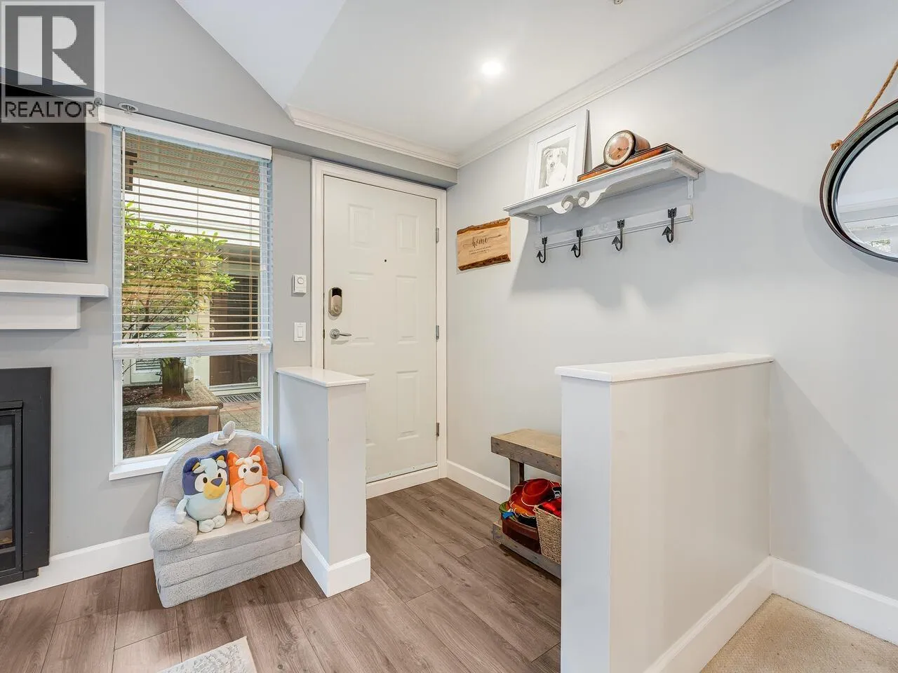 Come discover this beautiful updated 3 bedroom, 2 bathroom townhome in the heart of Lynn Valley. Bathed in natural light and offering three spacious levels, this home is designed for comfortable everyday living. Enter through the charming common courtyard or enjoy the convenience of your own private parkade entrance, complete with two dedicated parking stalls and a personal bike rack. This south facing private end unit is located in the desirable River Rock community. Relax and unwind on your upper deck or enjoy the ground level patio surrounded by green space. Lynn Valley Mall, Kirkstone Park, and Karen Magnussen Recreation Centre and several schools are only a short walk away. Experience the warmth of a Vibrant community and the comfort of this place you will be proud to call home. (id:27476)