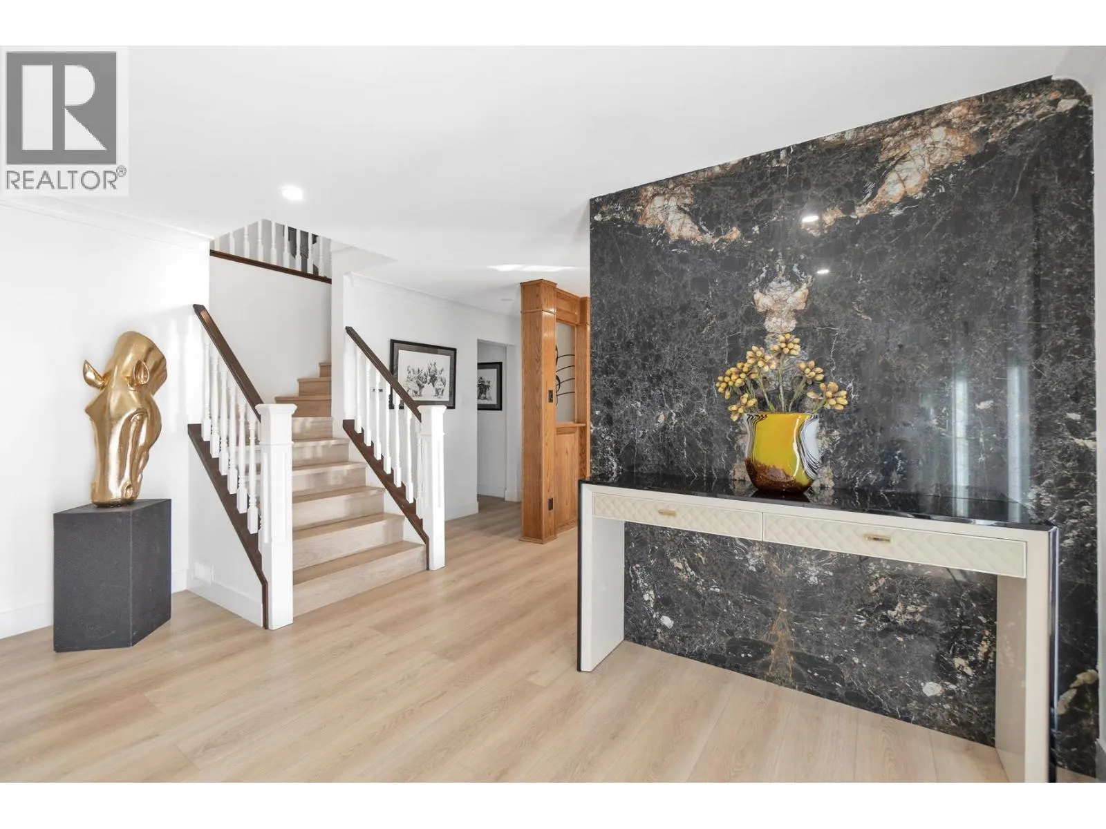 Welcome to this beautifully updated home in the heart of Upper Delbrook. Offering over 3,800 sq.ft. of fully above-ground living space, this residence has been thoughtfully renovated with high-quality finishes throughout, including a brand-new kitchen with premium appliances, floor-to-ceiling natural stone features, a spectacular wet bar, and air conditioning. The functional layout features five bedrooms, including the primary bedroom on the main living level. Expansive living areas open onto a private backyard with a large covered deck-ideal for year-round entertaining. Situated on a quiet street within the Braemar Elementary and Carson Graham Secondary catchments, this is a rare opportunity in North Vancouver. Open House: Saturday & Sunday, Feb 21st & 22nd | 2-4 PM (id:27476)