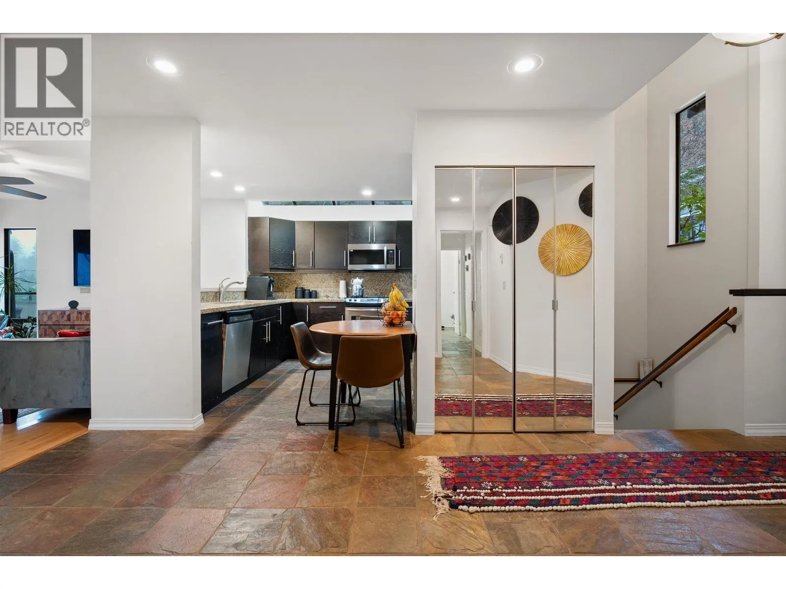 Tucked away on a quiet cul-de-sac in the heart of Grousewoods, this beautifully maintained reverse plan 1/2 Duplex invites you into spacious comfort and stunning southwest views of water and mountain. Vaulted ceilings, warm hardwood and slate floors and a bright solarium upstairs set the stage for open concept living and entertaining. Downstairs, three generous bedrooms including the primary bedroom with walk-in-closet and heated floor ensuite walk our to a newly built patio and landscaped garden , perfect for relaxation. The bonus is a large rec room that easily works as a fourth bedroom, or the guest room. You're minutes to Grouse Mountain, hike trails at your doorstep and the tennis courts and soccer field just a block away. This is a rare blend of lifestyle, comfort and location. (id:27476)