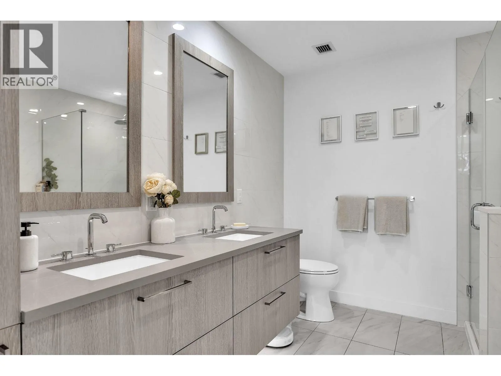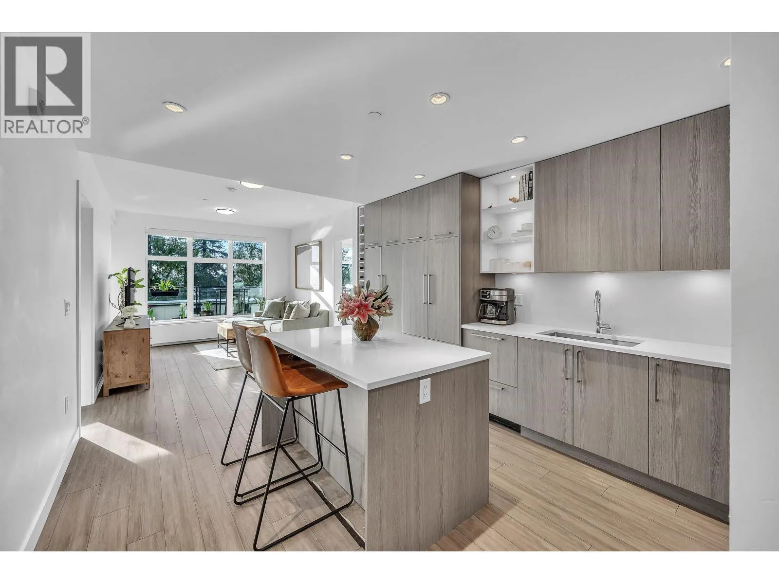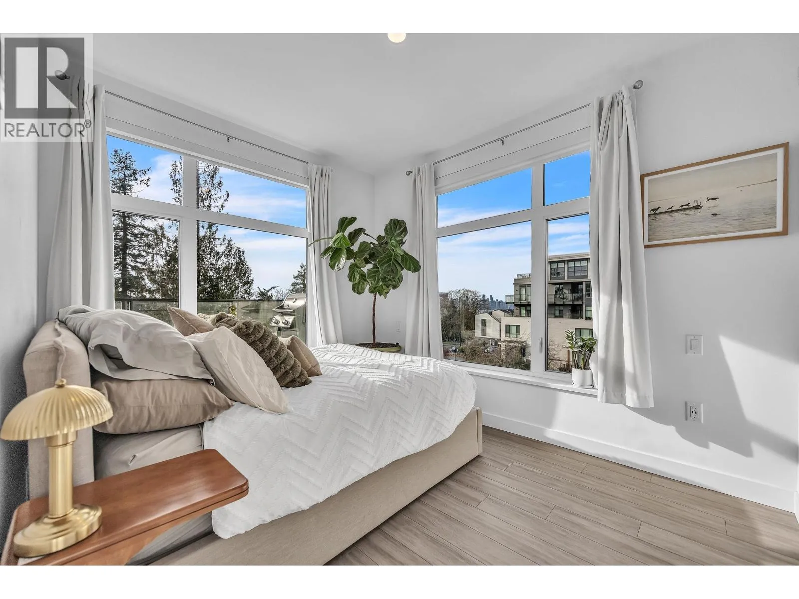 Corner end unit with lots of windows and fantastic layout, this meticulously crafted 2-bed, 2-bath home at Green on Queensbury also features a versatile den for added flexibility. This rarely available, quiet and private park-front residence offers stunning water views, city skyline vistas, and breathtaking sights of Mount Baker, along with direct outlooks, over Moodyville Park. An oversized balcony extends the living space outdoors. The spacious open-concept floor plan is complemented by a high-end integrated kitchen and premium appliances, seamlessly blending style and function. Enjoy 9' ceilings, forced air heating, and air conditioning for year-round comfort. Prime location, walk to Lonsdale Quay & shopping. Amenities include a gym, guest suite, party room. Open House Sat/ Sun 2-4 pm. (id:27476)