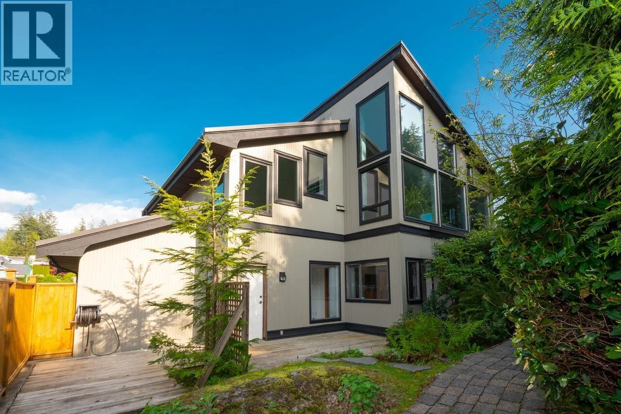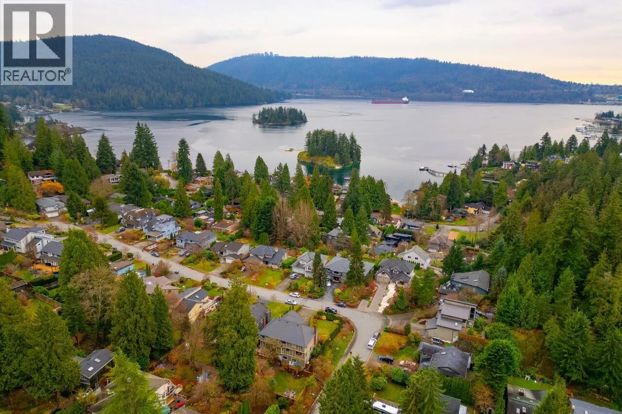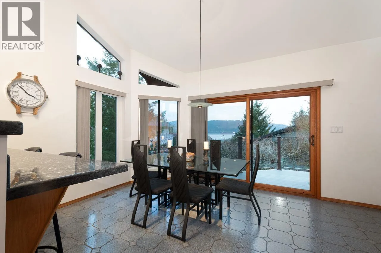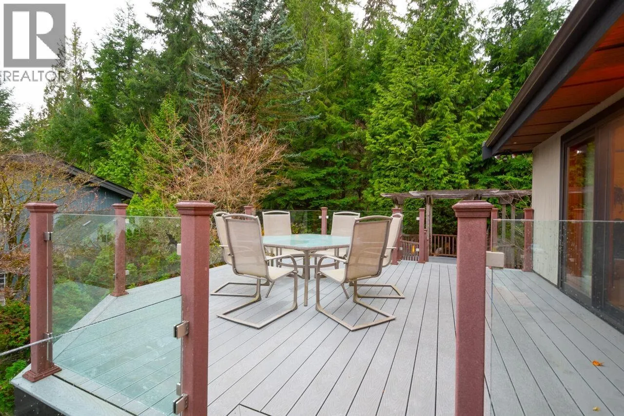 Don´t miss this exceptional West Coast contemporary, perfectly positioned on one of Deep Cove´s most coveted streets. Thoughtfully designed with a reverse living plan to capture sweeping ocean views, this stunning residence offers 4 bedrooms and 4 bathrooms across three beautifully appointed levels. The home features a dedicated office, inviting family room, and abundant storage throughout. Soaring vaulted ceilings, expansive picture windows, and skylights bathe the interiors in natural light, showcasing the surrounding forest and mountain vistas. With over 1,000 sq. ft. of sun-drenched decks and patios, this is truly an entertainer´s dream. A rare, large flat driveway accommodates up to six vehicles in addition to a two-car garage. Backing onto a private greenbelt and just a short stroll to parks and beaches, this home offers the perfect blend of tranquility and coastal convenience. (id:27476)