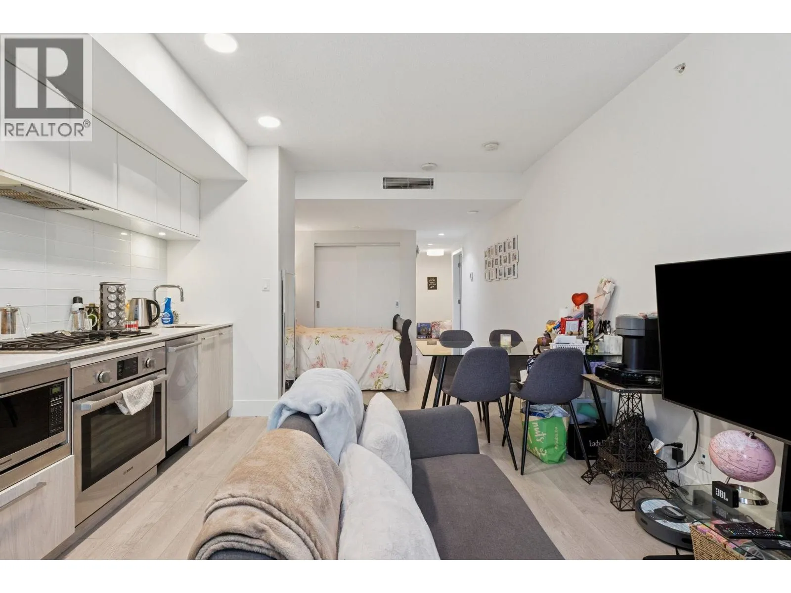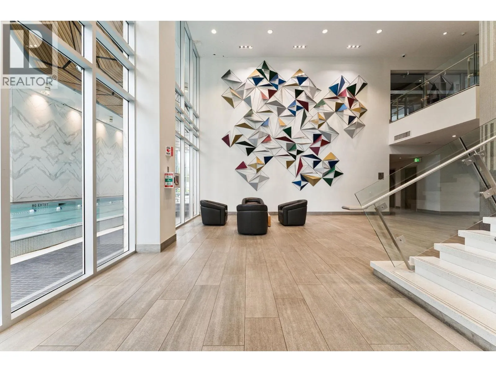 Welcome to COMPASS AT SEYLYNN VILLAGE, One of the North Vancouver's newest luxury complex! This stunning residence features a spacious balcony and floor-to-ceiling triple-ply windows. The bright west-facing studio is ideal for stylish living and entertaining, offering air conditioning, wide plank laminate flooring, high-end Bosch stainless steel appliances, Quartz countertops, and a gas range with a BBQ hookup. Enjoy fantastic amenities, including a party room with a full kitchen, concierge service, guest suite, visitor parking, bike storage, and a dog wash area. Plus, gain exclusive access to the Denna Club's impressive 14,000 sq. ft. amenity space. (id:27476)