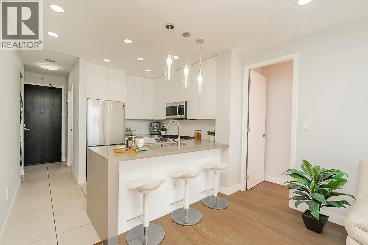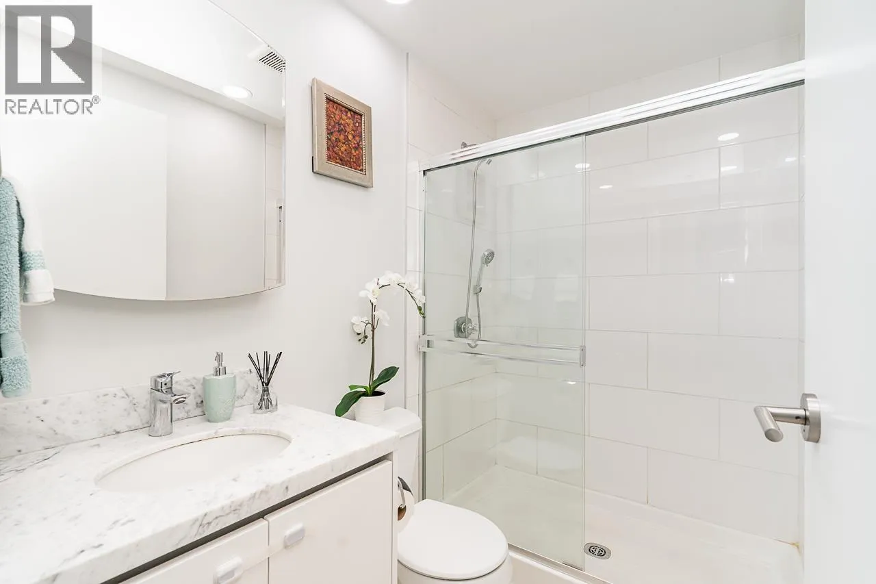 Live the ultimate Lower Lonsdale lifestyle in this fully renovated 2 bed, 2 bath condo on the 10th floor with beautiful east-facing water views. The home features engineered hardwood floors, new lighting throughout, a bright white kitchen with waterfall countertop and modern appliances, plus two marble-finished bathrooms. The primary ensuite features a heated towel warmer and custom European faucet. Motorized blinds, upgraded hardware, and fresh Benjamin Moore paint make it move-in ready. Just steps to Lonsdale Quay, Shipyards, SeaBus, waterfront trails, cafés, restaurants, and local markets-enjoy morning walks along the pier, quick access to downtown Vancouver, vibrant community energy, and the perfect blend of urban convenience and seaside charm. OPEN HOUSE SAT March 7 2-4 PM. (id:27476)