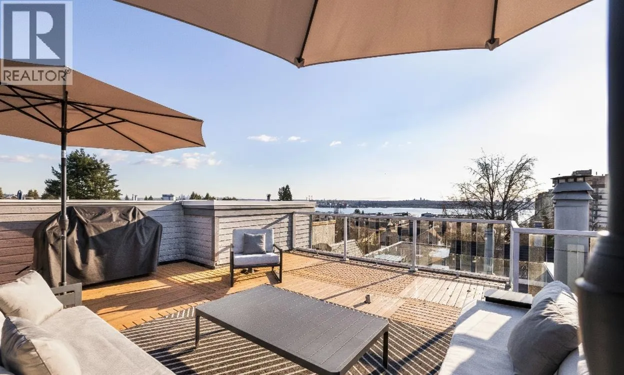 Beautifully renovated 3-bedroom, 2-bath townhouse in the heart of Lower Lonsdale. This reverse-plan home offers very spacious bedrooms on the main and lower levels for privacy, with a stunning top-floor living space designed to capture natural light and sweeping views of the Water and Vancouver skyline. Enjoy seamless access to your sensational 500sqft rooftop deck, perfect for entertaining or relaxing at sunset. Just steps to Lonsdale Avenue´s shops, cafés, restaurants, transit and Sea Bus, plus excellent schools, parks and recreation nearby. This boutique 4-plex comes with a private garden, 2 parking stalls, additional storage and super low maintenance fees! Come and experience exceptional North Shore living! (id:27476)