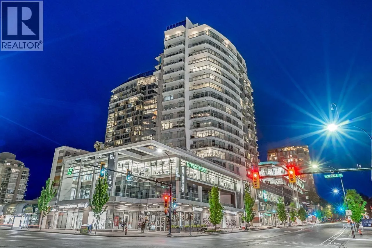 Welcome to this one bedroom open plan home at Centreview by Onni. Offering views of the North Shore mountains and conveniently located in vibrant Central Lonsdale. Benefits include gourmet kitchen with breakfast bar, upscale appliances, beautiful countertops, ample storage, radiant in-floor heat and air conditioning. The amenities are second to none and include concierge service, outdoor swimming pool and hot tub, sauna/steam room, fitness centre, yoga studio, spin room, squash court, media room, party room, 2 guest suites and a bike room. One parking spot (very close to elevators) and spacious storage locker for convenience. Steps away from Whole Foods, public transit, the library, parks, restaurants and more, this ideally located building is also pet friendly. ***Private viewings only*** (id:27476)
