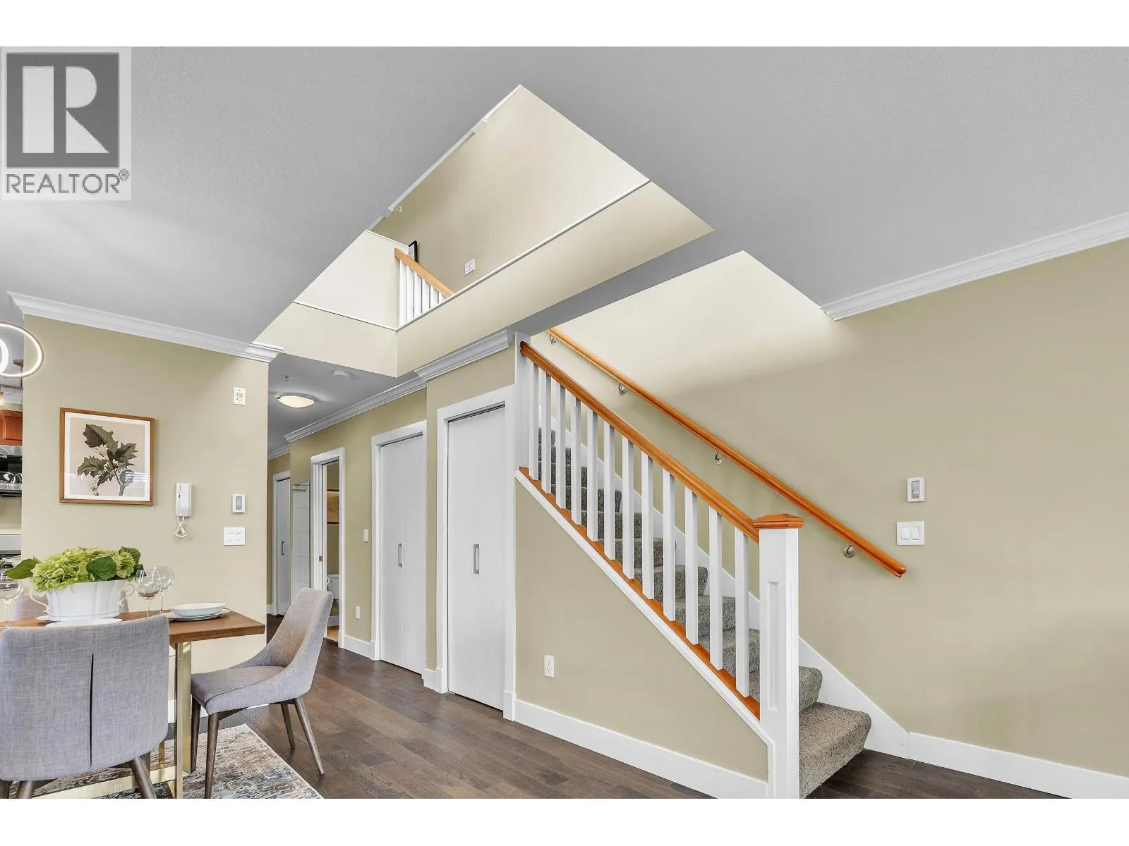 Central Lonsdale remains one of North Vancouver's most sought-after neighbourhoods for good reason: WALK to cafes, restaurants, shops, Whole Foods, parks, excellent schools, and transit with easy access downtown. It's urban convenience wrapped in a community feel. Boutique scale, PENTHOUSE position, and a view that reminds you why you live on the North Shore-so you can watch the fireworks without leaving home ! This 2 level unit with stunning VAULTED CEILINGS gives you the feel of a townhouse. Den on main is perfect for a baby's room or home office. This penthouse represents not just a home, but a lifestyle choice - offering sophisticated urban living with unparalleled convenience and natural beauty literally at your doorstep. Pets welcome! EVprkng and storage! OH Sun2-4pm! (id:27476)