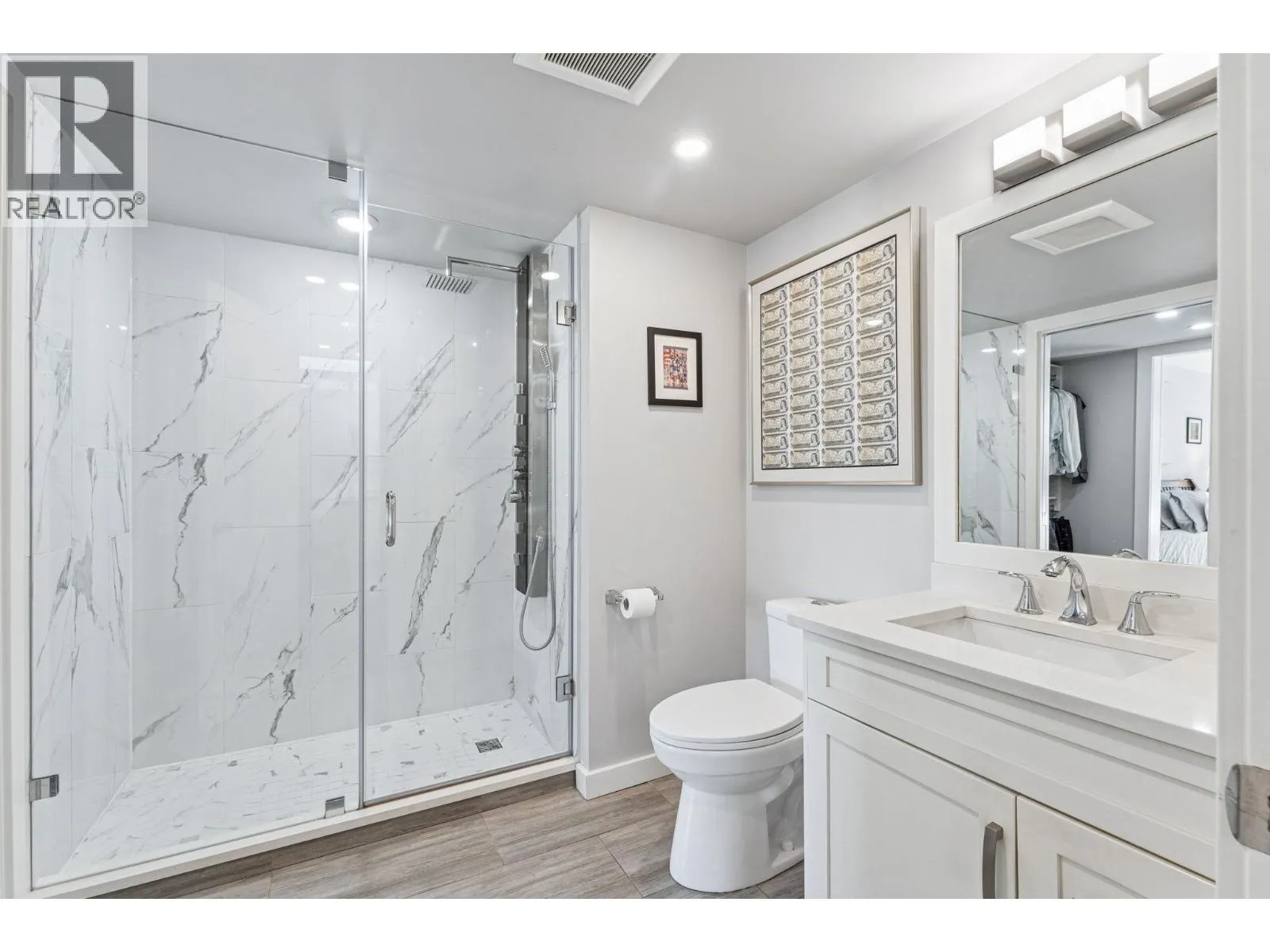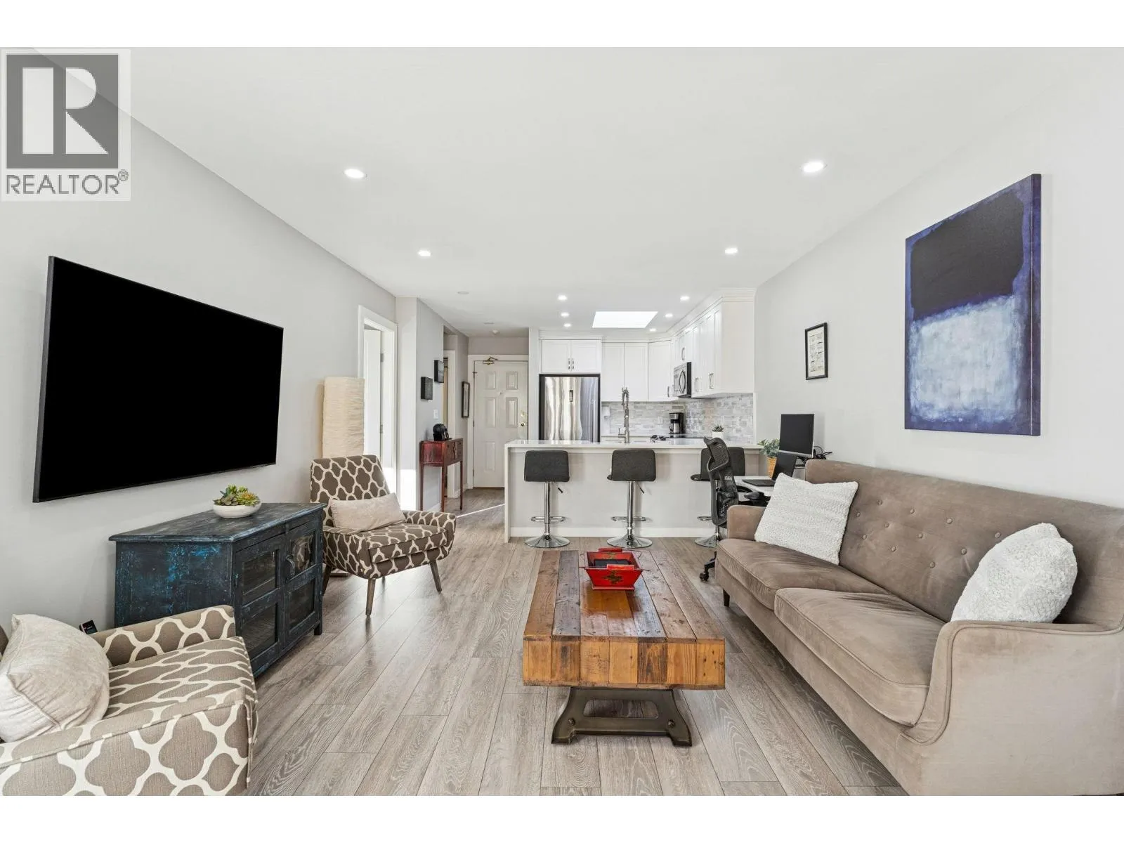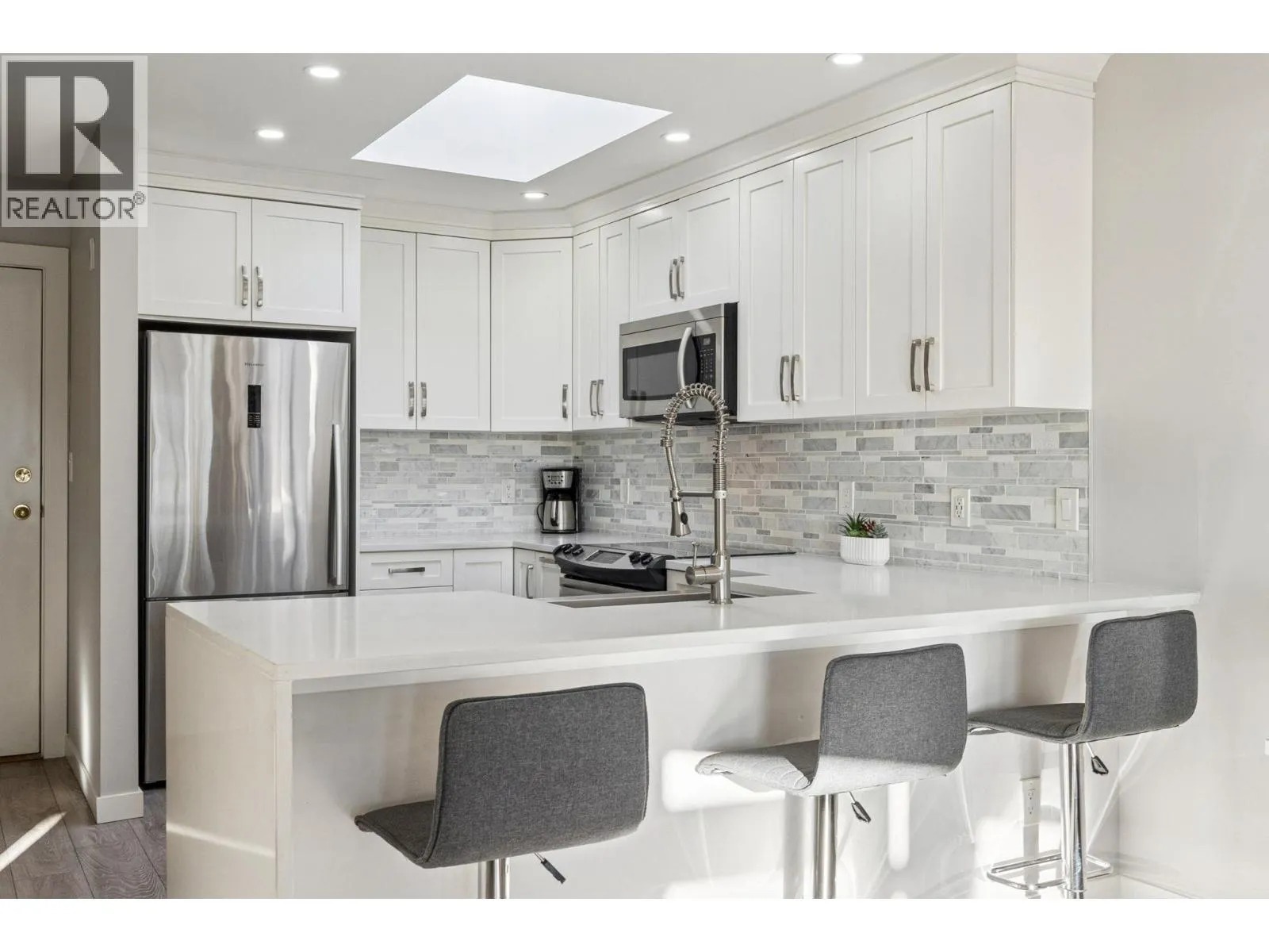 Welcome to this bright, top-floor one-bedroom suite in Lower Lonsdale. It's on the sunny side of the building & has been beautifully renovated. You'll love the southwest views of the city & harbour, plus the skylights that illuminate the spacious kitchen & entry. The layout is perfect, with generous living & dining areas, a striking gas fireplace, & a large bedroom with custom closet organizers. The ensuite bathroom has a deluxe walk-in shower. Plus, you get in-suite laundry, a built-in desk, & a private covered balcony for year-round enjoyment. The building itself has updated common areas, fresh façade, new windows & more. This suite comes with 1 parking spot & a storage locker. You're just steps away from the Shipyards, Seabus, shops, & waterfront trails-it´s so convenient! (id:27476)