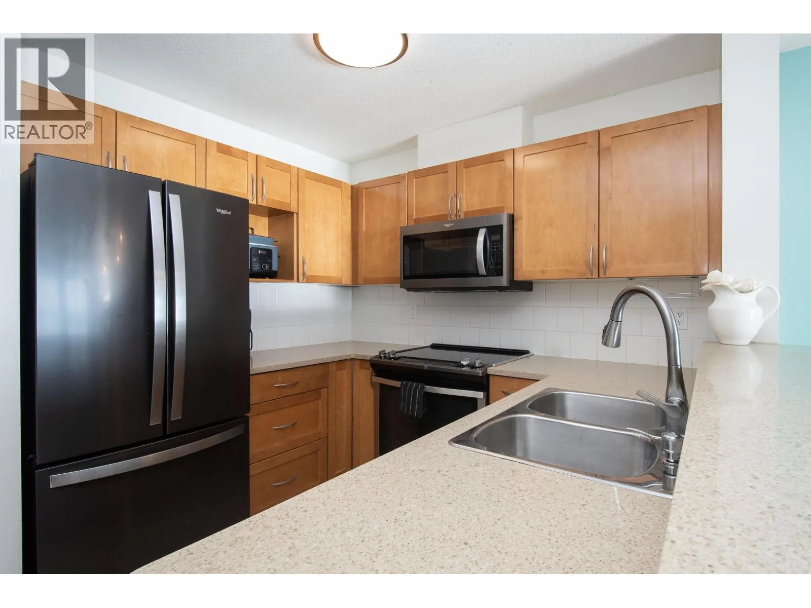 SUN-DRENCHED PENTHOUSE AT VISTA EAST! This top-floor gem is 650 square ft of bright and airy space that oozes sunshine all day long. The vaulted ceilings give it that massive feel you only get on the top floor, all while overlooking the Burrard Inlet. This building was built to superior standards, featuring quality rain screen technology by Ledingham McAllister. Perfectly located right across from the kids' play park at Hammersley Park, you´re in the heart of the Lower Lonsdale walking lifestyle-minutes to the Quay, local eats (and beer district), and the Seabus. Whether it's your first spot or a solid investment, this one is all about the light and the view. Quality build, incredible location, and a vibe that´s hard to beat. Just move in and soak it up! Pet Friendly (1 Pet). (id:27476)