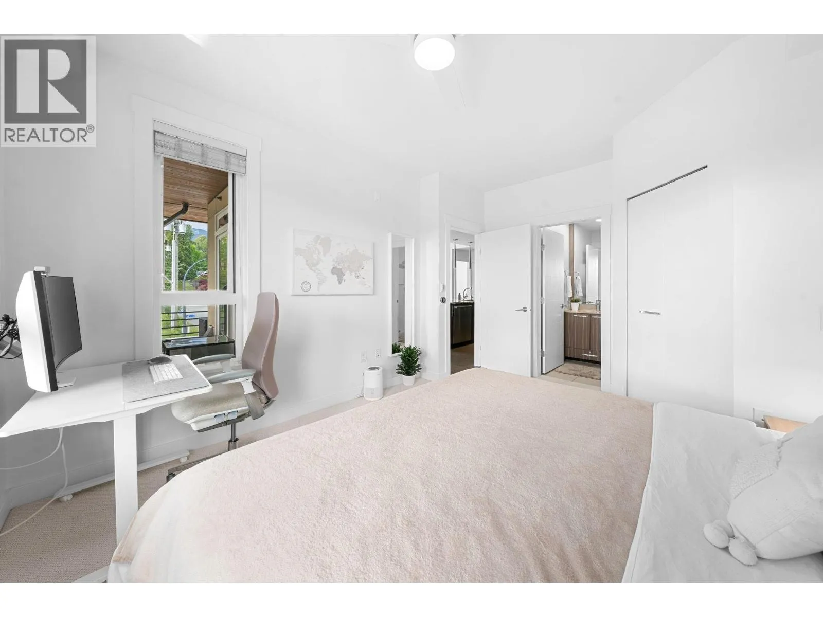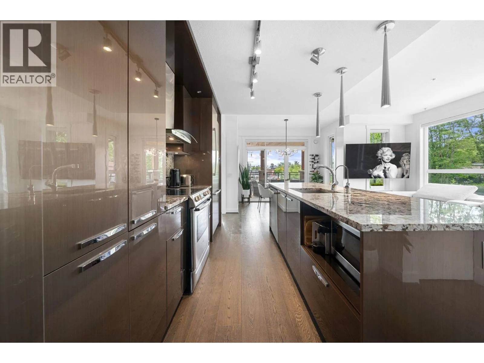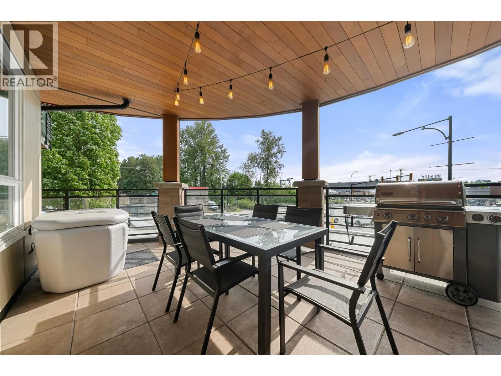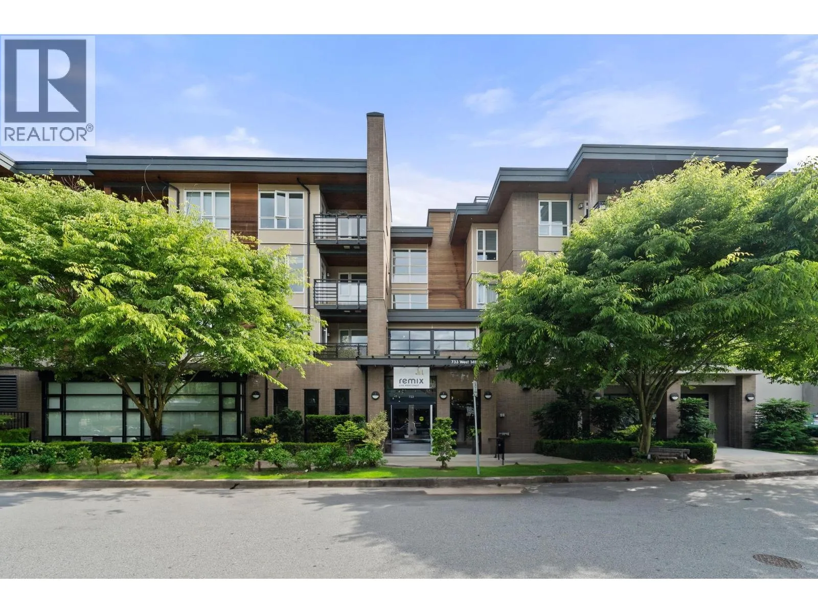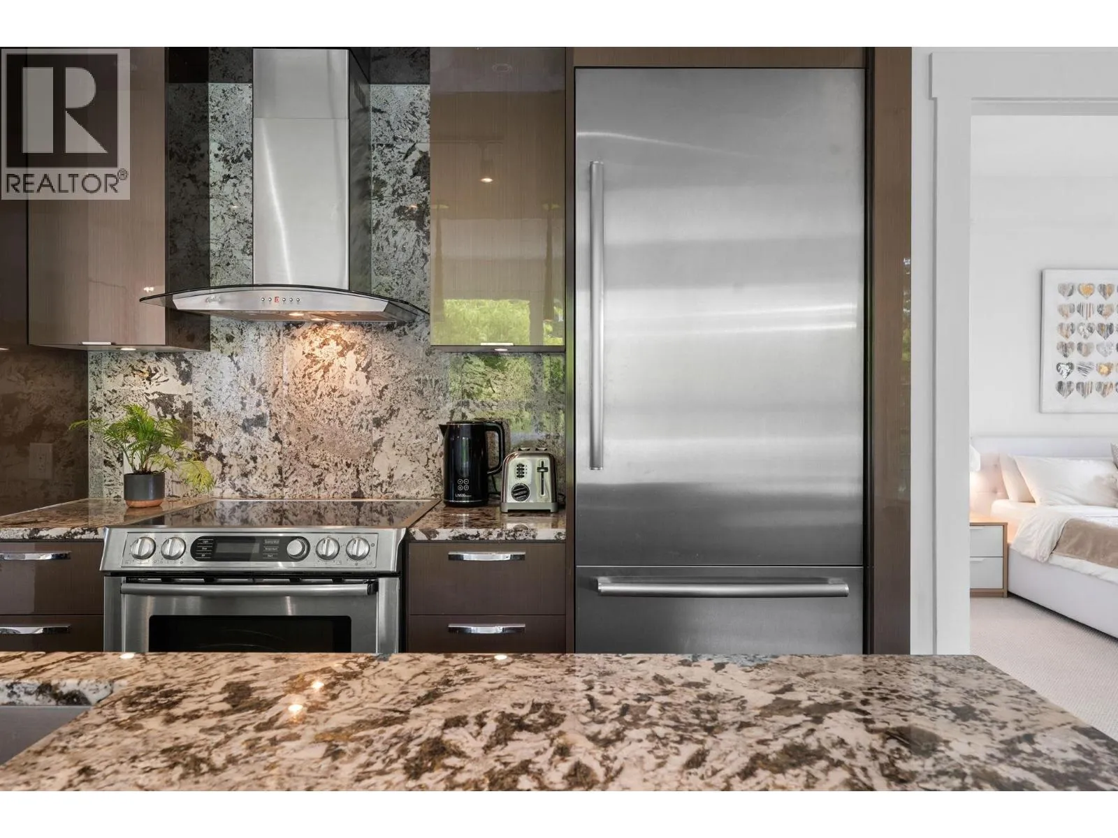 Rare 440 Sqft Private Patio Overlooking Mosquito Creek - A True Outdoor Oasis at Remix. Offering nearly 1,400 sqft of indoor/outdoor living space with massive wraparound patio, this bright 2-bedroom + den, 2-bath corner home features over-height ceilings, expansive windows, and smart layout with separated bedrooms for added privacy. Modern kitchen with granite counters, s/s appliances, and large island with breakfast bar. Flexible den perfect for home office or extra storage space. Tucked away in the pet-friendly Remix building, you're just steps from the Spirit Trail, dog park, shops, cafes, breweries, and transit. Incredible indoor/outdoor living in one of North Vancouver´s most walkable, connected communities. Complete with EV parking and storage. Don´t miss it - call today! (id:27476)