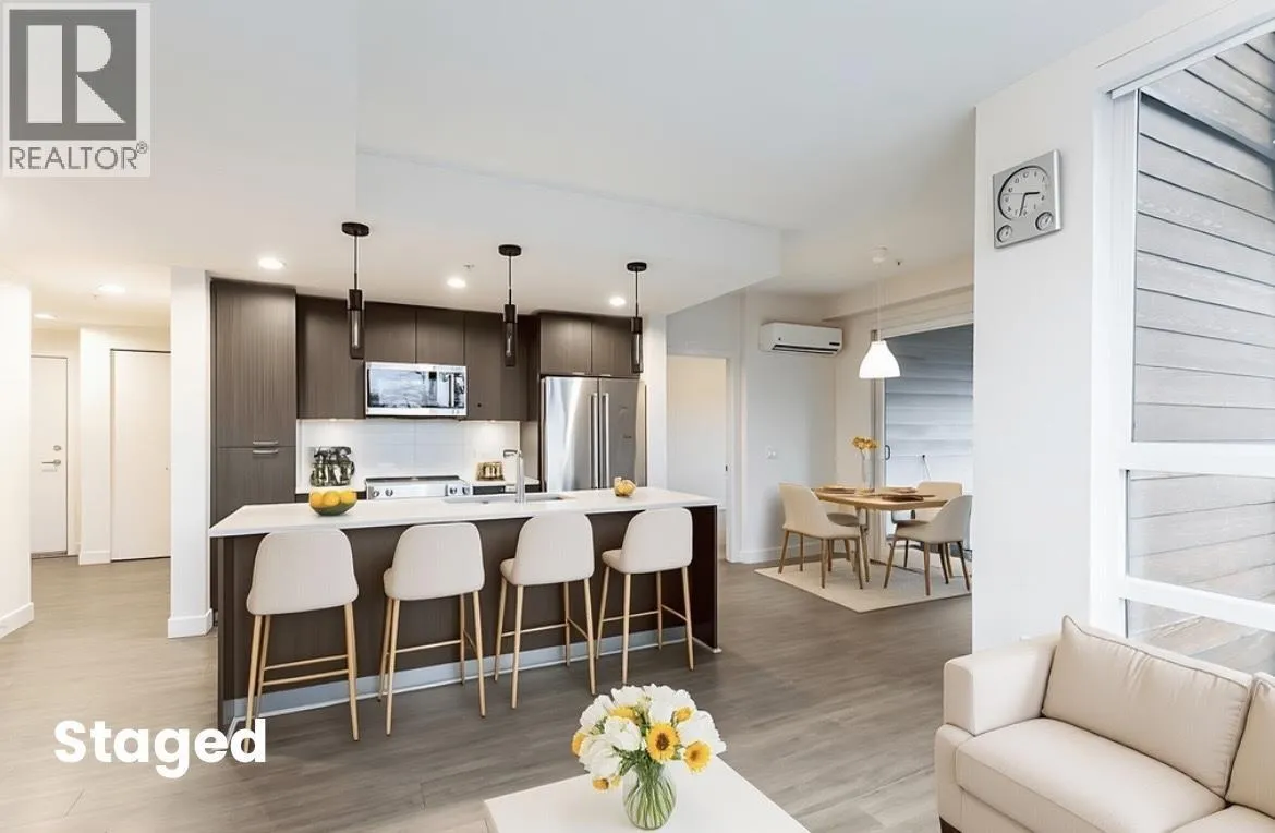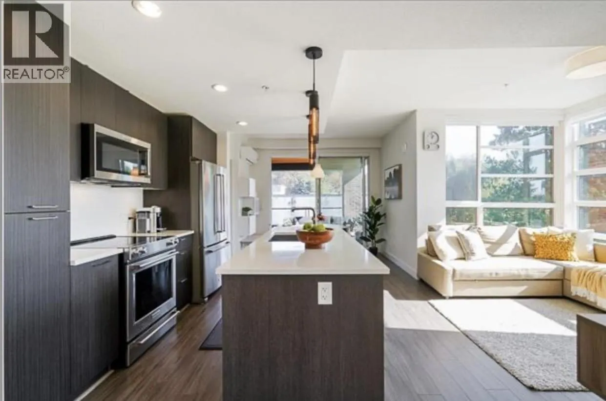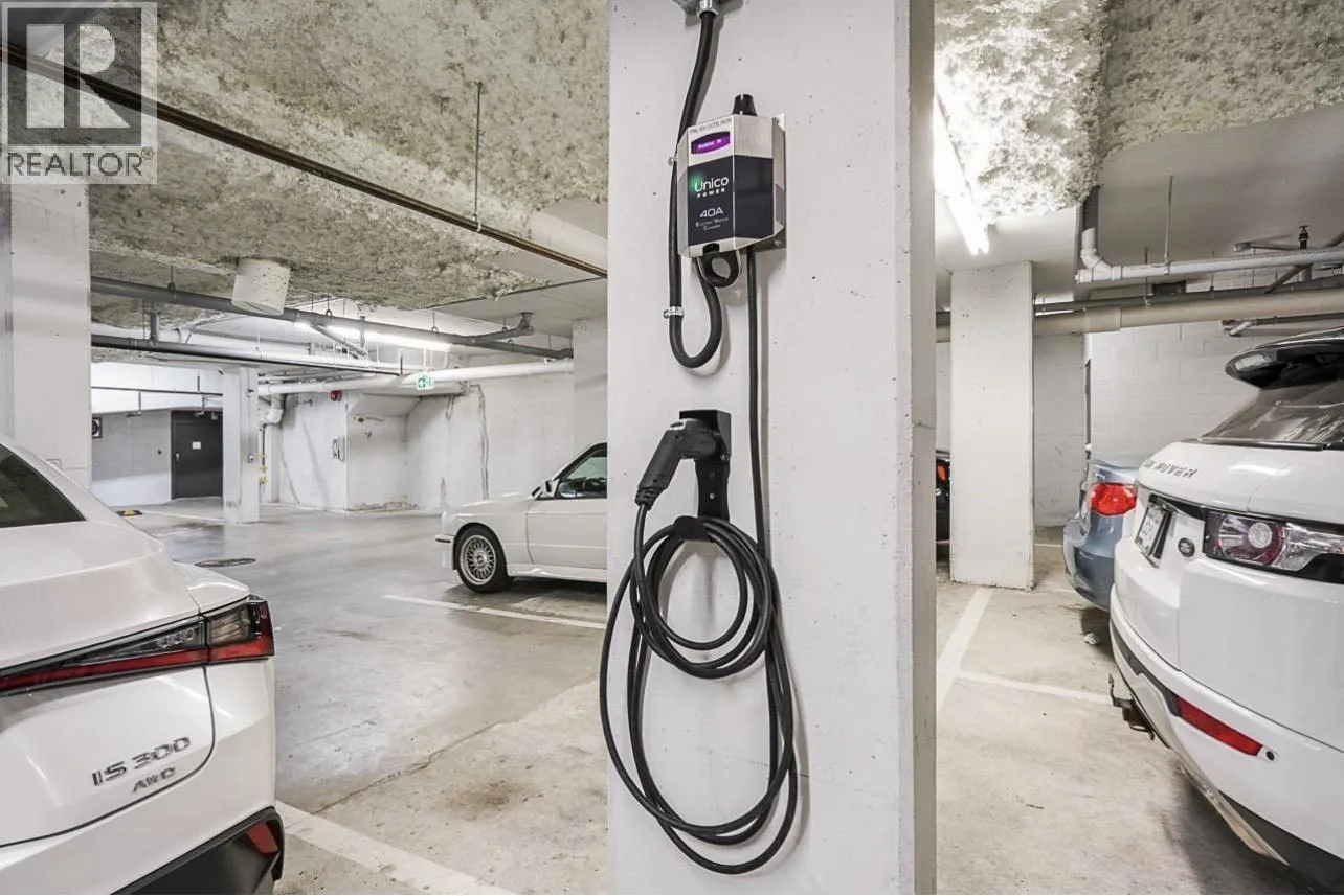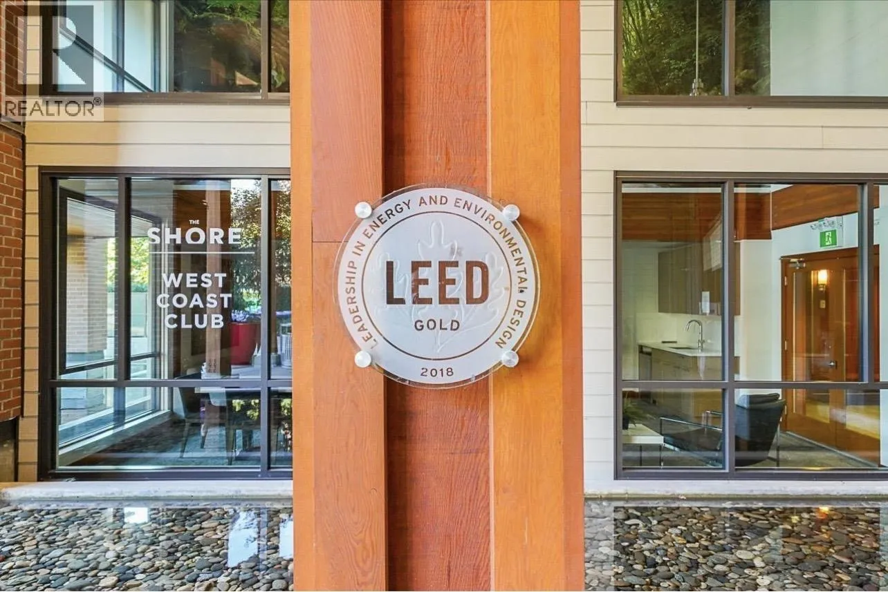 Welcome to this bright and spacious 2 bed, 2 bath plus Den (890sf). Corner unit with lots of quality upgrades and modern finishes throughout. Quality built/LEED Gold Certified. "The Shore" by award winning ADERA. Feat. incl. air-conditioning, EV Charger installed. Sleek kitchen w s/s appliances, modern flat panel cabinetry, quartz countertops, in-floor radiant heating, wide plank laminate flooring, 9' ceilings, flexible den, spacious primary bedroom w airy ensuite, 2nd bathroom, custom closets. Great amenities, outdoor patio, car wash. Amazing location, close to transit, shops, recreation, walk to schools & Lonsdale Quay/Seabus, restaurants & more. Long term waterfront redevelopment vision, offering exciting potential in an evolving community. Relax and enjoy the West Coast living! (id:27476)