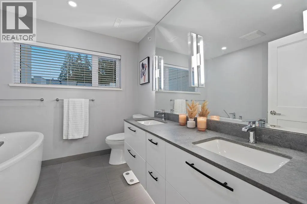 Canyon North is a highly desirable townhome community nestled in a fabulous location in North Vancouver. Built in 2021, this airy and inviting 2,232 square ft three-level home features 10´ ceilings, AC, an open-concept main floor with a gourmet kitchen, 10-foot island, mountain-view balcony, and a main-floor office that can serve as a 4th bedroom. Upstairs offers 3 spacious bedrooms, including a primary with a luxurious five-piece ensuite, heated floors, and separate tub and shower. The lower level has a versatile rec room with full bathroom, perfect for guests or teens. Enjoy an attached double garage and ample parking. Walking distance to Handsworth Secondary, trails, and Grouse Mountain and minutes to Edgemont Village. Enjoy the best of North Shore living! OPEN HOUSE: Saturday, March 14th, 2:00-4:00pm. (id:27476)
