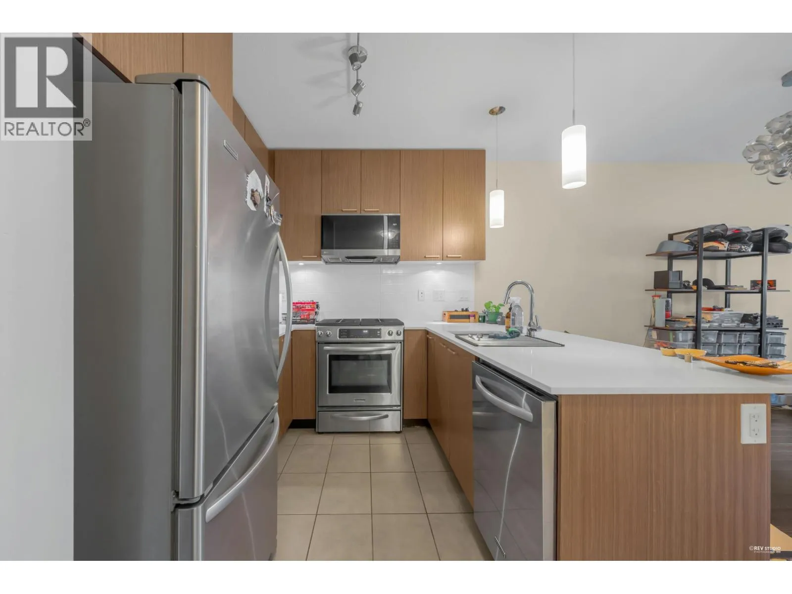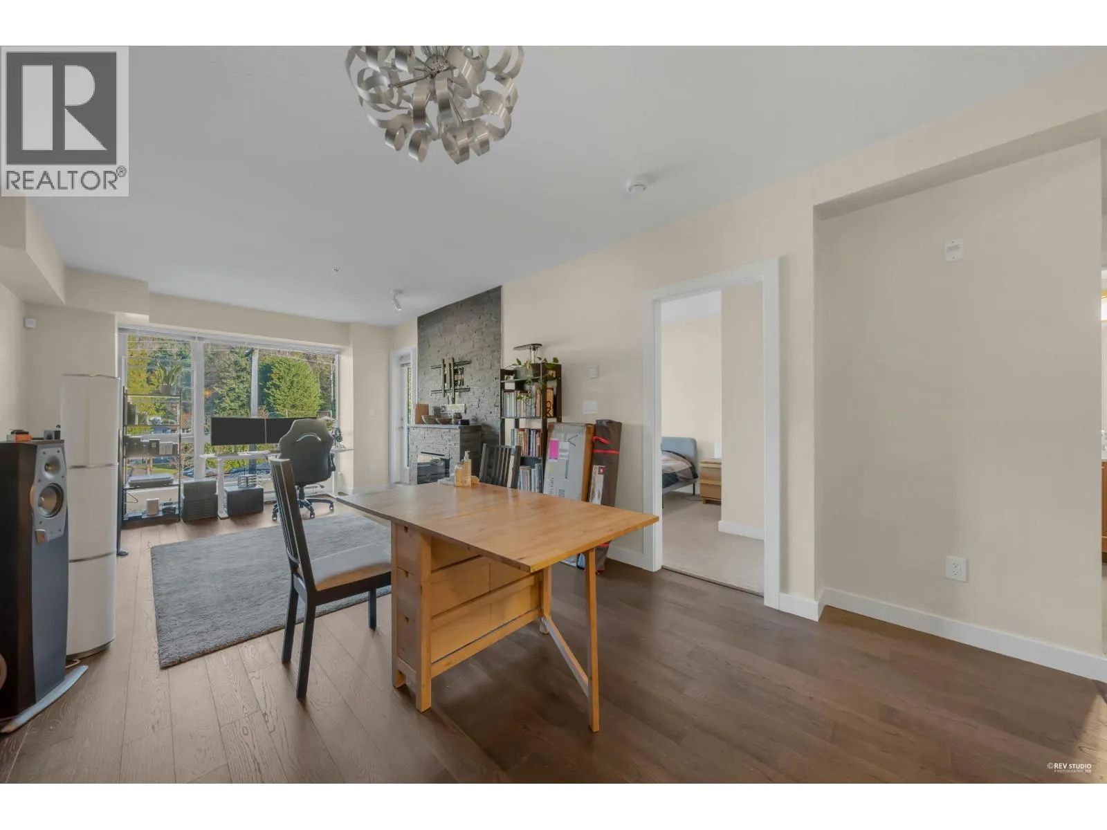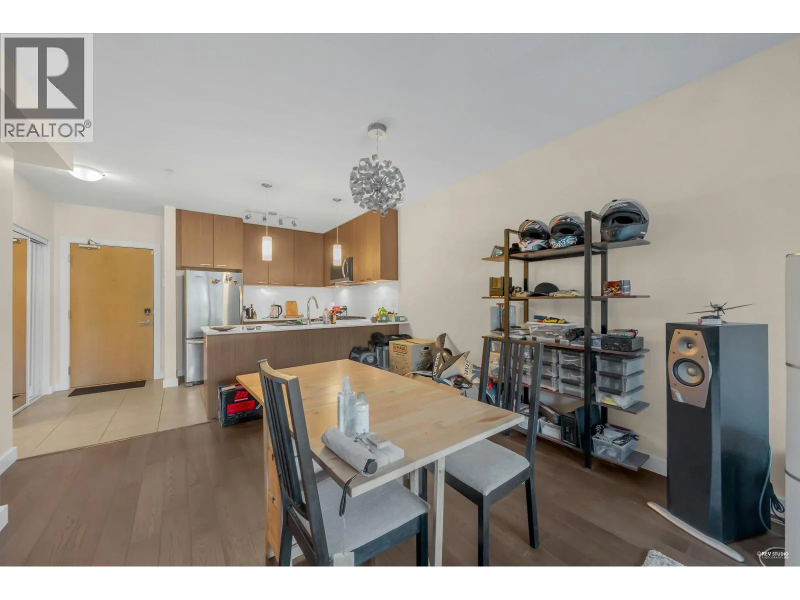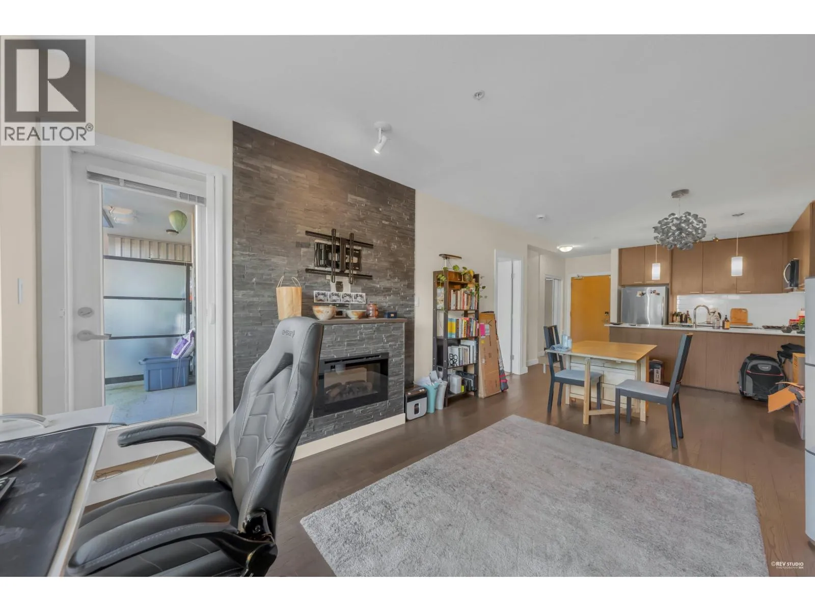 Modern North Shore living at The Drive by Onni. This well-appointed 1 bed, 1 bath home is quietly positioned on the north-facing side, offering a bright and peaceful outlook with lush greenery and mountain views. The efficient open layout features hardwood flooring and a contemporary kitchen with quartz counters, stainless steel appliances, gas cooktop, and breakfast bar. The spacious bedroom fits a king bed and includes a walk-in closet with built-ins. Spa-inspired bath with deep soaker tub. Steps to transit, groceries, cafes, and restaurants with easy access to Downtown. Well-managed building with gym, party room, bike storage & visitor parking. 1 parking included. (id:27476)