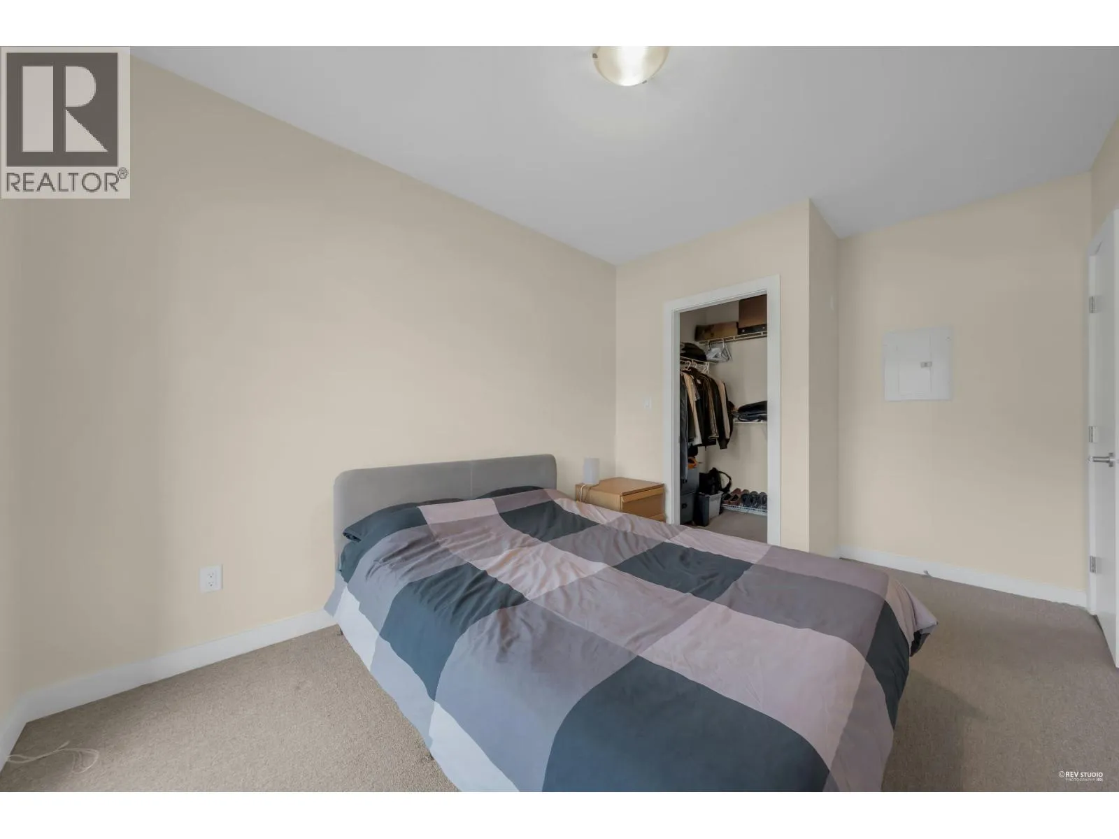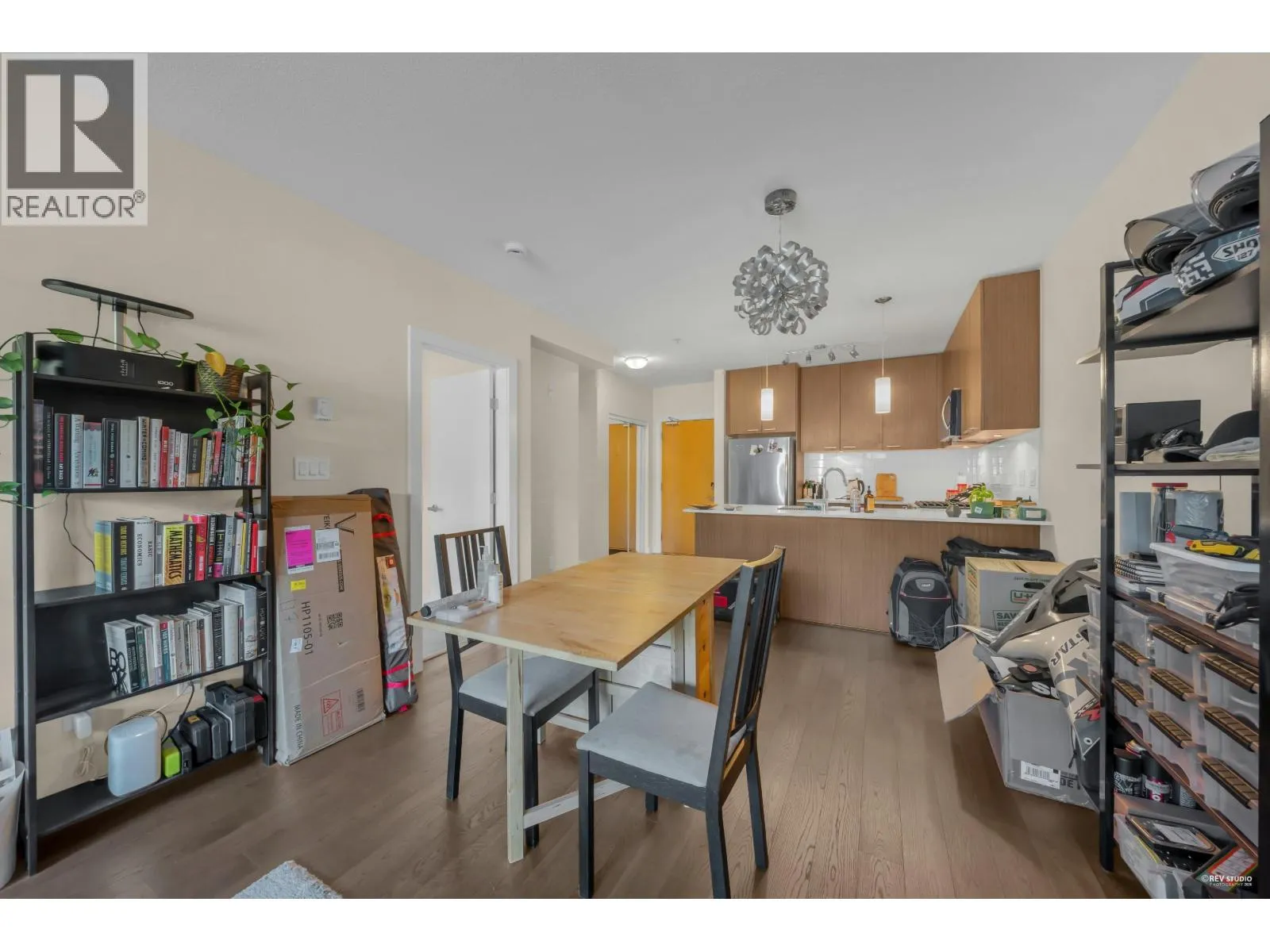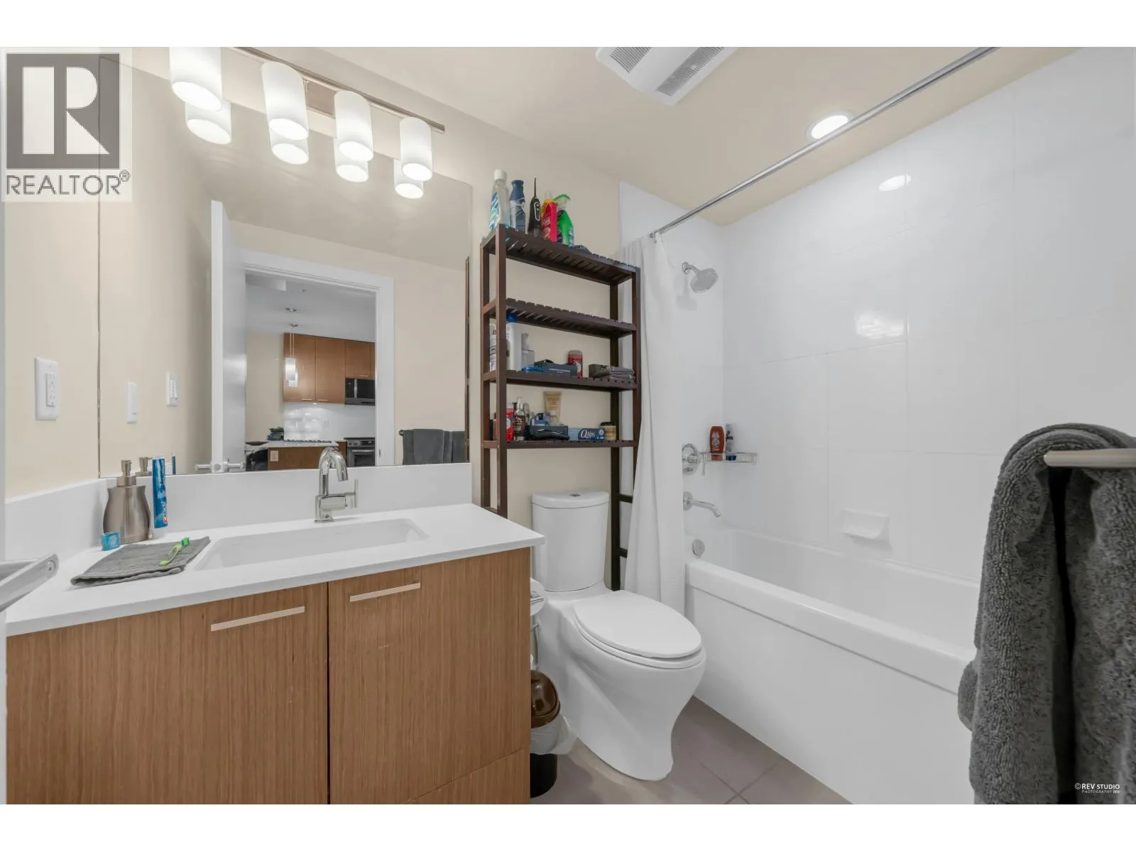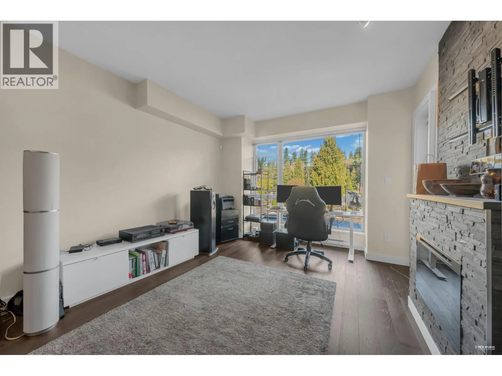 Modern North Shore living at The Drive by Onni. This well-appointed 1 bed, 1 bath home is quietly positioned on the north-facing side, offering a bright and peaceful outlook with lush greenery and mountain views. The efficient open layout features hardwood flooring and a contemporary kitchen with quartz counters, stainless steel appliances, gas cooktop, and breakfast bar. The spacious bedroom fits a king bed and includes a walk-in closet with built-ins. Spa-inspired bath with deep soaker tub. Steps to transit, groceries, cafes, and restaurants with easy access to Downtown. Well-managed building with gym, party room, bike storage & visitor parking. 1 parking included. (id:27476)