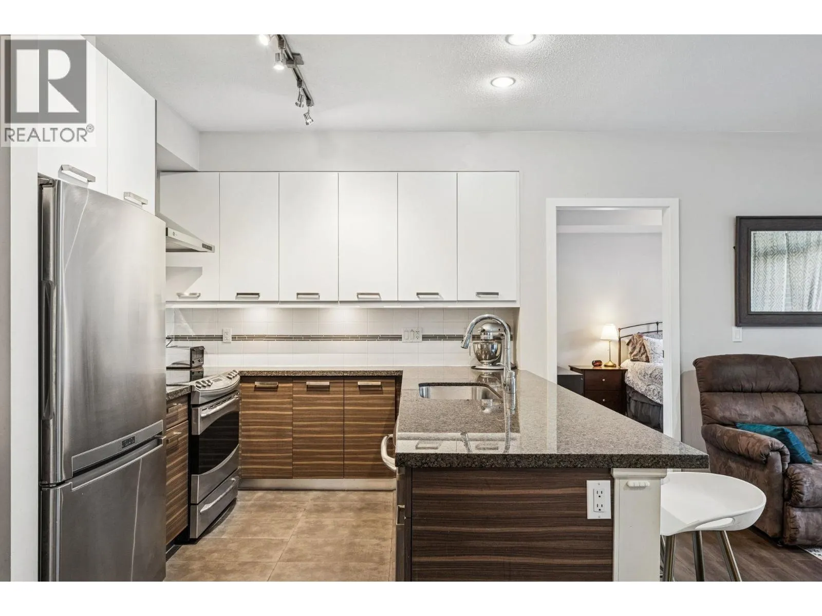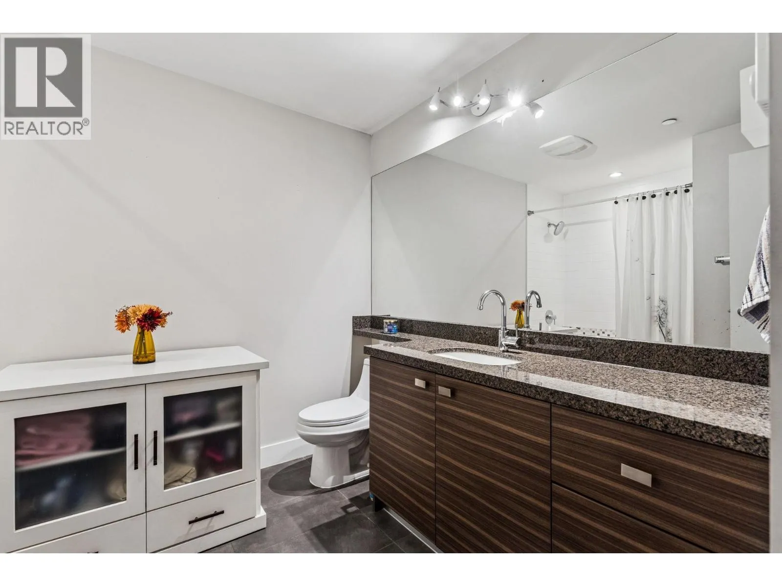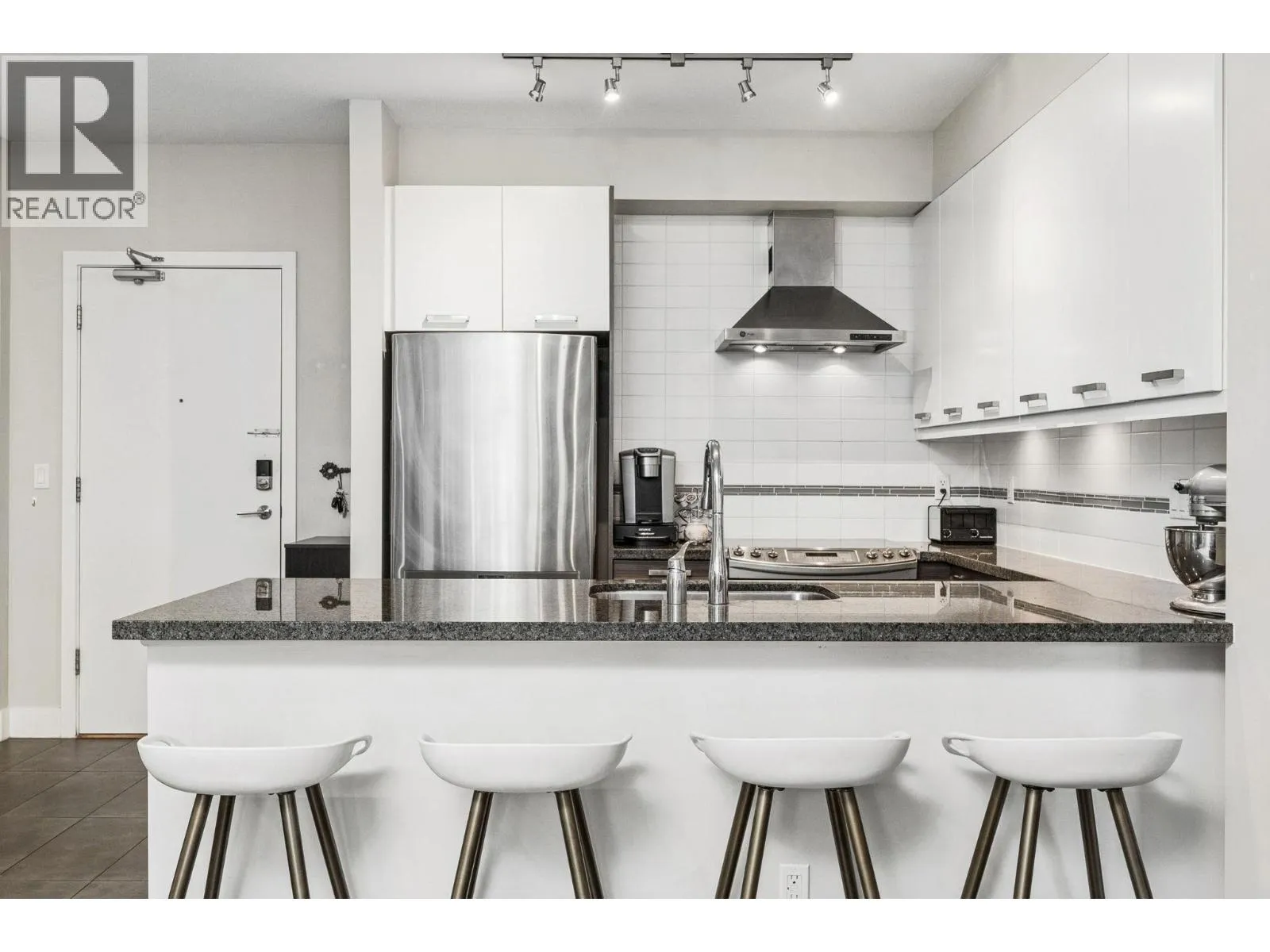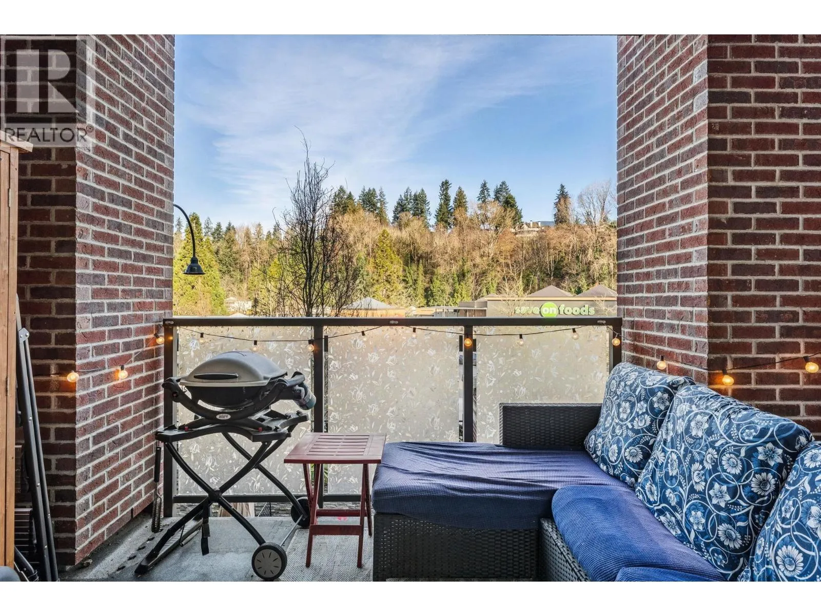 Ivy at Marine is a boutique development of 24 residences by the Executive Group, combining modern design with a convenient North Shore location. This seldom available two-bedroom, two-bath home offers an ideal layout for everyday living. The open-concept kitchen features granite countertops, modern cabinetry, stainless steel appliances, designer hood fan, imported tile backsplash, and an oversized breakfast bar perfect for entertaining. The living area is highlighted by an electric fireplace, premium laminate flooring, large windows for ample natural light, all opening onto the large deck capturing iconic North Shore Mountain views. Two generously sized spa-inspired bathrooms offer limestone countertops and contemporary cabinetry. Includes RARE two full-size side-by-side parking stalls, and storage locker. Residents enjoy private fitness studio and bike storage, and convenient short walk to groceries, coffee, transit, and the Spirit Trail, with quick access to Highway 1 and Whistler. Don't miss it - call now! (id:27476)