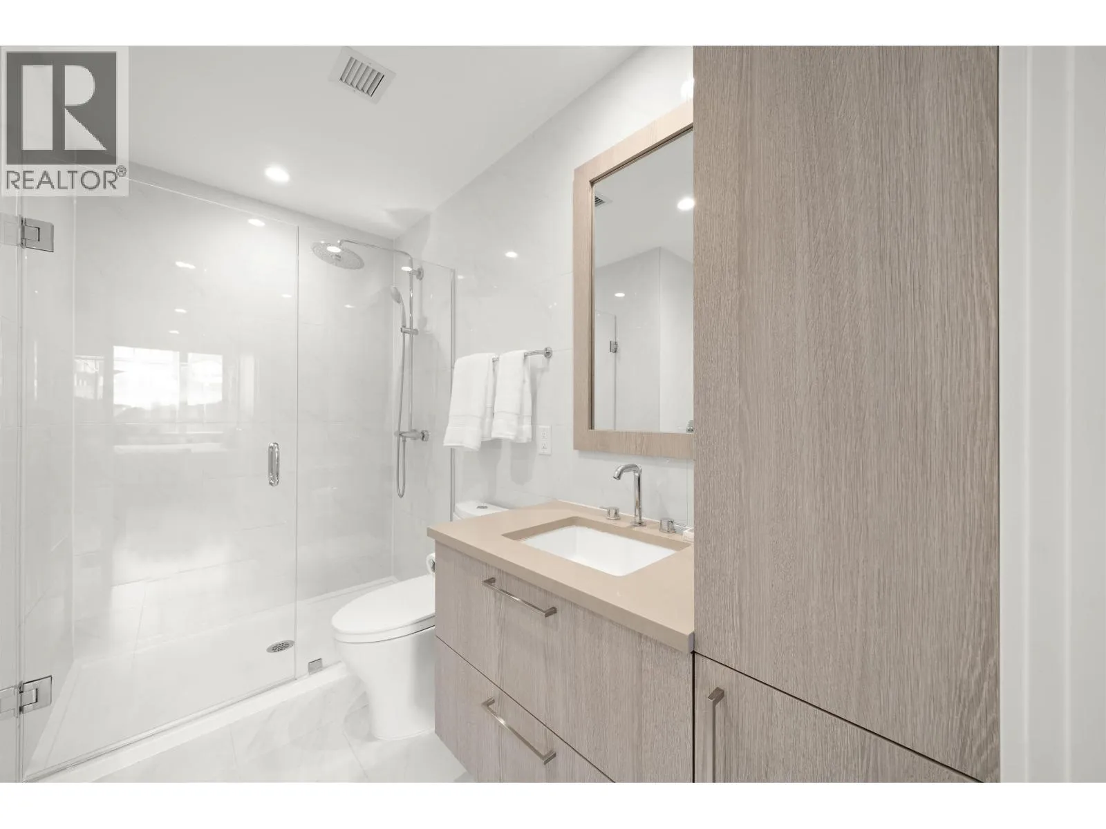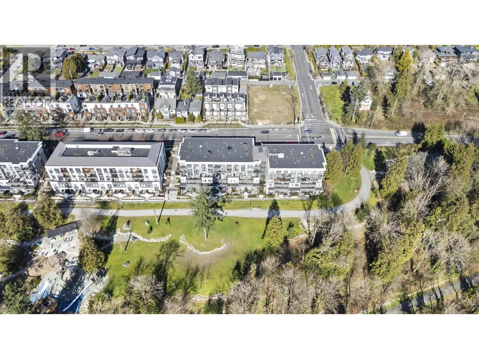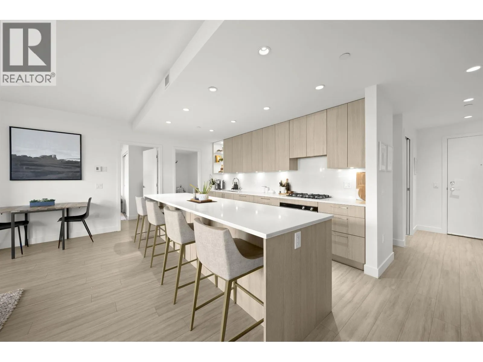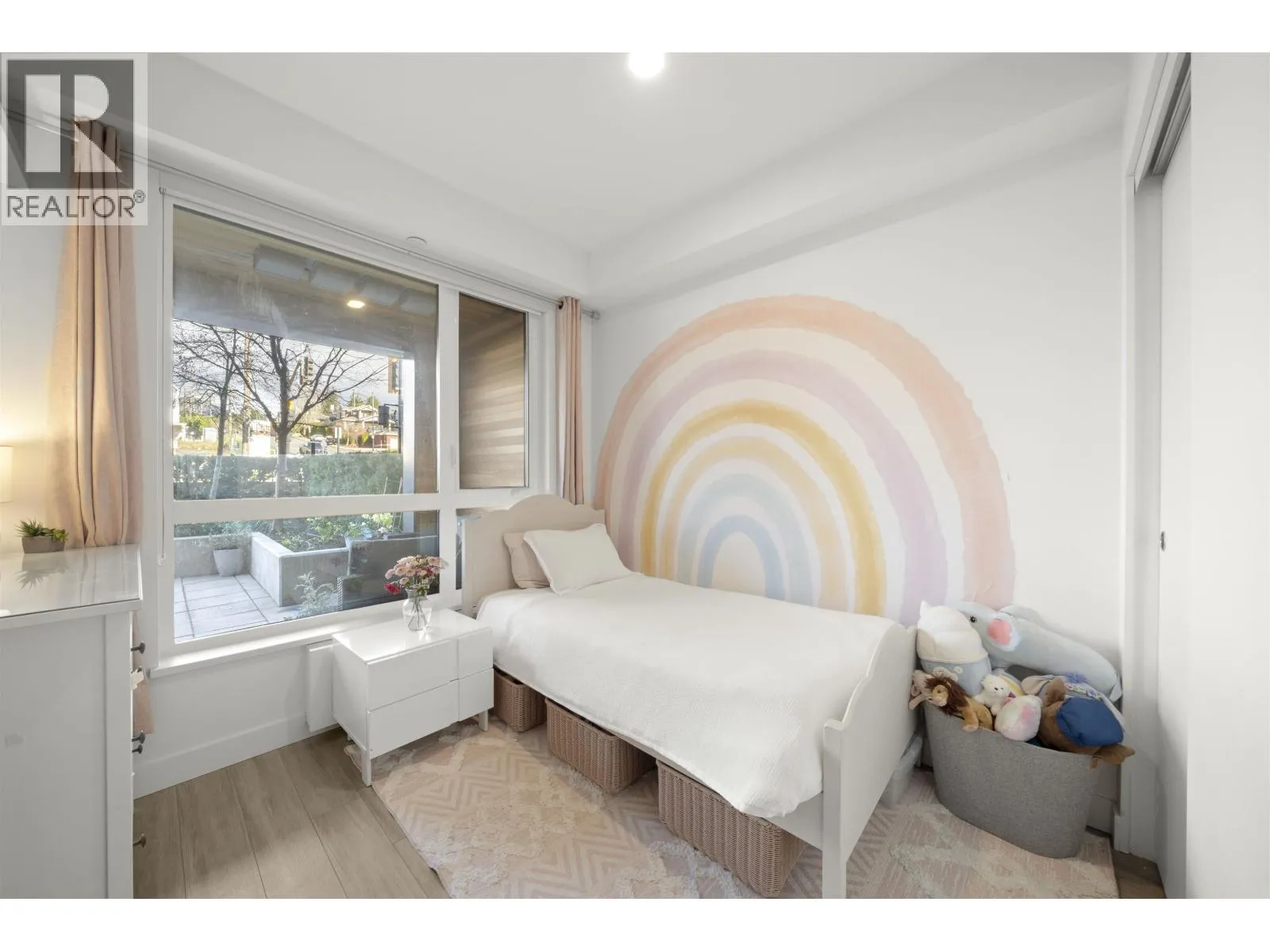 Rarely available ground-level 2 Bed + Den offering over 1,000 square ft of interior living plus an impressive ~500 square ft private patio in the LEED Platinum-certified building. Thoughtfully designed with a spacious, functional open layout anchored by a stunning oversized island that seamlessly connects the kitchen and living area-perfect for everyday living and entertaining. Enjoy walk-out access to an impressive oversized north-facing patio, ideal for pets, kids, or relaxing outdoors. Showroom condition with a high-end integrated kitchen, premium cabinetry and A/C for year-round comfort. Amenities include a fitness centre, lounge, guest suite and EV charging. Steps to Moodyville Park and the Spirit Trail, and just minutes to vibrant Lower Lonsdale. Pet friendly with 2 parking stalls included. OH Mar 14: 2-4PM (id:27476)