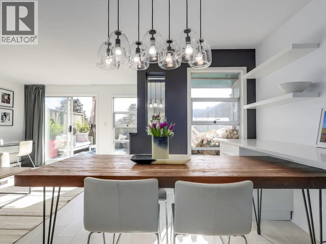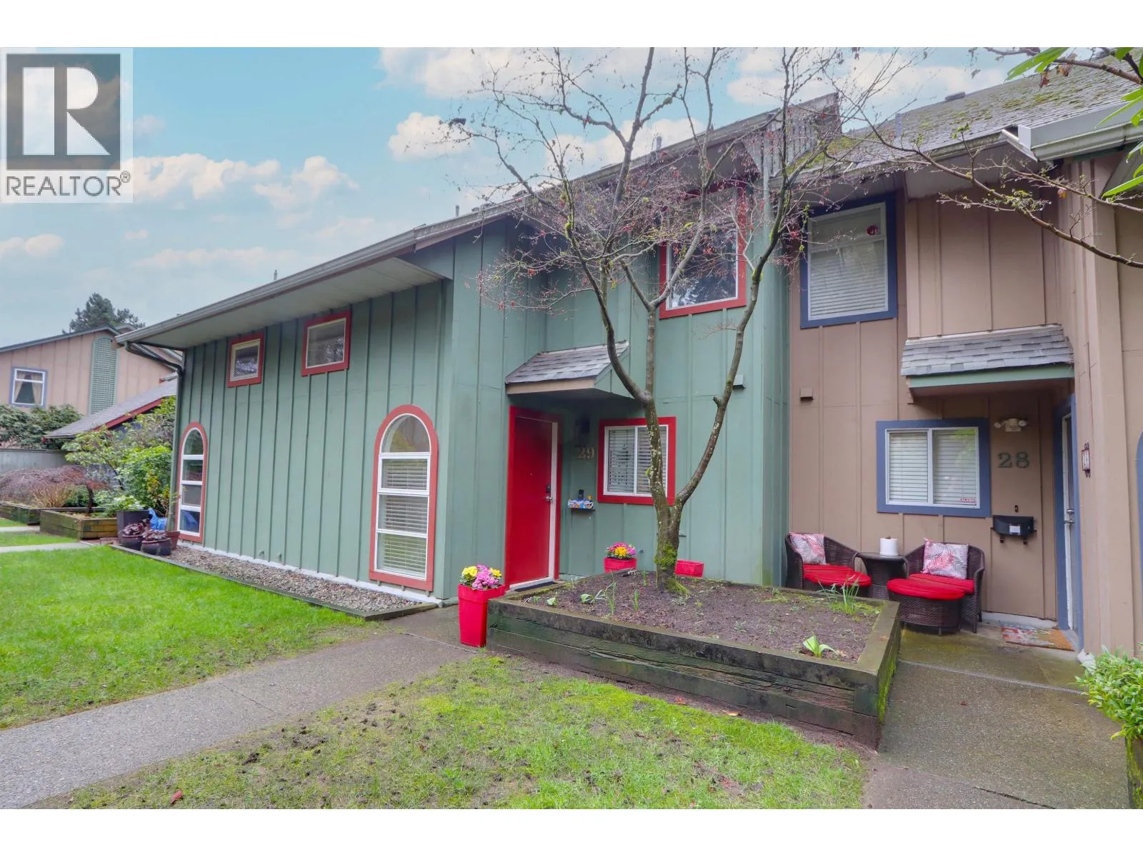 Welcome to Foxwood Hills- a rarely available, duplex-style 3-bedroom, 2-bath townhouse offering 1,234 sq. ft. of functional living in the heart of North Vancouver. This spacious home features a beautifully updated kitchen with heated floors, plus heated floors in the upstairs bathroom. The built-in dining area is thoughtfully designed with custom shelves, generous storage, and a wine fridge- perfect for entertaining. Enjoy new carpets, fresh paint, and a new washer and dryer. The cozy living room is anchored by a charming wood-burning fireplace, creating a warm and inviting atmosphere. Step outside to your south-facing 325 sq. ft. private patio- ideal for enjoying peaceful evenings outdoors. Enjoy the convenience of full-size in-suite laundry, one parking. Pet friendly. Open Sat 2-4pm. (id:27476)