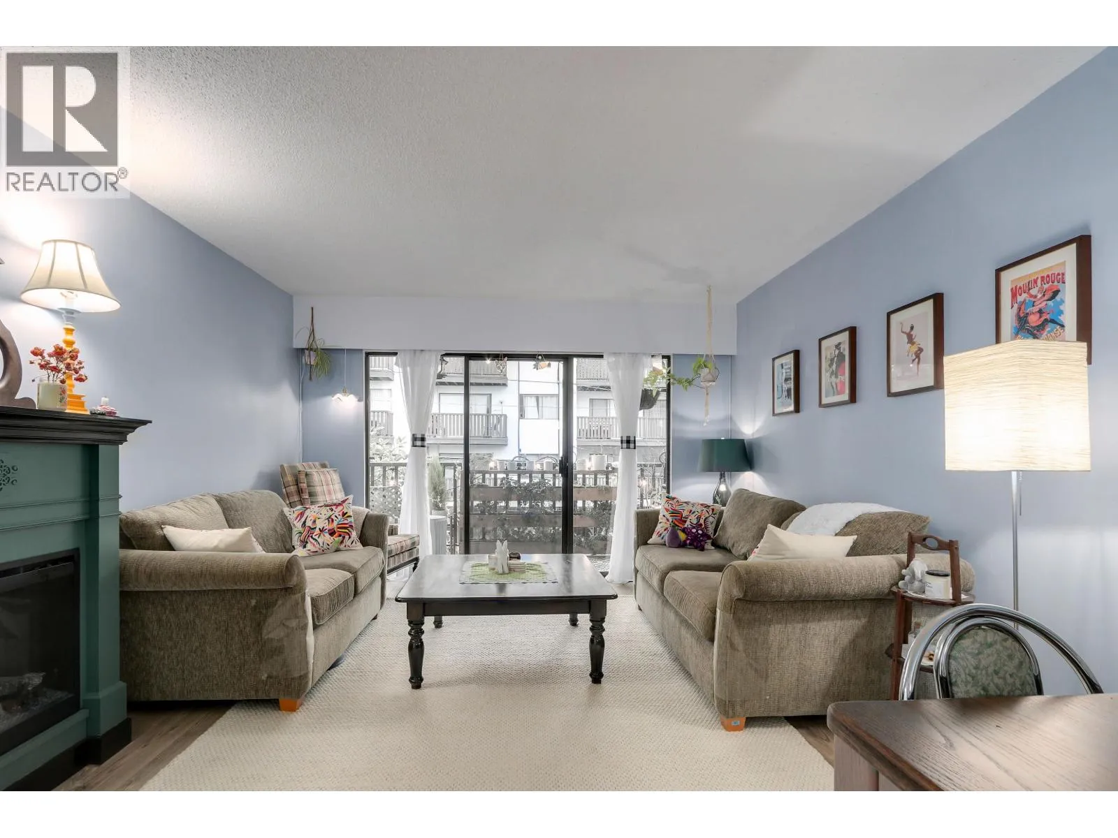 Welcome to Bristol Court in the heart of North Van's vibrant Lower Lonsdale. This bright, top floor 1 bed + spacious den + flex space unit is perfect for first-time buyers or young professionals working in downtown Vancouver. Located on the quiet side of the building, this home features an updated kitchen & appliances, bathroom, and newer laminate flooring. The building is pet-friendly and the unit comes with 1 parking stall & 1 storage locker. Enjoy being just steps to fantastic restaurants, shopping, the SeaBus, and Friday night live music at North Van's Shipyards during the summer months. A fantastic opportunity to own in one of North Vancouver's most walkable and lively neighbourhoods! Public Open Saturday, March 7, 2pm - 4pm (id:27476)