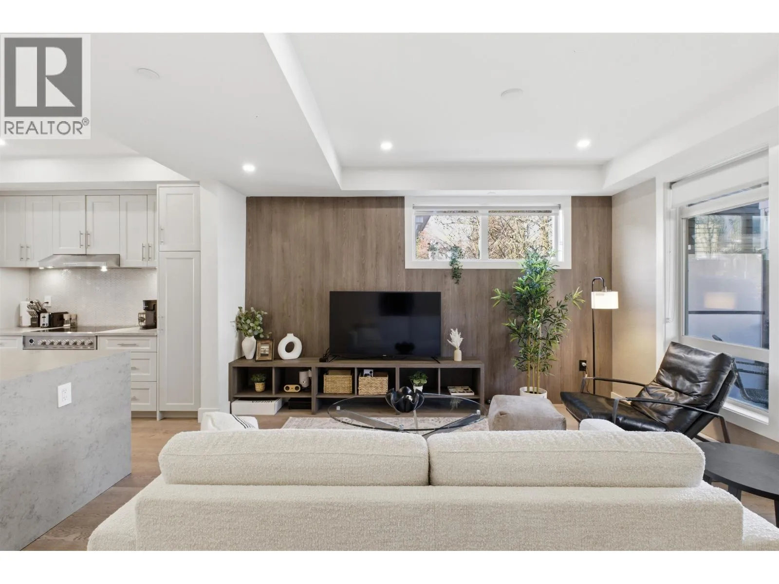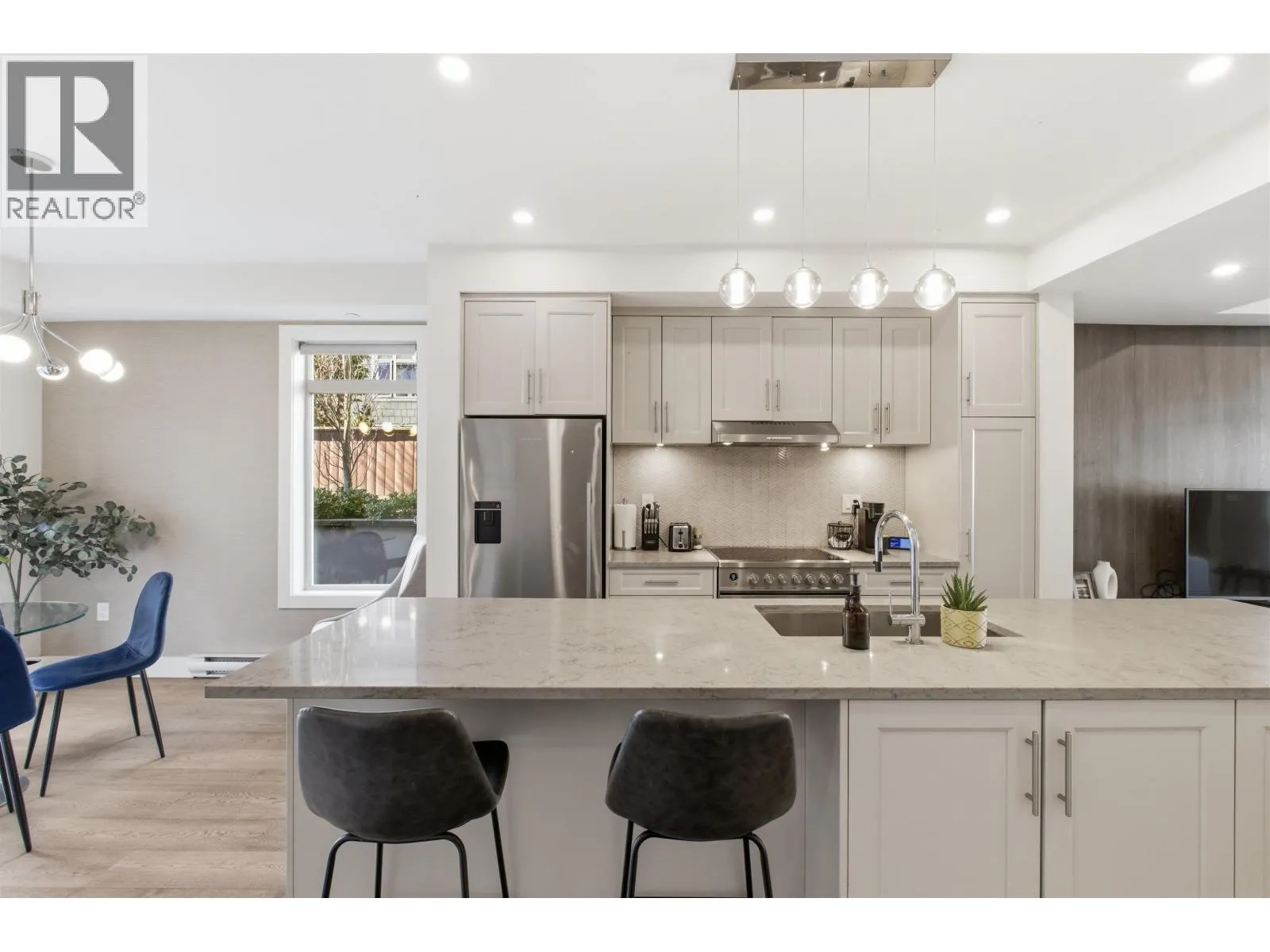 Expansive living in prestigious Upper Lonsdale. This rare 3 bedroom + den townhome offers over 2,100 square ft of thoughtfully designed space across multiple levels, providing exceptional flexibility for growing families, multi-generational living, or those needing room to work, play, and entertain. The spacious layout features two full family rooms, creating ideal separation of space and multiple options for living arrangements. A true home-like design with over-height ceilings, engineered hardwood floors, and a gourmet kitchen complete with a large entertainment island and premium Fisher & Paykel appliances. The walk-out, direct-access garage adds everyday convenience, while multiple outdoor areas offer great spaces to relax and unwind. Located in the boutique Queen´s Landing community. (id:27476)