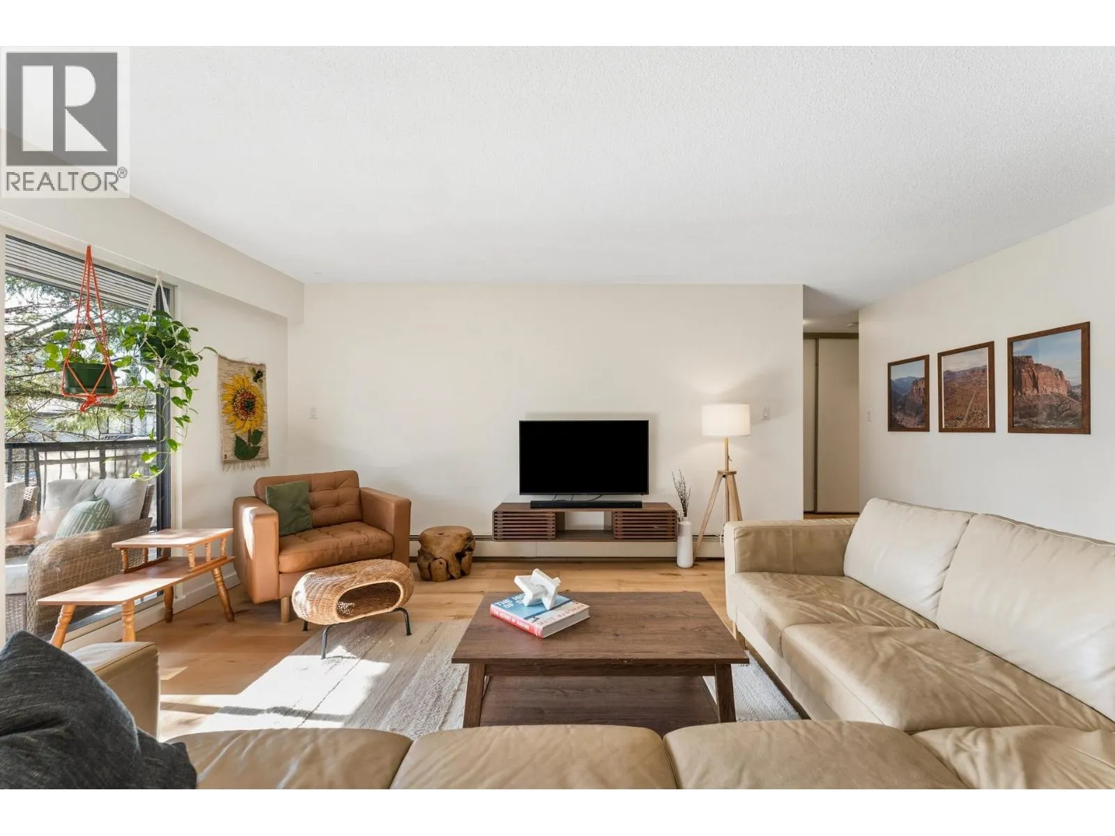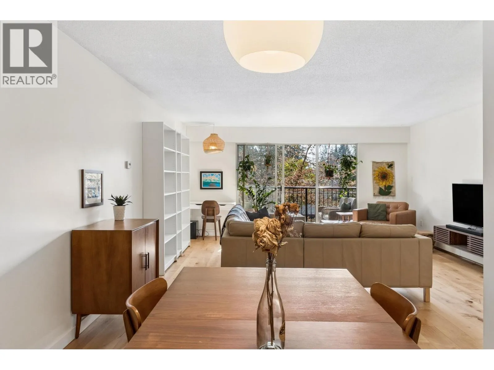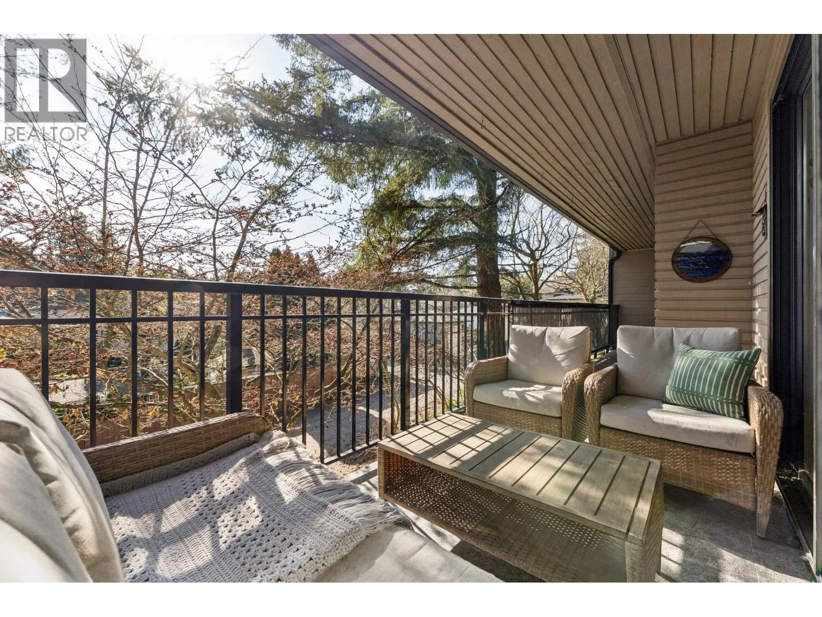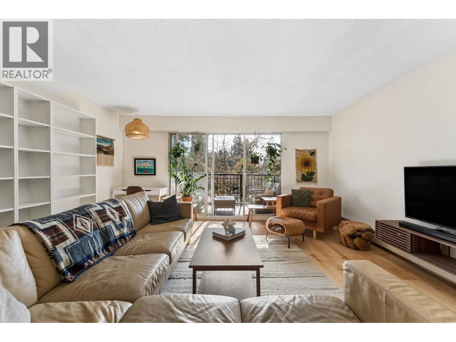 Rarely available 1,100 sqft 2-bed residence at 'Brookwood North´ in the heart of Lynn Valley. Tucked away at the end of a quiet cul-de-sac, this south-facing home offers house-scale proportions & total peace of mind following an extensive building refurbishment (newer roof, siding, balconies, and railings). The interior features high-quality laminate floors, fresh paint, custom built-ins, & dedicated pantry for ample storage. The open-plan living/dining area leads to an oversized 200+ sqft south-facing balcony. The primary suite fits a king bed with a walk-in closet & 2-piece ensuite, while the 2nd bedroom feats a custom Murphy bed & integrated shelving. Exceptional building amenities include a workshop, sauna, & extra freezer storage. Includes 1 parking & 1 storage locker - pet friendly! Perfect for an active lifestyle with direct access to the Lynn Valley Link trails & world-class mountain biking. Walk to Lynn Valley Village, transit (direct to Downtown/Lonsdale), Lynn Valley Elementary, & Argyle Secondary. (id:27476)