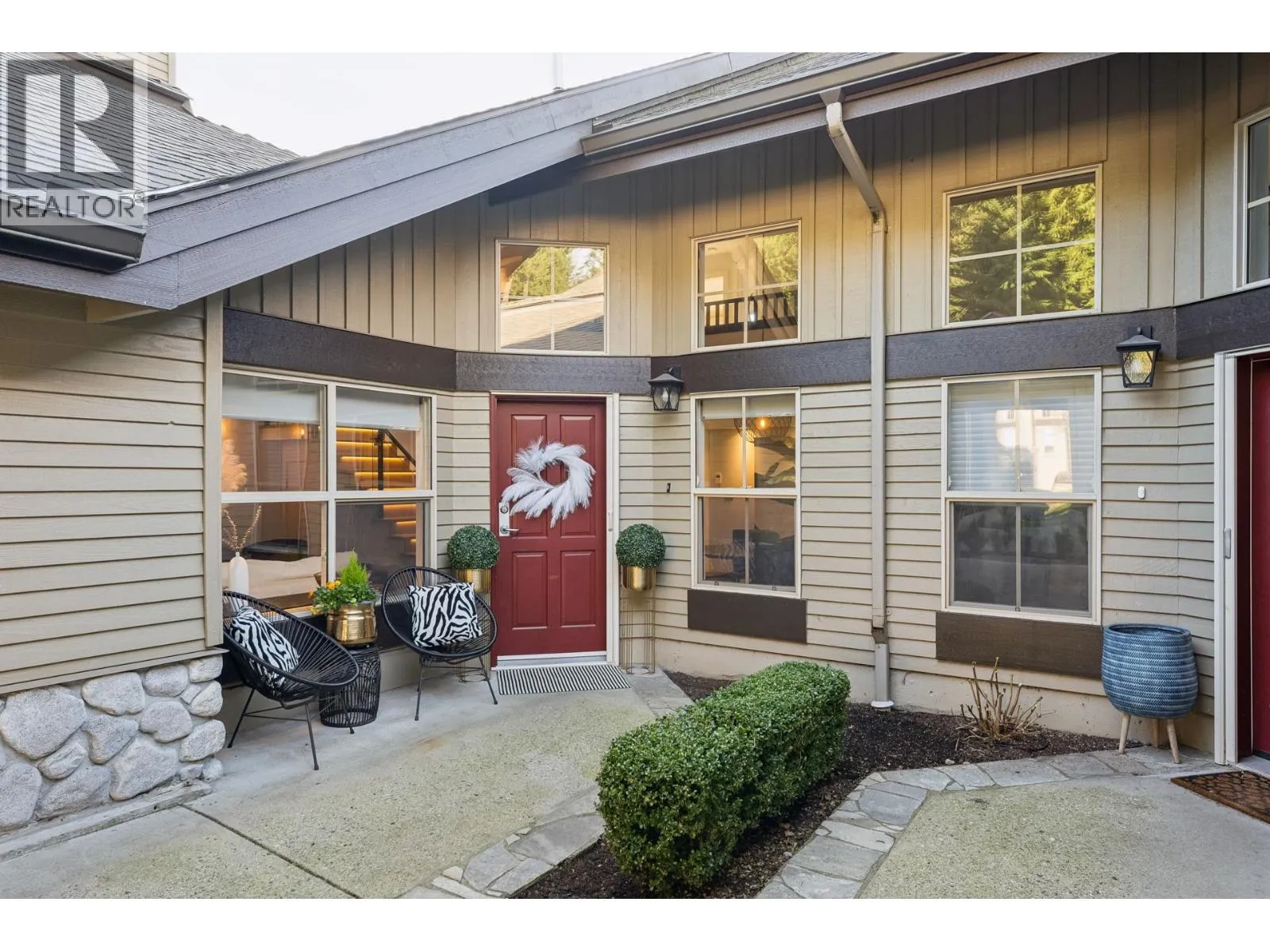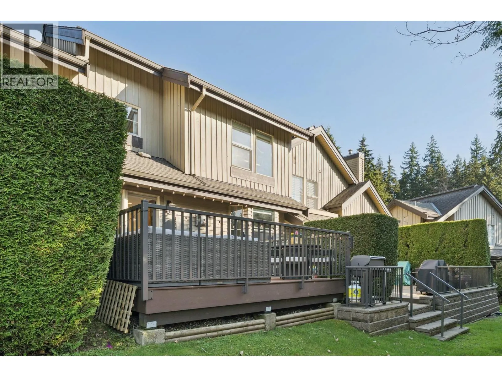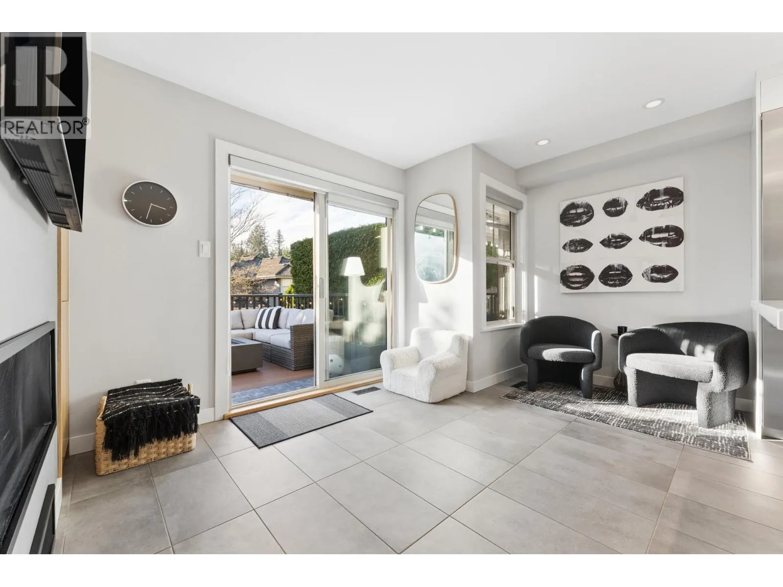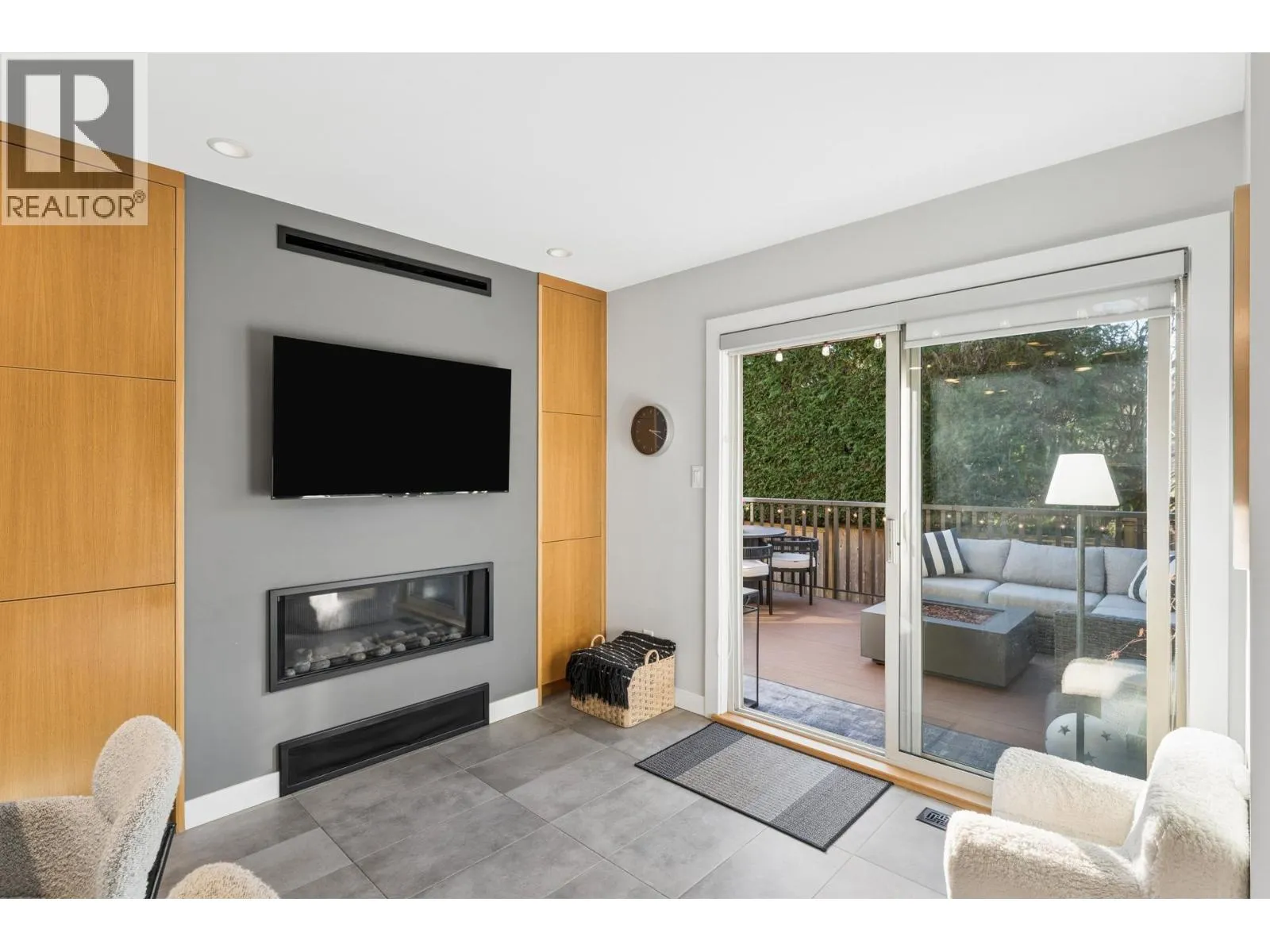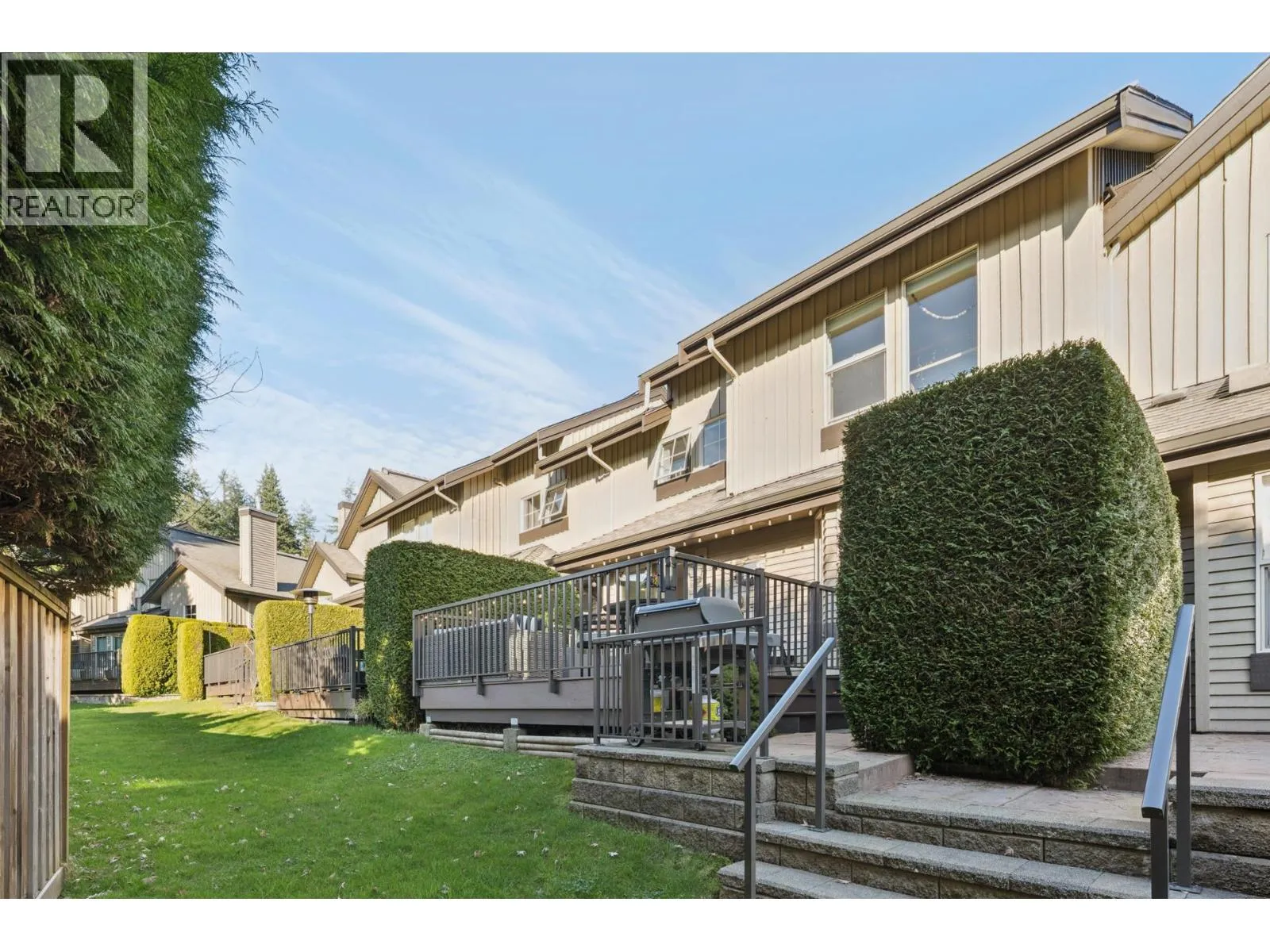 Stunningly renovated townhome in sought-after Nahanee Woods. Offering 3 bedrooms, 3 bathrooms, and over 1,800 square ft on two levels, including a spacious main-floor primary bedroom. The foyer opens to an open-concept living and dining area with vaulted ceilings, gas fp, and white oak stairs with metal and glass railings. Tile flooring with radiant in-floor heating spans the main level, complemented by a recent heat pump and A/C upgrade. The open kitchen features sleek white cabinetry, quartz counters, a large island, and Thermador appliances. A flex space with a second gas fireplace opens to a private west-facing deck. The main-floor primary retreat includes bay windows, walk-in closet, and renovated 5-piece ensuite. Upstairs are two generous bedrooms, a 4-piece bath, and flexible landing. Quietly located near parks, shopping, recreation, schools, and trails. (id:27476)