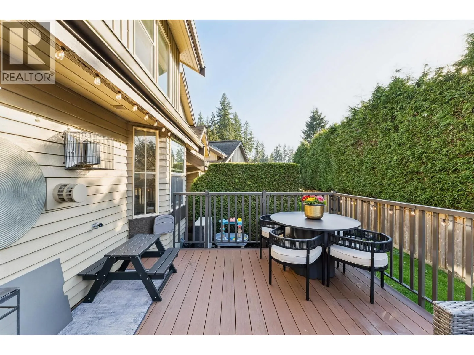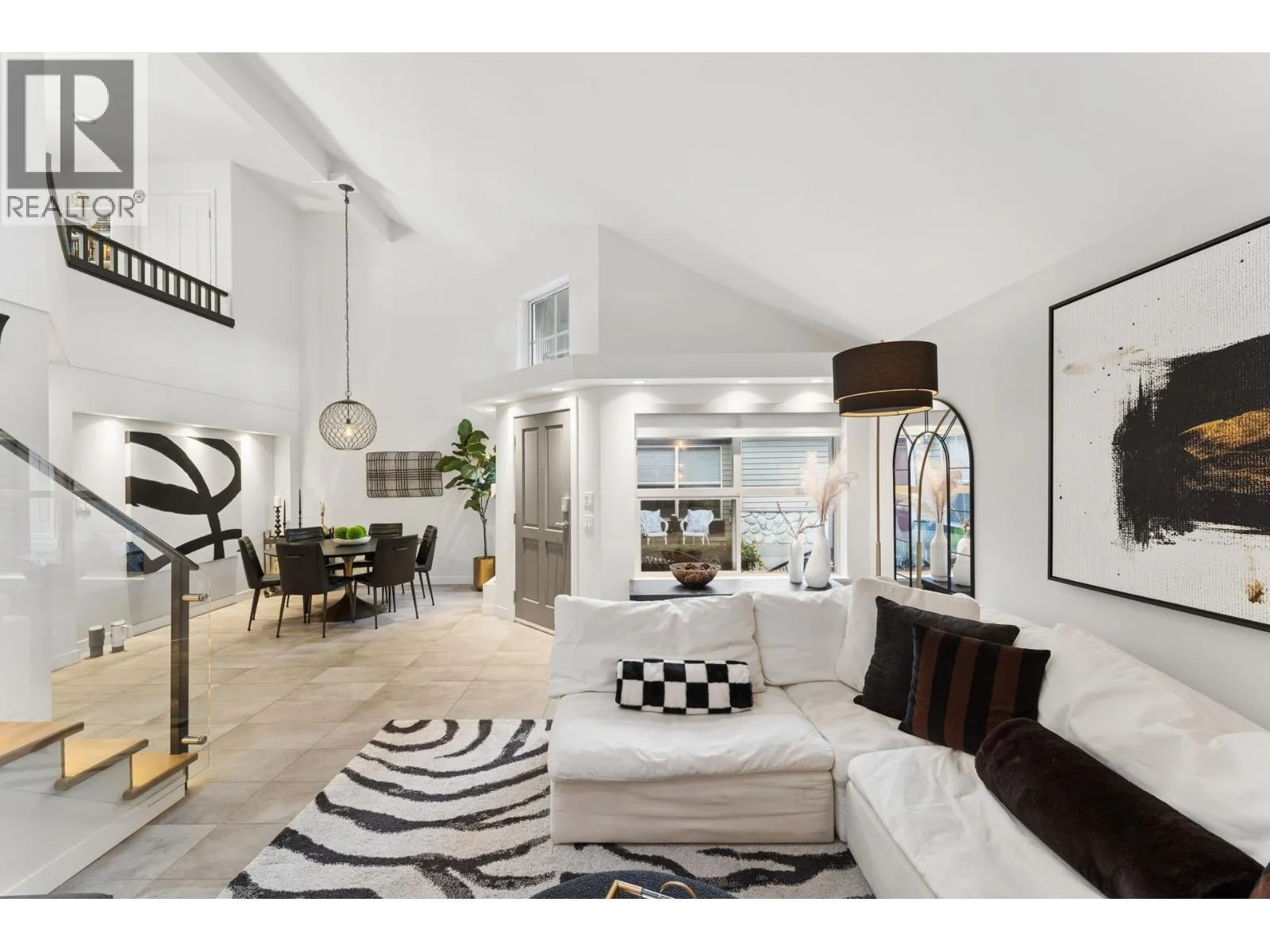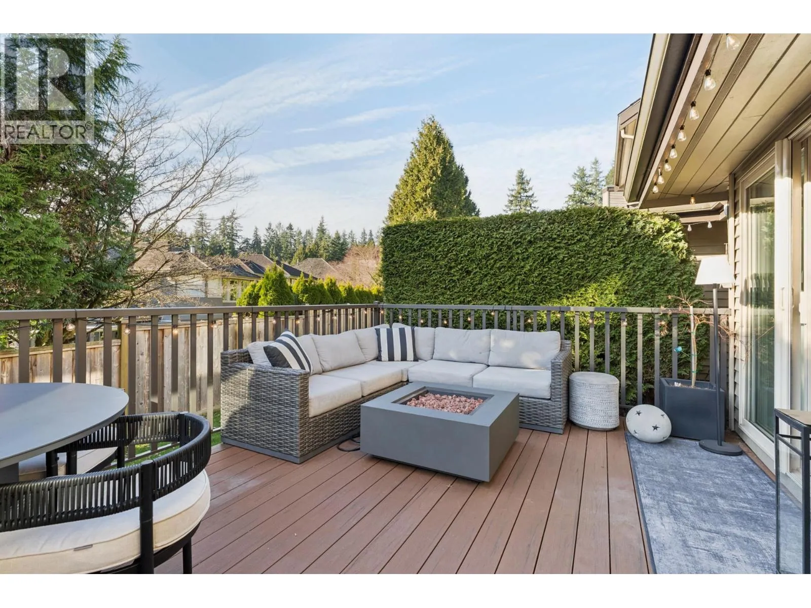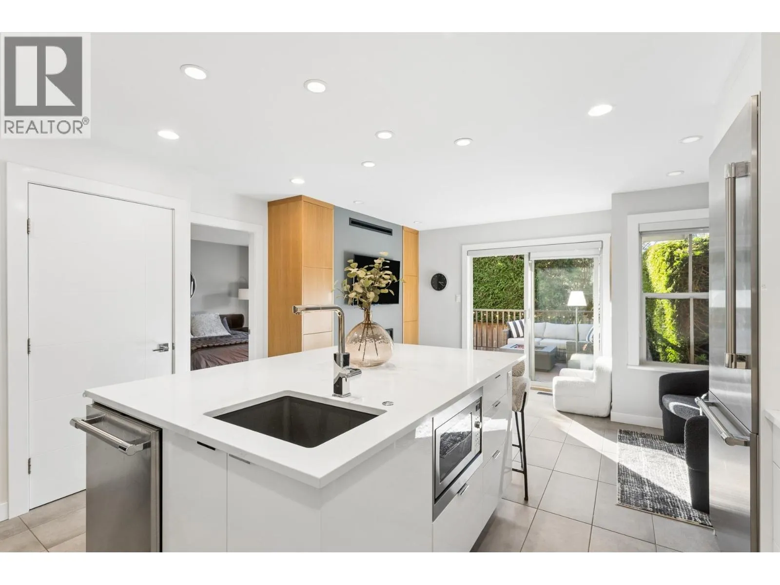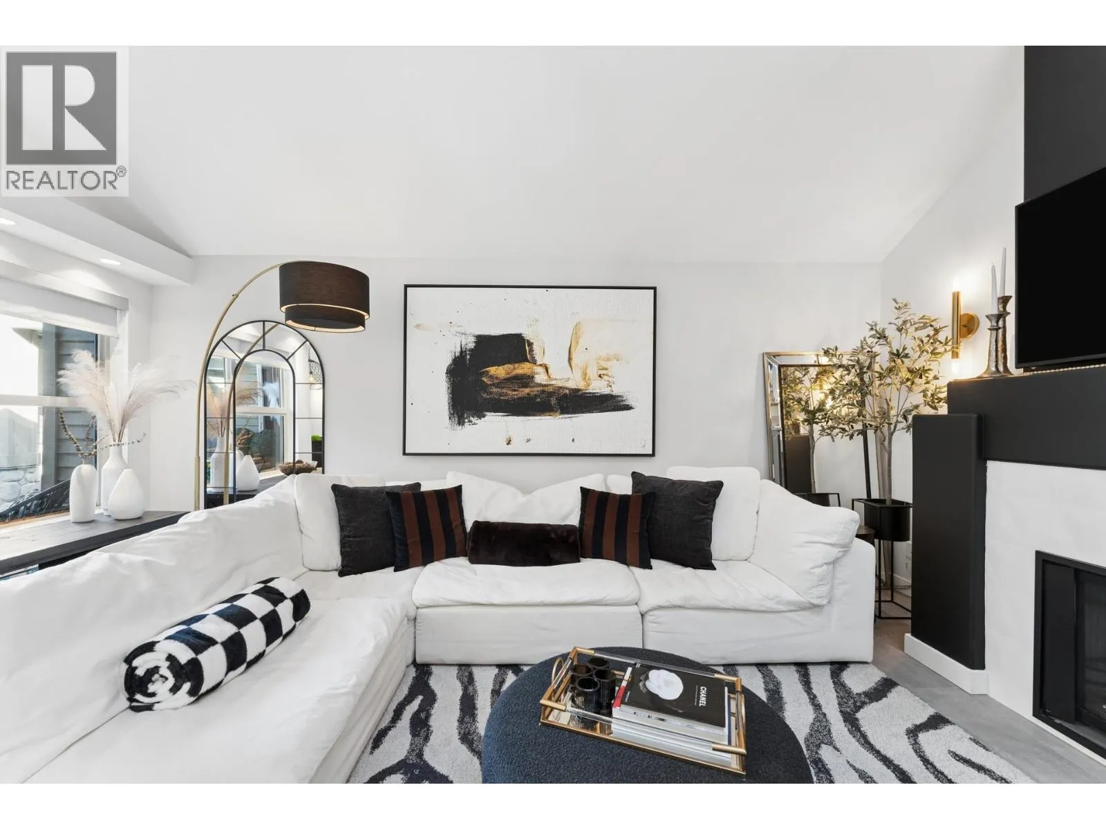Stunningly renovated townhome in sought-after Nahanee Woods. Offering 3 bedrooms, 3 bathrooms, and over 1,800 square ft on two levels, including a spacious main-floor primary bedroom. The foyer opens to an open-concept living and dining area with vaulted ceilings, gas fp, and white oak stairs with metal and glass railings. Tile flooring with radiant in-floor heating spans the main level, complemented by a recent heat pump and A/C upgrade. The open kitchen features sleek white cabinetry, quartz counters, a large island, and Thermador appliances. A flex space with a second gas fireplace opens to a private west-facing deck. The main-floor primary retreat includes bay windows, walk-in closet, and renovated 5-piece ensuite. Upstairs are two generous bedrooms, a 4-piece bath, and flexible landing. Quietly located near parks, shopping, recreation, schools, and trails. (id:27476)