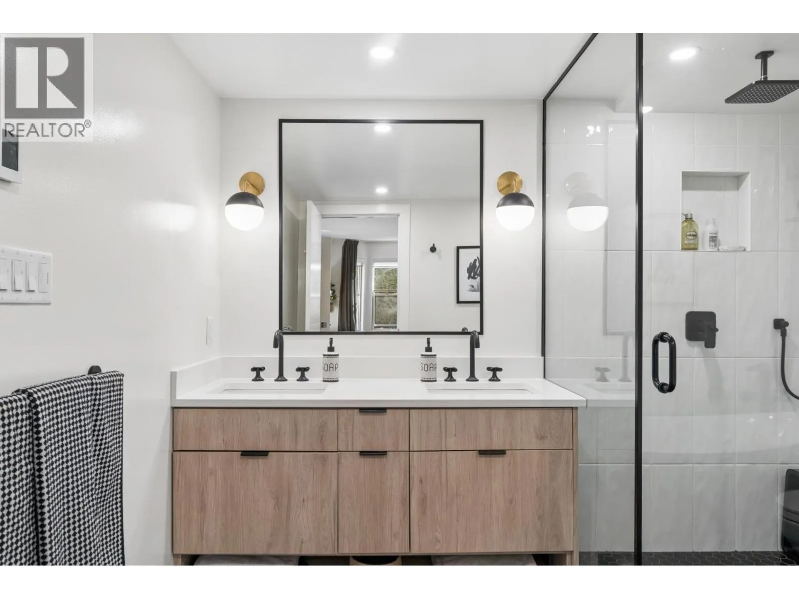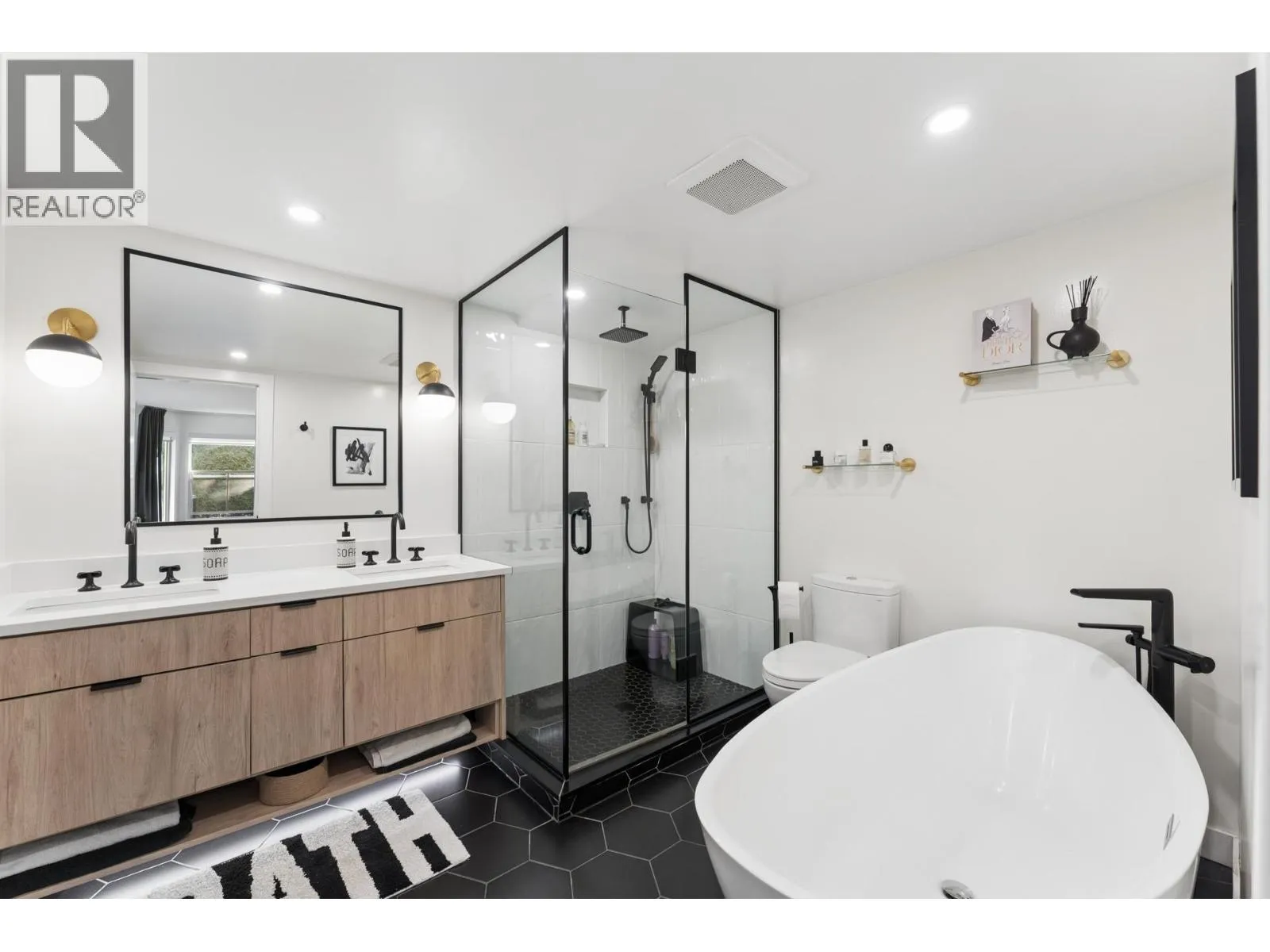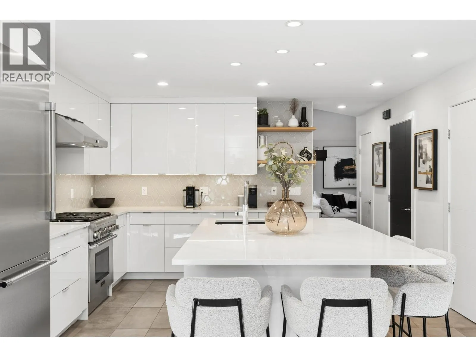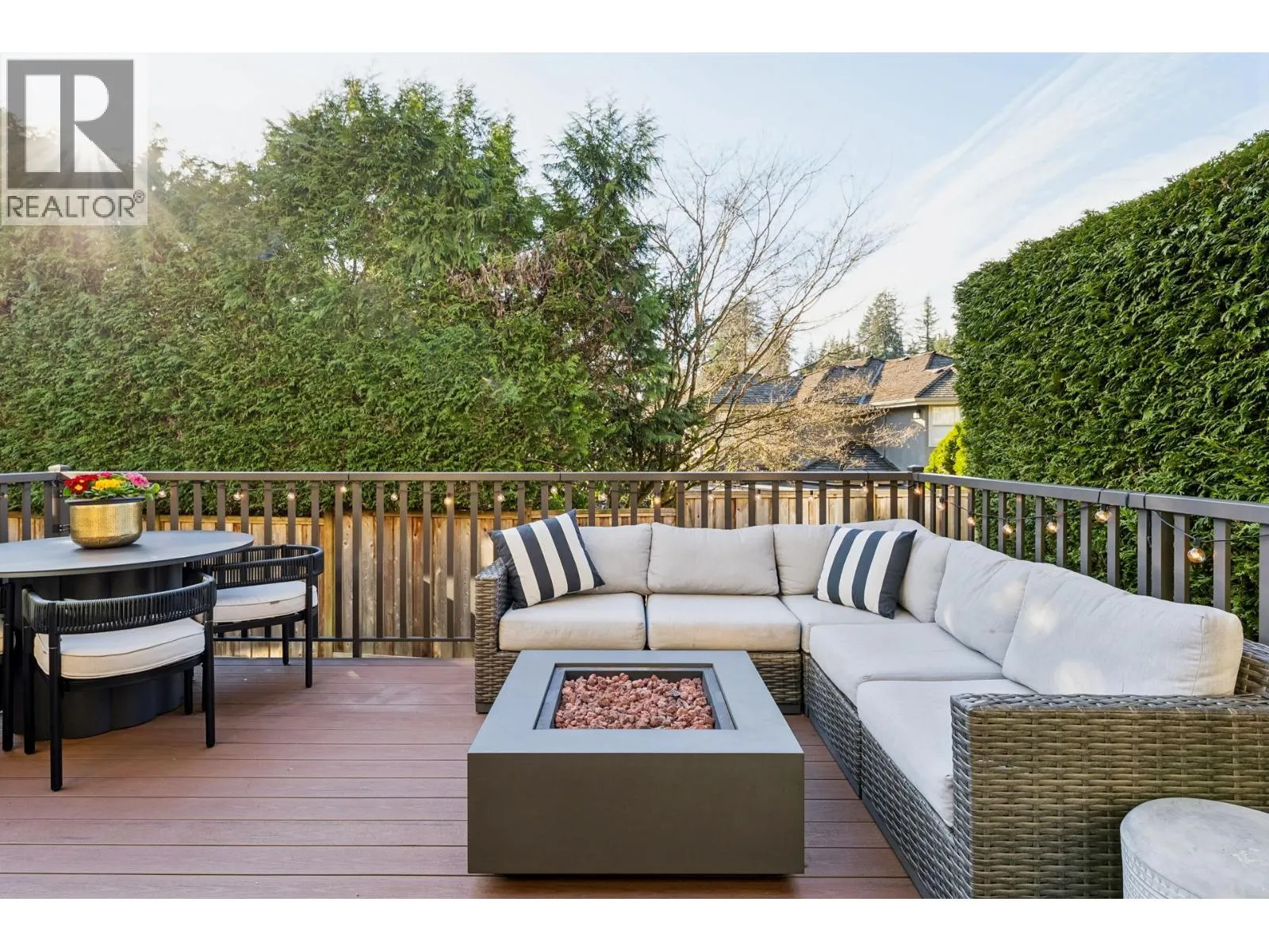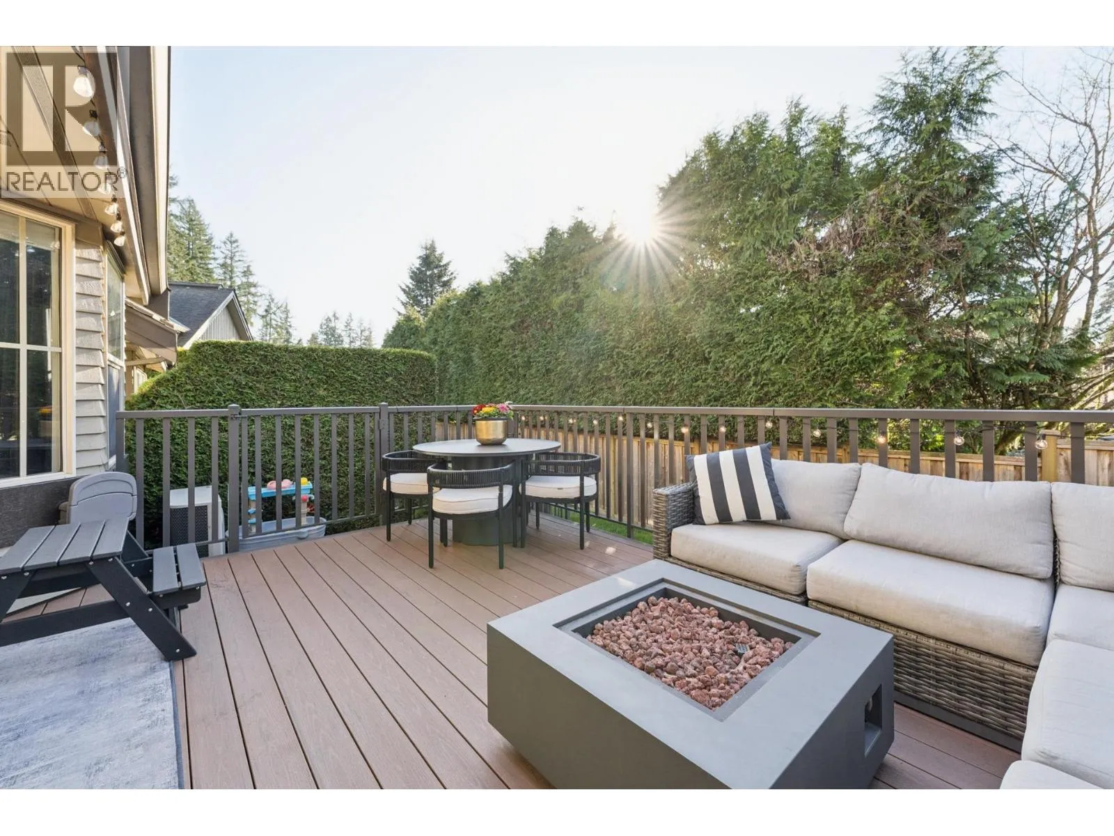 Stunningly renovated townhome in sought-after Nahanee Woods. Offering 3 bedrooms, 3 bathrooms, and over 1,800 square ft on two levels, including a spacious main-floor primary bedroom. The foyer opens to an open-concept living and dining area with vaulted ceilings, gas fp, and white oak stairs with metal and glass railings. Tile flooring with radiant in-floor heating spans the main level, complemented by a recent heat pump and A/C upgrade. The open kitchen features sleek white cabinetry, quartz counters, a large island, and Thermador appliances. A flex space with a second gas fireplace opens to a private west-facing deck. The main-floor primary retreat includes bay windows, walk-in closet, and renovated 5-piece ensuite. Upstairs are two generous bedrooms, a 4-piece bath, and flexible landing. Quietly located near parks, shopping, recreation, schools, and trails. (id:27476)