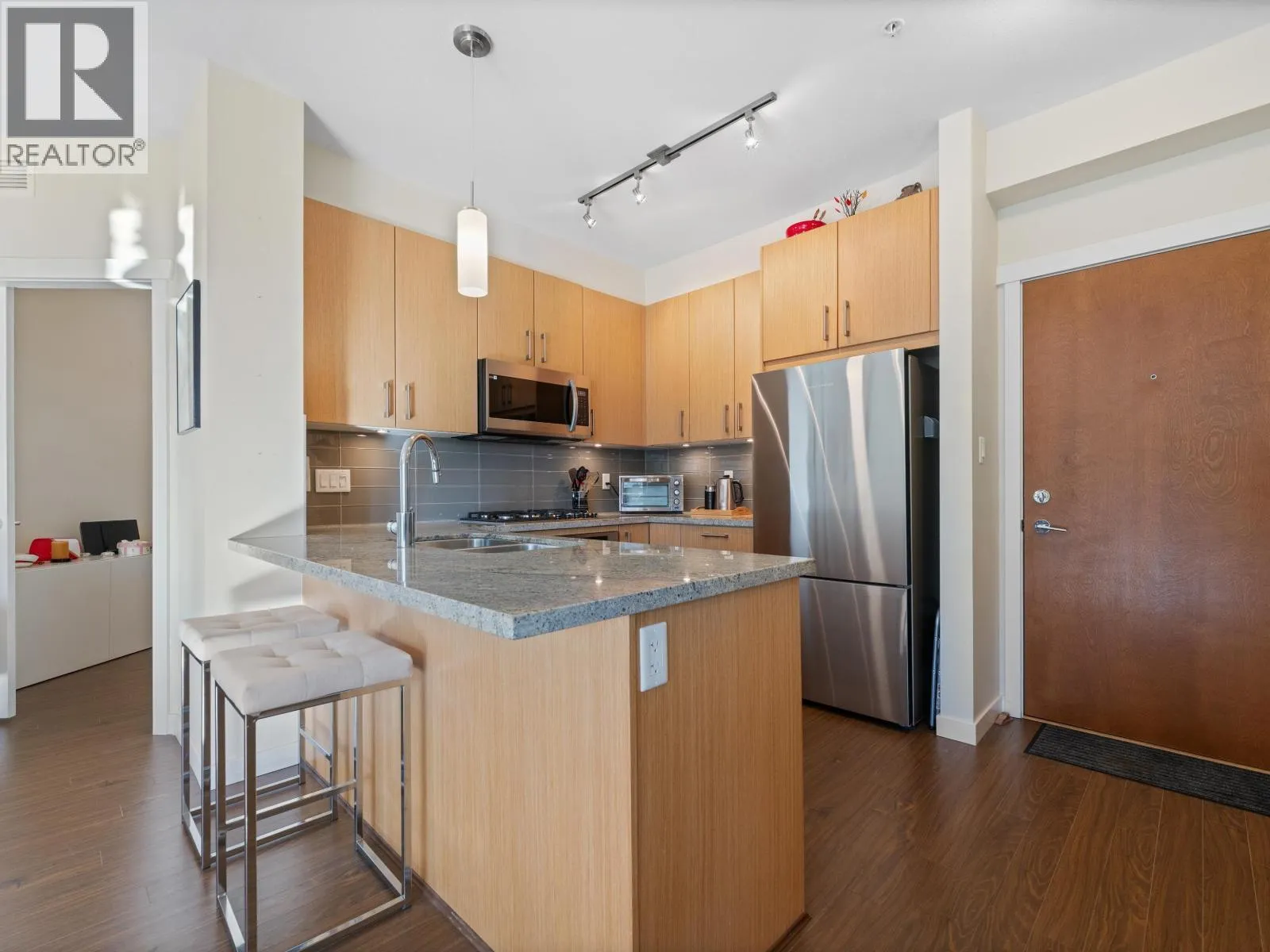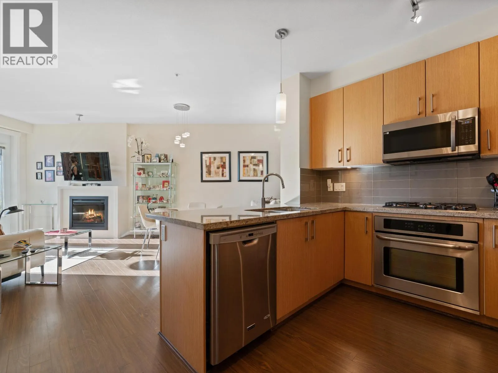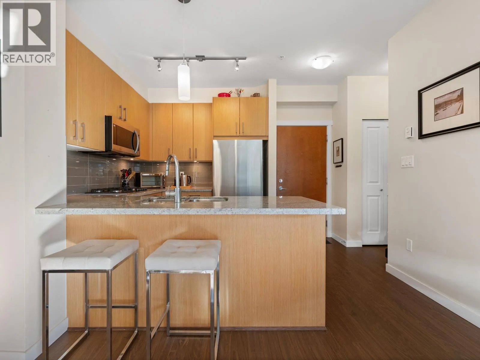 Welcome to this bright and spacious home in the sought-after ANDERSON WALK by POLYGON HOMES. Located on the 4th floor, this beautifully designed unit offers a fantastic open-concept floorplan facing the quiet COURTYARD, bringing in plenty of natural light. A standout feature is the SUPER LARGE DEN, perfect for a home office, guest space, or nursery. The kitchen includes SS appliances, a gas range, and granite countertops, flowing seamlessly into the living and dining areas. Enjoy a covered balcony and peaceful outlook. Amenities include a gym, guest suite, party room, and bike room. STEPS to shops, restaurants, parks, and transit in Central Lonsdale. Comes with 1 parking and 1 locker. (id:27476)