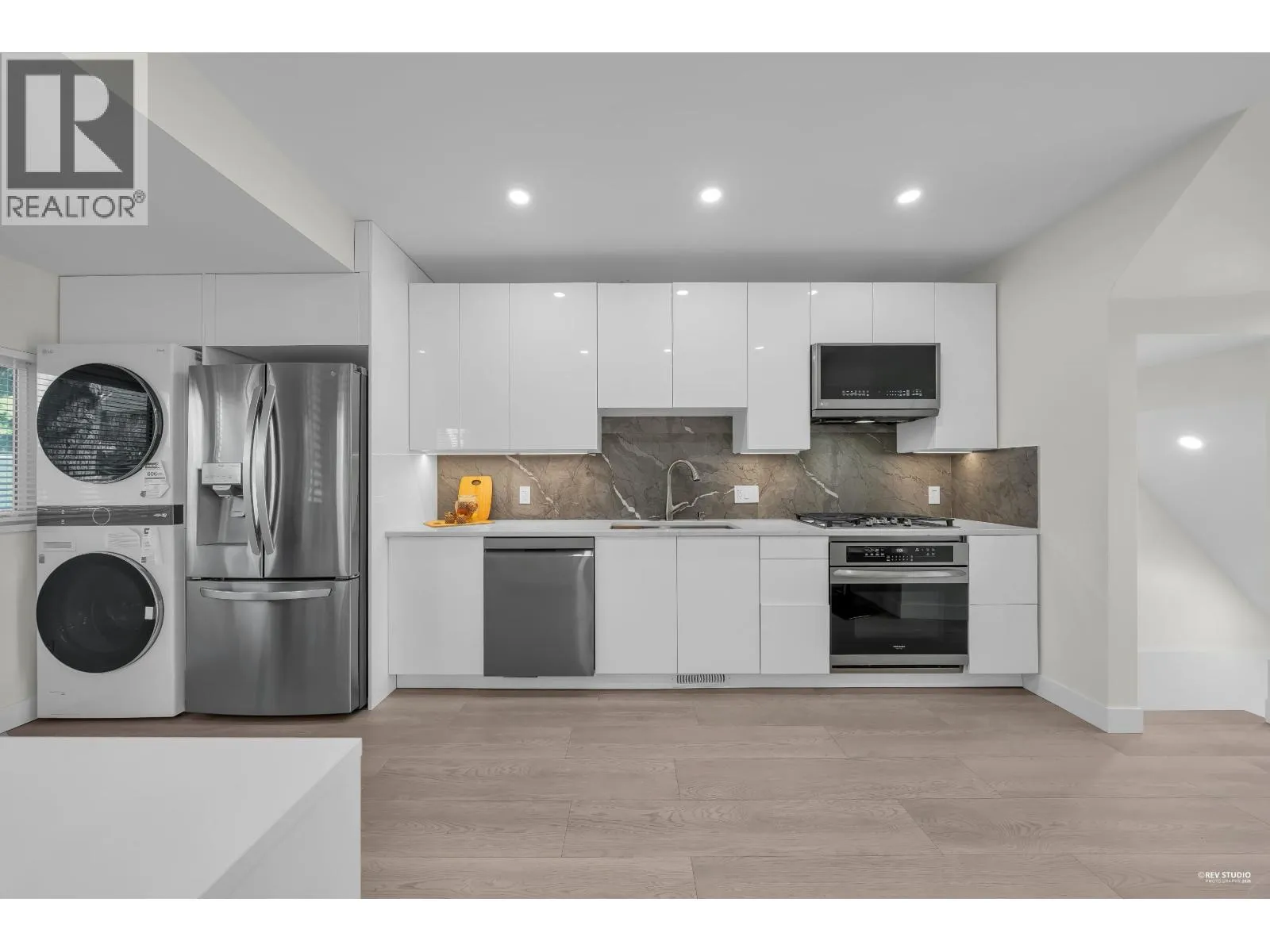 Substantially renovated with permits, this beautifully finished 3-level home offers approximately 1,909 sq. ft. of modern comfort in sought-after Upper Lonsdale. Major upgrades include plumbing, electrical, insulation, windows, siding, doors, and flooring, creating the feel of a nearly new home with quality craftsmanship throughout. The bright open-concept main floor features a stylish kitchen with quartz countertops, full-height cabinetry, gas range, and stainless steel appliances, perfect for everyday family living and entertaining. Contemporary bathrooms showcase glass-enclosed showers, a skylight, and elegant finishes. Enjoy rebuilt balconies with modern glass and metal railings, a terraced front yard with new retaining walls, pavers and lighting, plus a landscaped backyard with a spacious deck for outdoor gatherings. The lower level offers a private entry with flexible living options. Ideally located steps to parks, schools, shops, and the vibrant Lonsdale corridor. OPEN HOUSE SUNDAY 2:30 PM TO 4:00 PM. (id:27476)