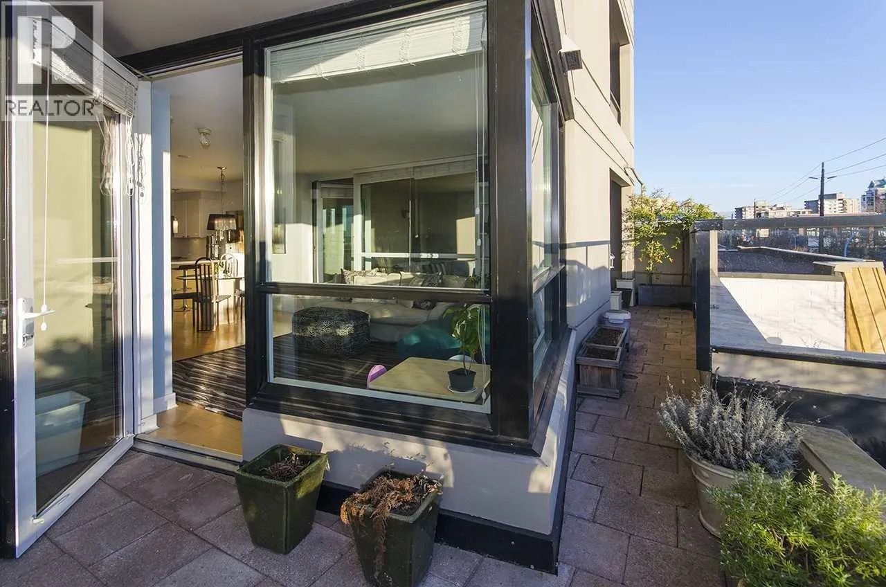 Welcome to The Envy in the heart of Lower Lonsdale. This rare one bedroom offers 703 square ft of well laid out living space plus an incredible 358 square ft south facing patio, much of it covered so it can be enjoyed year round. The open plan layout feels bright and airy thanks to an extra wall of windows in the living room, and you can step out onto the large, very private patio from both sides of the living space overlooking the rooftop garden. Features include radiant in floor heating, engineered wood floors and quartz counters. Concrete building with unlimited rentals and two pets allowed. All just steps to the Seabus, great restaurants, shops and everything Lower Lonsdale has to offer. Easy to show! (id:27476)
