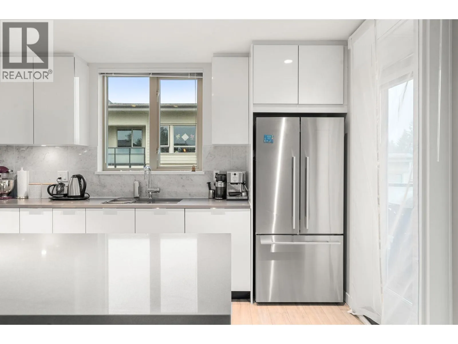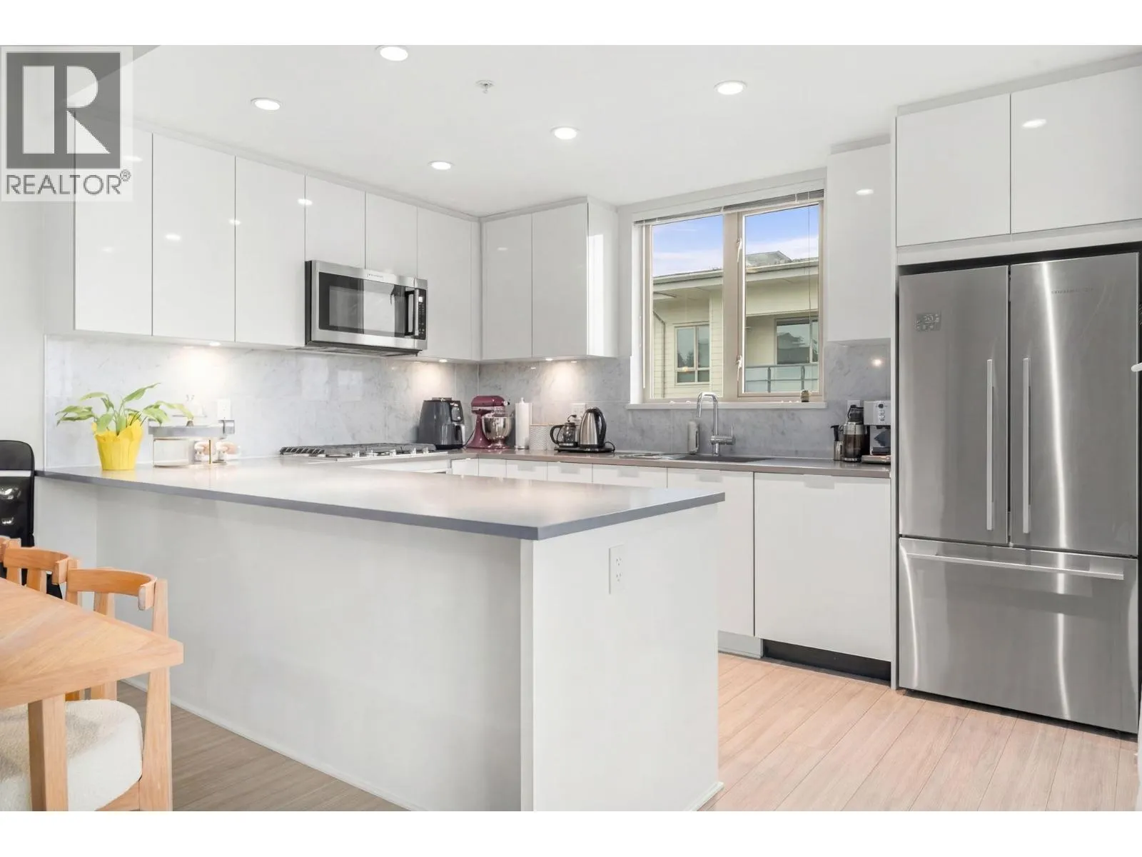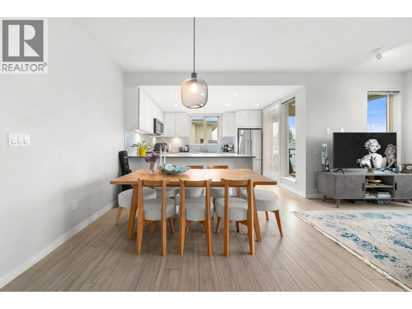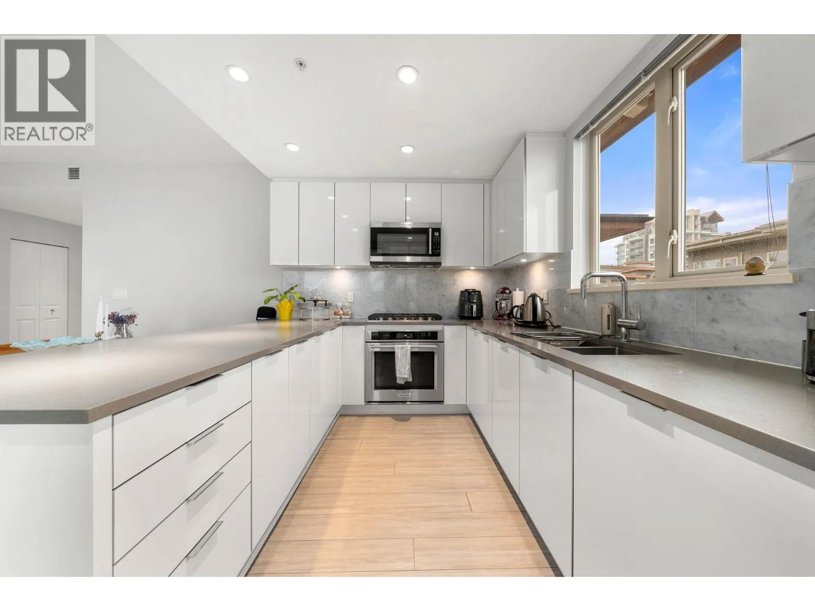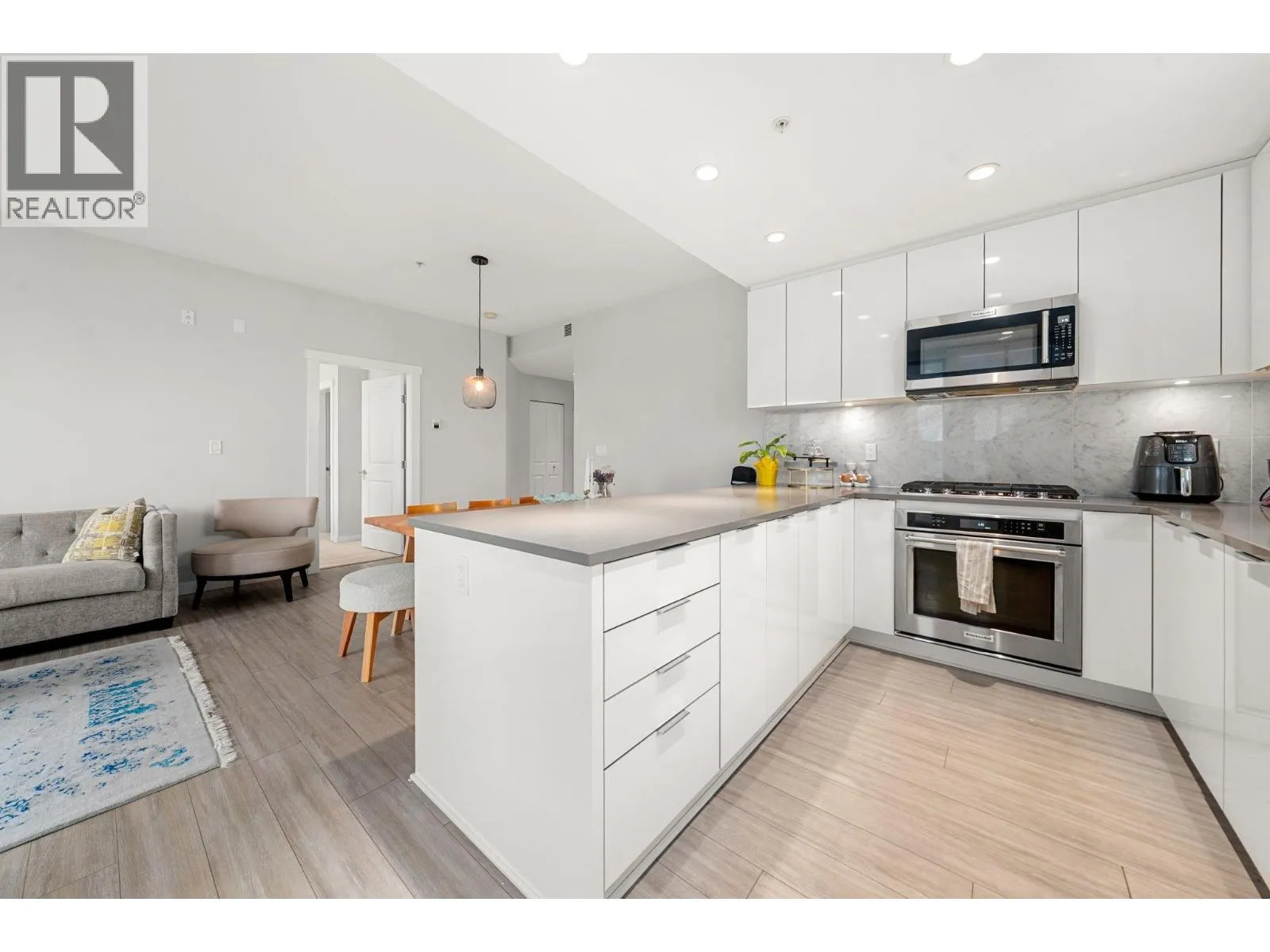 Beautiful top-floor 2 bed, 2 bath condo in the heart of Lynn Valley with sweeping mountain views and a private deck. Soaring ceilings and a smart, open layout create a bright and spacious feel throughout. The kitchen features quartz countertops, marble backsplash, and premium KitchenAid & Fisher & Paykel stainless steel appliances, flowing seamlessly into the living and dining areas perfect for everyday living and entertaining. Building amenities include EV charging and a convenient dog wash station. Includes 2 parking stalls. Steps to Lynn Valley Centre, parks, hiking and biking trails, transit, and close to top-rated schools. (id:27476)