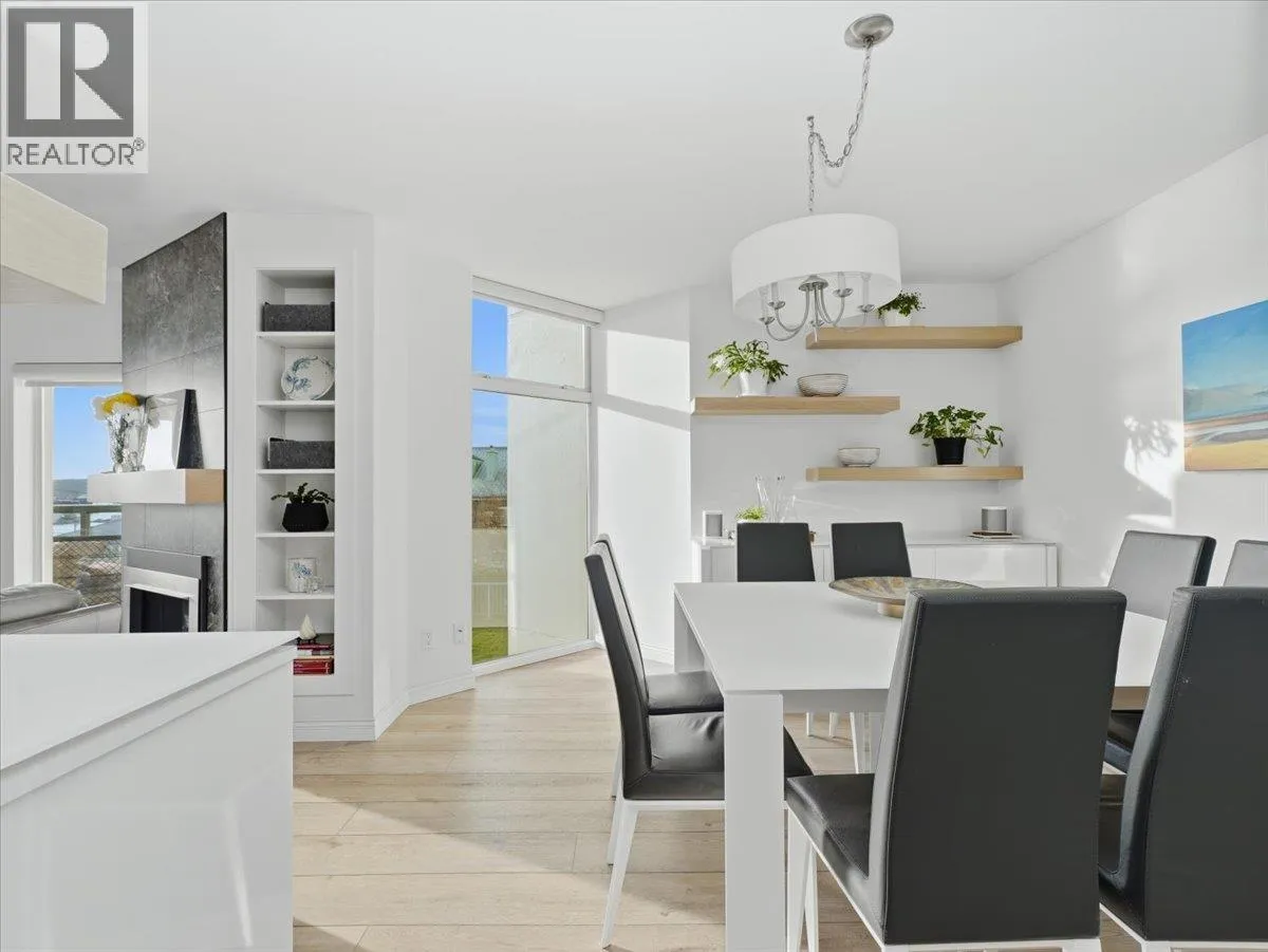 Spacious 3-bedroom, 3-bathroom, Office & Den OCEANVIEW Residence set over 2 levels and spans over 1900 square ft and feels like a house. Substantially renovated featuring a bright open-concept living area designed to showcase the impressive outlook. The upper level offers three oversized bedrooms,(2 with walk-in closets) including a stunning primary suite with spa-inspired ensuite. The main level boasts a beautifully updated kitchen, premium appliances, cozy new fireplace, updated flooring, home office and modern renovated bathrooms. Enjoy SPECTACULAR SUNSETS from either balcony or the ROOFTOP Patio. Ample building amenities including bike room, sauna, gym, patio, library and literally front door access to the Seabus and Vibrant LoLo. Includes 2 parking and an XL storage . (id:27476)