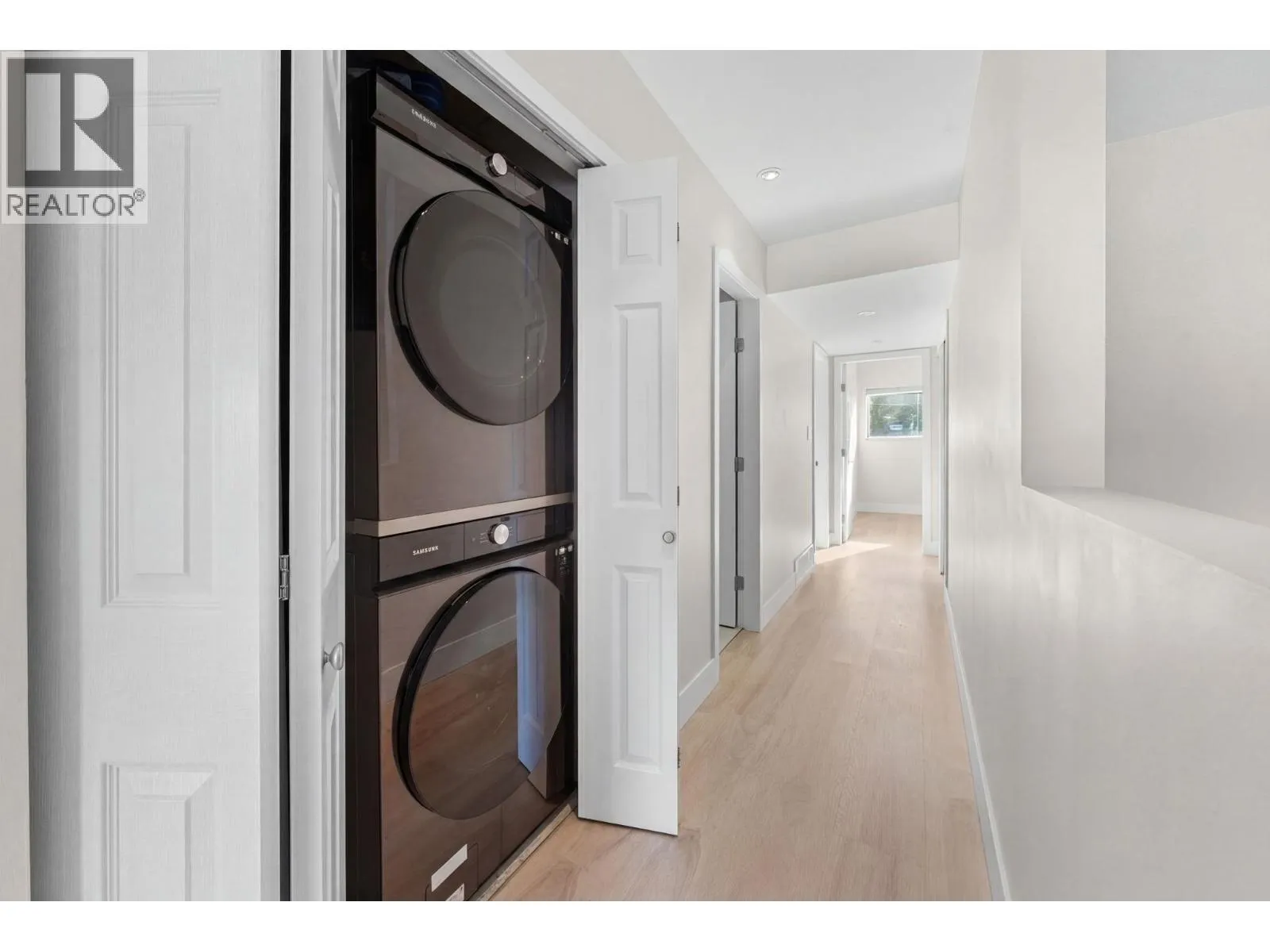 Unique townhouse style top floor, corner suite. This renovated property features a private entrance and occupies the entire end building, allowing lovely eastern morning light in the bedrooms and full evening sun, sunsets and mountain views from the western-facing living areas and deck. Wonderfully updated including fresh paint, wide plank flooring, new light fixtures, and an enormous renovated kitchen with new cabinets, hardware, stone counters, stainless appliances and loads of storage. The home lives large and all the rooms are generously proportioned, no need to compromise on any furniture. The home has in suite laundry and a large internal storage room. Family friendly complex with outdoor pool, gym and playground and walking distance to parks, grass fields, Cap U and transit! (id:27476)