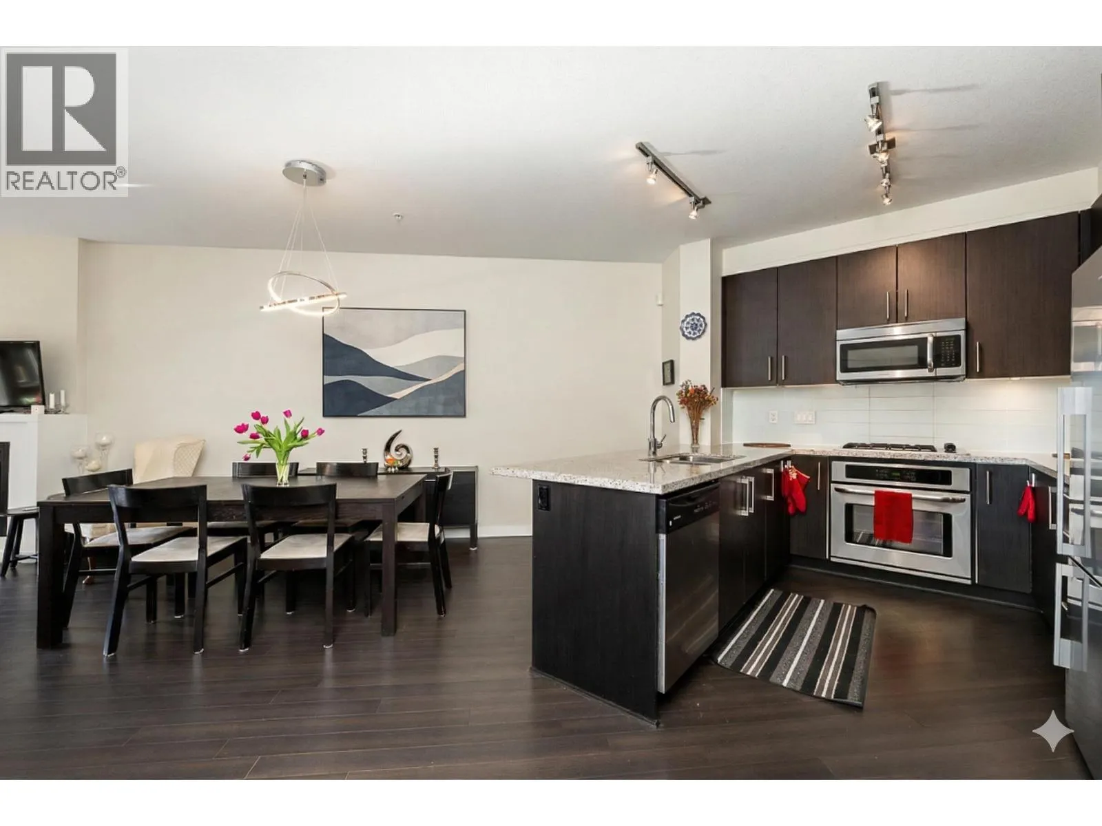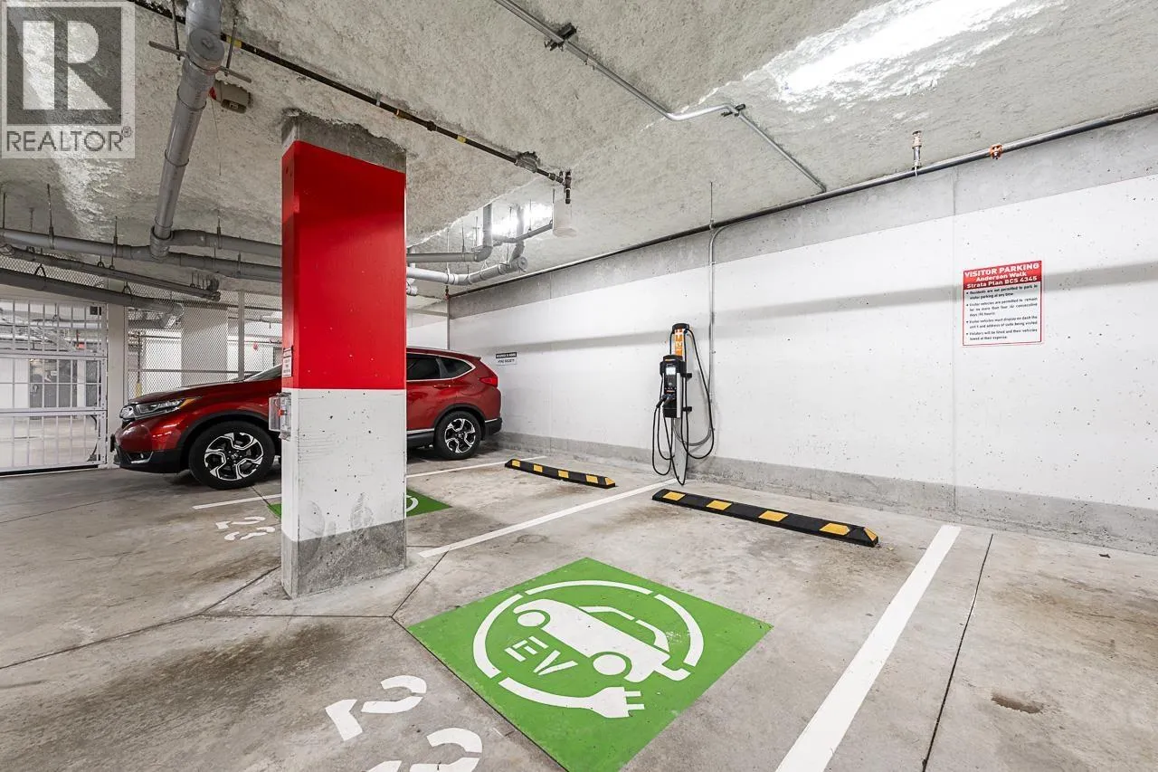 The huge 1 bed condo in Anderson Walk by Polygon you have been waiting for! Large square footage offers an organic, livable flow and truly open living space. Choice orientation facing South onto the quiet courtyard with a private balcony and tons of natural light. Spacious kitchen offers lots of pantry space, full size stainless steel appliances, granite countertops, and a gas range. Radiant in-floor heating! Building amenities include a well appointed gym, bike room, party room and guest suite. Located on a quiet, tree-lined just steps to shopping on Lonsdale. Great parking stall underground. Pet friendly building! (id:27476)