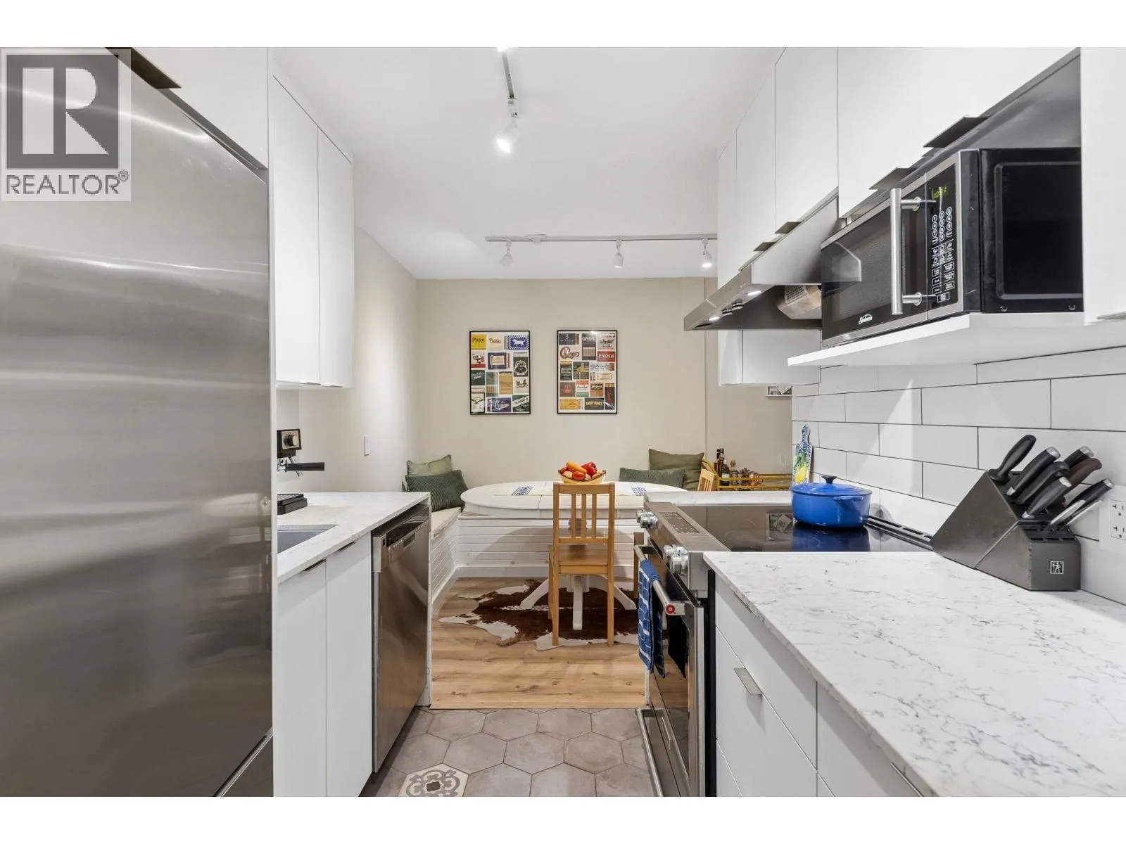 Proudly presenting this beautifully updated, spacious, & private 1 bed & den home in vibrant Lower Lonsdale. Sprawling over 800sf, this ground-level home features new light oak wide-plank floors, true dining space with custom bench seating, & generous living area with access to your peaceful & private terrace ideal for morning coffee or Summer BBQ. Perennial renovated kitchen offers top rate S/S appliances, stylish hex tiling, large basin sink, & beautiful stone countertops. An oversized, cozy bedroom pairs beautifully with a spa-inspired bathroom offering floor-to-ceiling tile & a relaxing rain shower. Den & extra closets allow for a home office or plenty of additional storage. 1 parking 1 locker. Well run strata situated on a quiet street minutes from Lonsdale Quay. A must see! (id:27476)