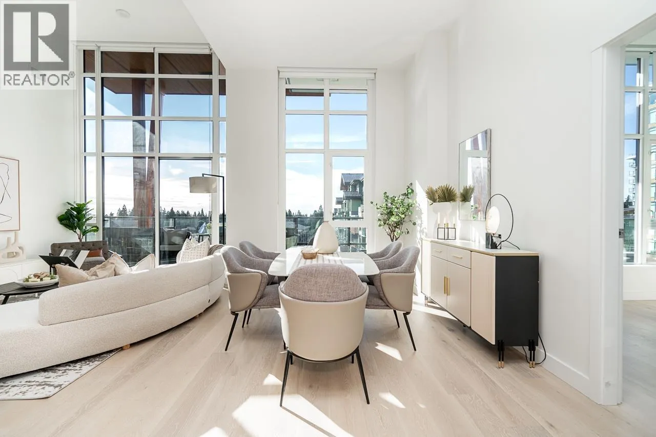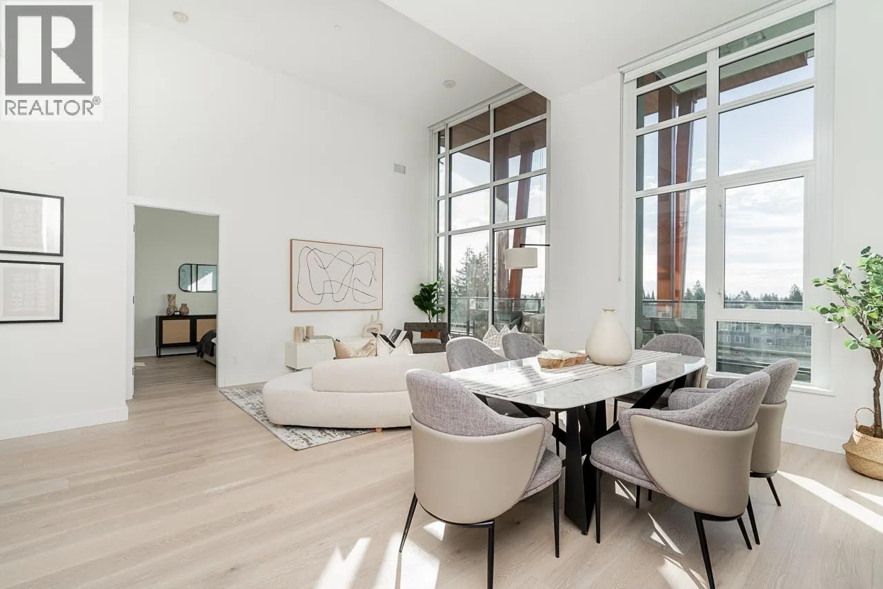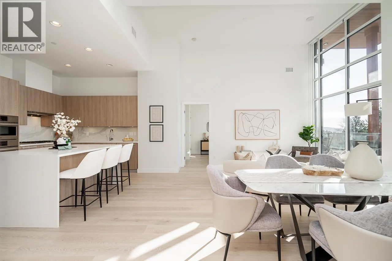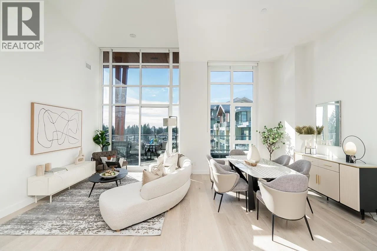 Downsizing Dream! A rare penthouse at Residences at Lynn Valley, offering space, comfort, and ease ideal for those coming from dettached. This bright home features 2 spacious bedrooms with over-height soaring ceilings, 2 full ensuite bathrooms plus a powder room, and central A/C. The chef´s kitchen with premium BOSCH appliances opens to an expansive living area and large deck where you can relax and enjoy stunning sunsets. South-facing windows and ceilings up to 13'8" flood the home with natural light, creating an openness rarely found in condo living. Located in the heart of Lynn Valley Town Centre, just steps to shops, services, and daily conveniences. Includes 2 parking stalls and a large storage locker. Showings by private appointment, contact your realtor today! (id:27476)