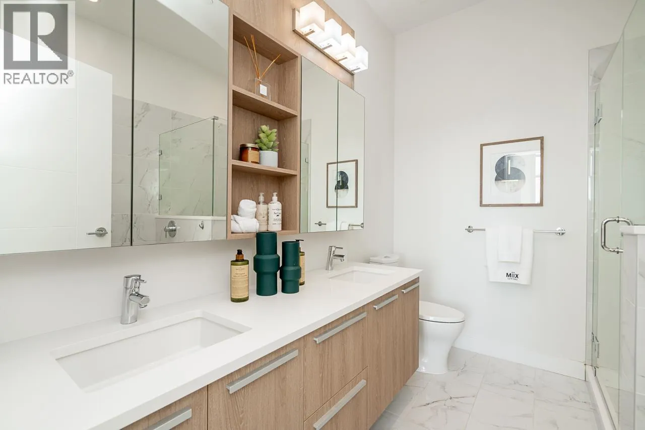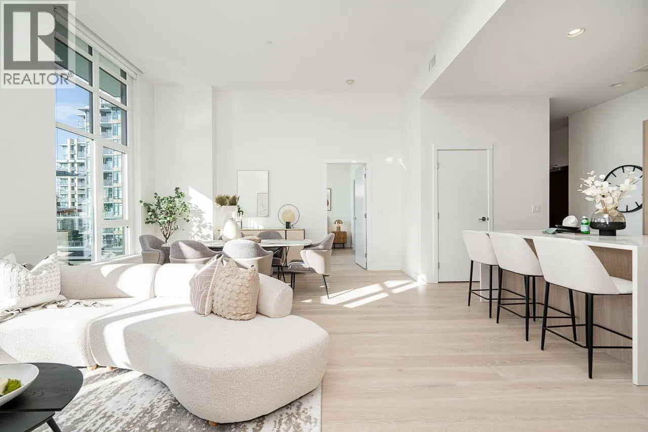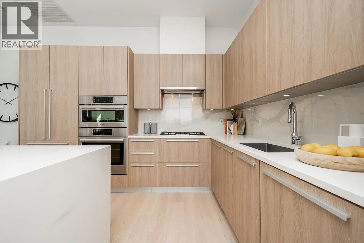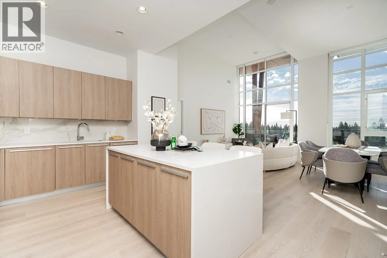 Downsizing Dream! A rare penthouse at Residences at Lynn Valley, offering space, comfort, and ease ideal for those coming from dettached. This bright home features 2 spacious bedrooms with over-height soaring ceilings, 2 full ensuite bathrooms plus a powder room, and central A/C. The chef´s kitchen with premium BOSCH appliances opens to an expansive living area and large deck where you can relax and enjoy stunning sunsets. South-facing windows and ceilings up to 13'8" flood the home with natural light, creating an openness rarely found in condo living. Located in the heart of Lynn Valley Town Centre, just steps to shops, services, and daily conveniences. Includes 2 parking stalls and a large storage locker. Showings by private appointment, contact your realtor today! (id:27476)