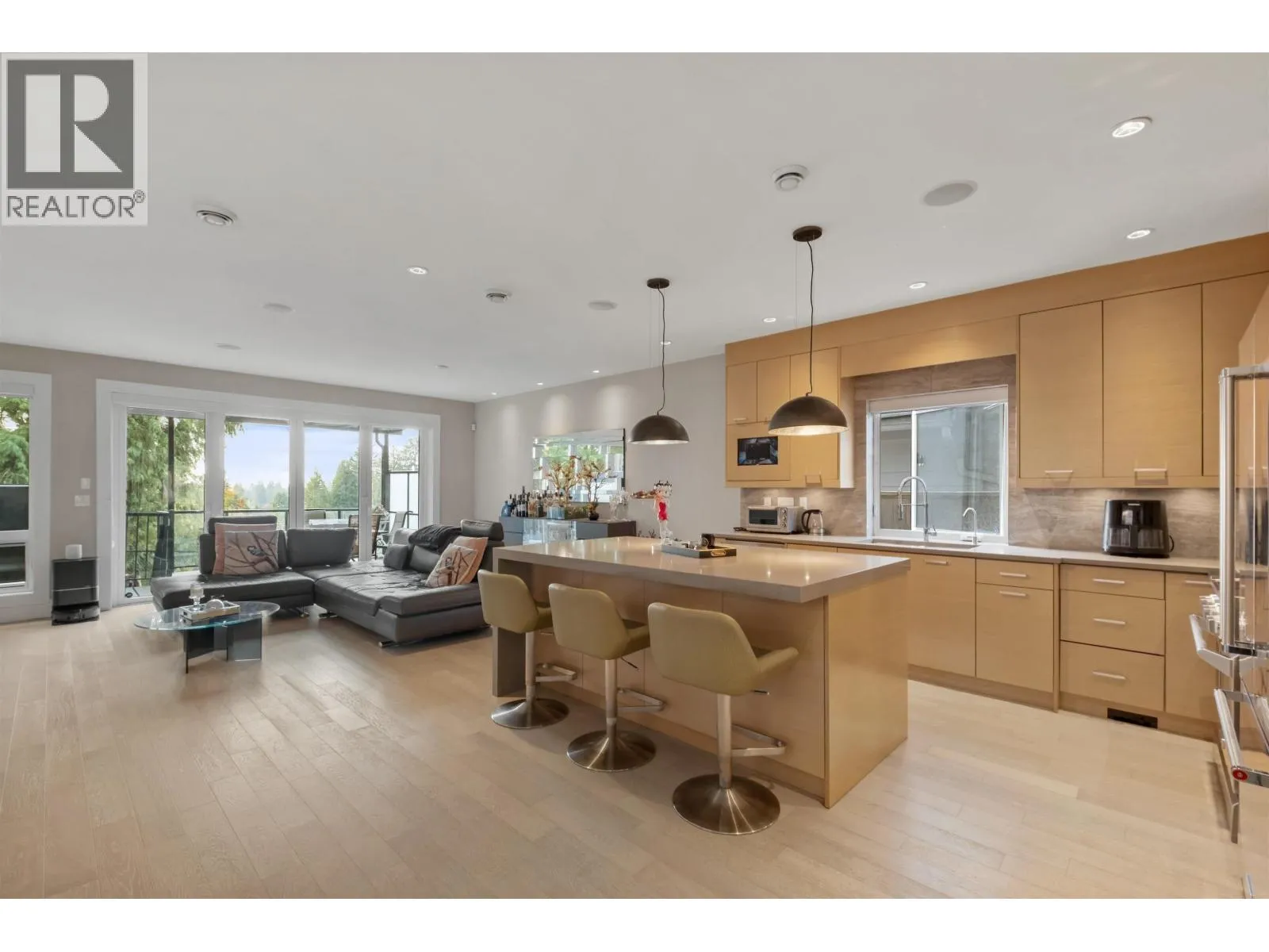Experience modern luxury in this nearly 3,400 square ft home in the quiet, family-friendly Canyon Heights. The open-concept main level features a gourmet kitchen and seamless indoor-outdoor living that opens to a spacious patio and landscaped yard. The primary suite offers a spa-like ensuite and private deck access. Downstairs includes a legal 2-bedroom suite with separate entry. With A/C, radiant in-floor heating, a versatile main-floor den/office, oversized rec room, and media room, this home offers exceptional comfort and flexibility. Steps to the Grouse Grind, Handsworth Secondary School, Cleveland Park, and a short stroll to Edgemont Village. Attention Investors: Owner open to a one-year lease-back with approximately $80,000 rent paid in advance for the entire home, including the suite. (id:27476)