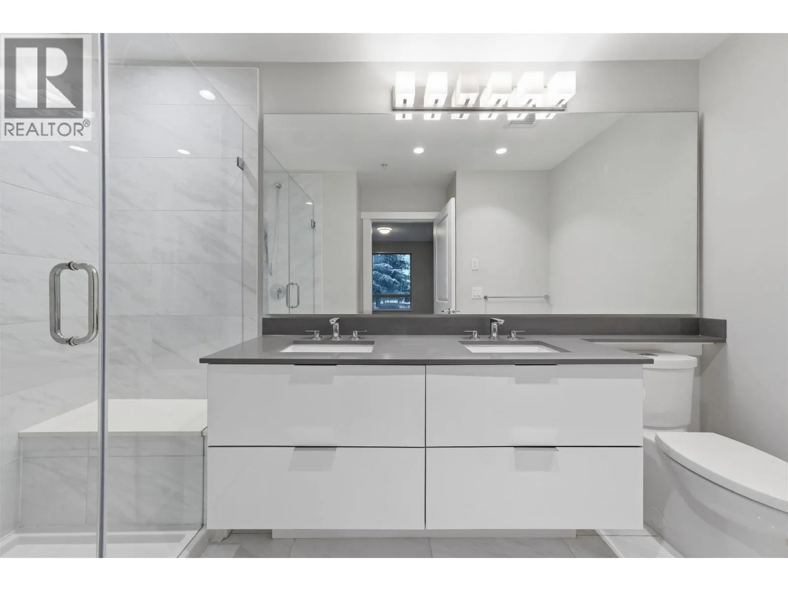Marvelous Taluswood by Polygon! This spacious 2 bedroom, 2 bath home is bathed in sunlight with a partially covered overhang protecting the balcony. South facing and not overlooking any other unit. Quartz counter top and Island in kitchen, stainless steel appliances, 2 sinks and rain shower in master bedroom plus full bath and shower in the second bath. This home is immaculate and waiting for the next happy owner. Great gym and party room (id:27476)