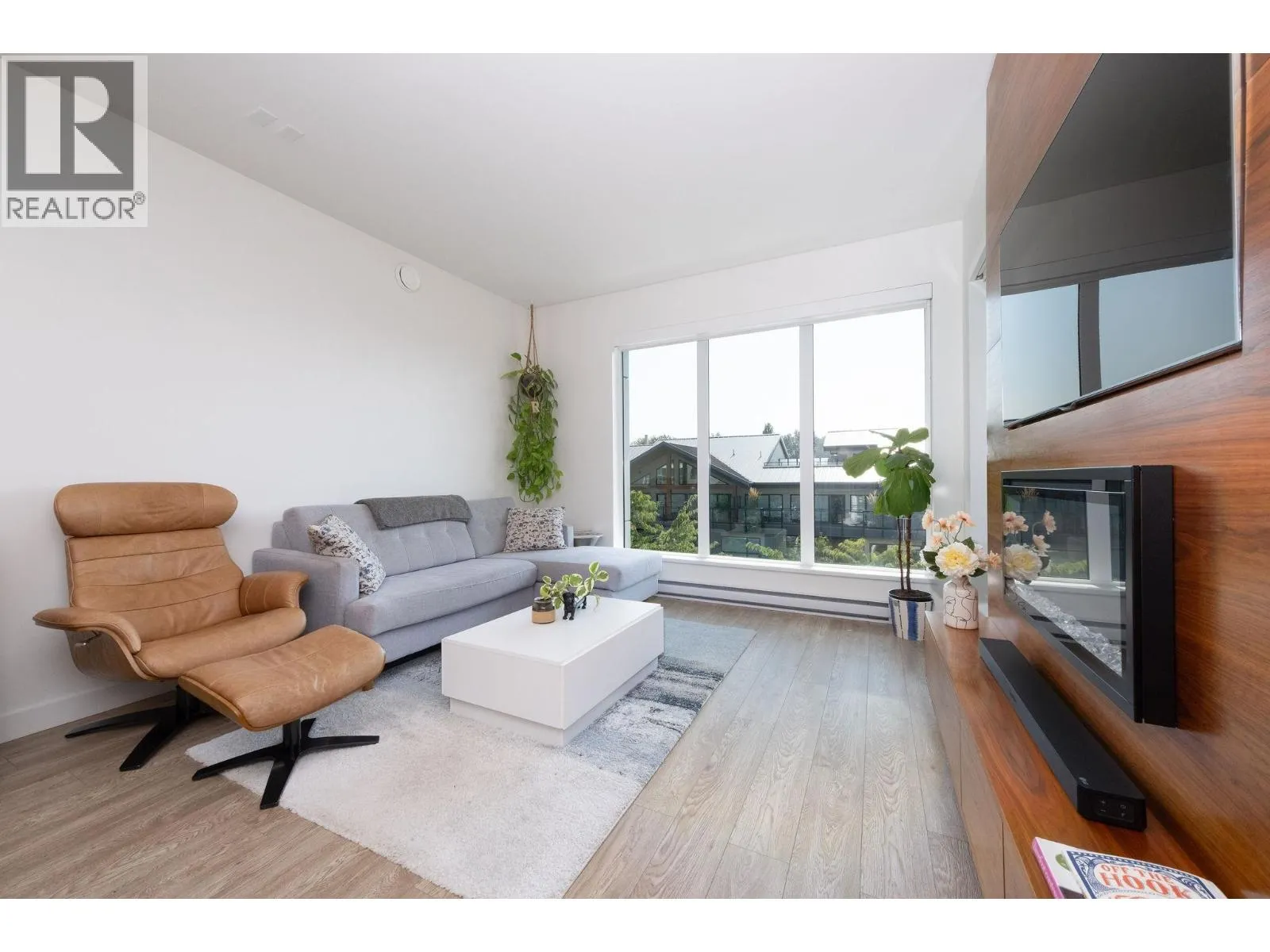 TOP floor very QUIET South (not Marine) facing 2 bedrooms, LARGE DEN and 2 full bath suite in the modern designed X61 building! Looking over cherry blossom trees are peek-a-boo views to Lions Gate Bridge and Downtown. This well cared for 'home' has fantastic flow and no wasted space with nearly 9' ceilings. Starting in the kitchen: quartz counters, Fisher Paykel appliances and gas stovetop all make cooking more enjoyable. Open living space for larger gatherings around stunning cabinetry with built in TV and fireplace. Separate bedrooms for privacy and a spacious 3rd bedroom or den with removable built-in cabinetry/storage. Secure EV parking. Short walk to a variety of shopping and restaurants! This suite is a must see, don't miss this one! OPEN HOUSE: Sat/Sun. Mar. 14/15th, 1:30-4pm. (id:27476)
