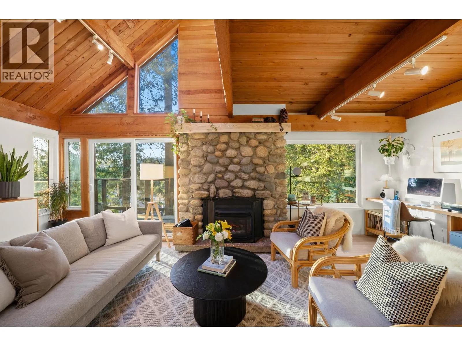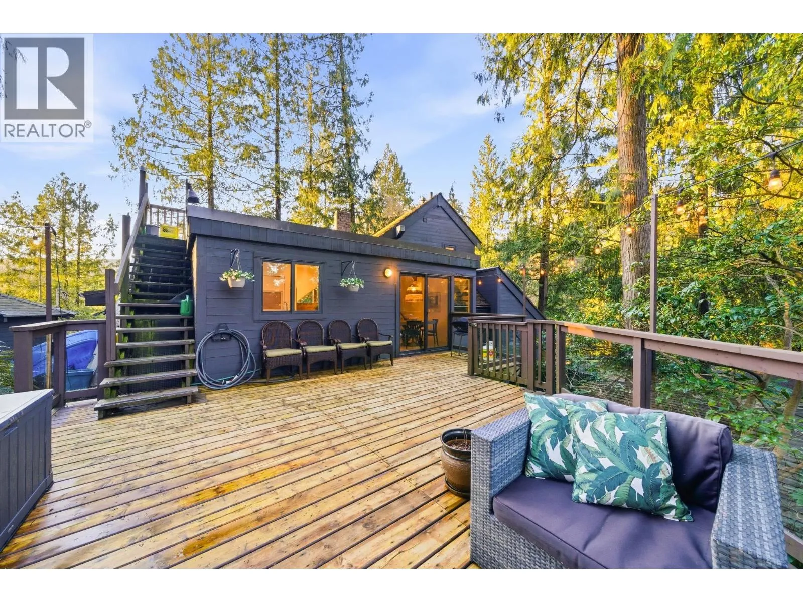 Perched among the trees in the heart of Deep Cove sits one of the most unique and special homes you will ever see. From the moment you walk through the door, you're welcomed with soaring vaulted ceilings, beautiful cedar posts and beams, and an abundance of natural light through skylights and dramatic floor-to-ceiling windows. The renovated kitchen is the heart of the home and opens onto a huge private patio-an incredible extension of the living space and the perfect setting for summer dinners parties. Designed for both entertaining and everyday comfort, this home has an effortlessly relaxed, welcoming feel. The living room features a cozy gas fireplace, perfect for curling up with a book, while the peaceful primary suite overlooks the serene surroundings. A quiet family room is ideal for movie nights, and the second and third bedrooms offer great space for kids. Step outside and experience the magic of Deep Cove, with Strathcona Park and forest trails just moments away. (id:27476)