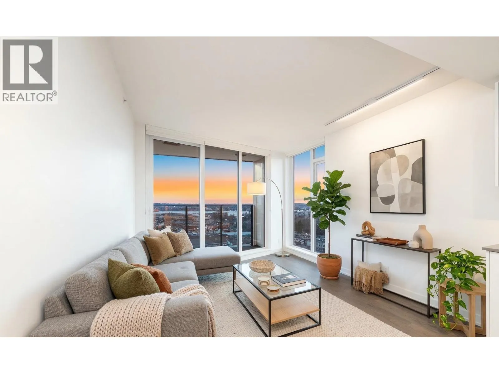 Introducing highly sought-after Hunter at Lynn Creek, an exceptional south-facing 1 bedroom + den offering outstanding light, views, and modern design in one of North Vancouver´s fastest-growing communities. Floor-to-ceiling windows capture sweeping city, water, and Second Narrows Bridge views, while the open floor plan is perfect for everyday living and entertaining. The contemporary kitchen features quartz counters, sleek cabinetry, and stainless appliances. The spacious den is ideal for a home office or flexible space. Enjoy resort-style amenities including a fitness center, sauna, steam room, lounge, courtyard, and bike facilities. Steps to Lynn Creek, Spirit Trail, hiking & biking trails, and minutes to Lynn Valley shops & services. Strong rental potential. Includes parking, storage. (id:27476)