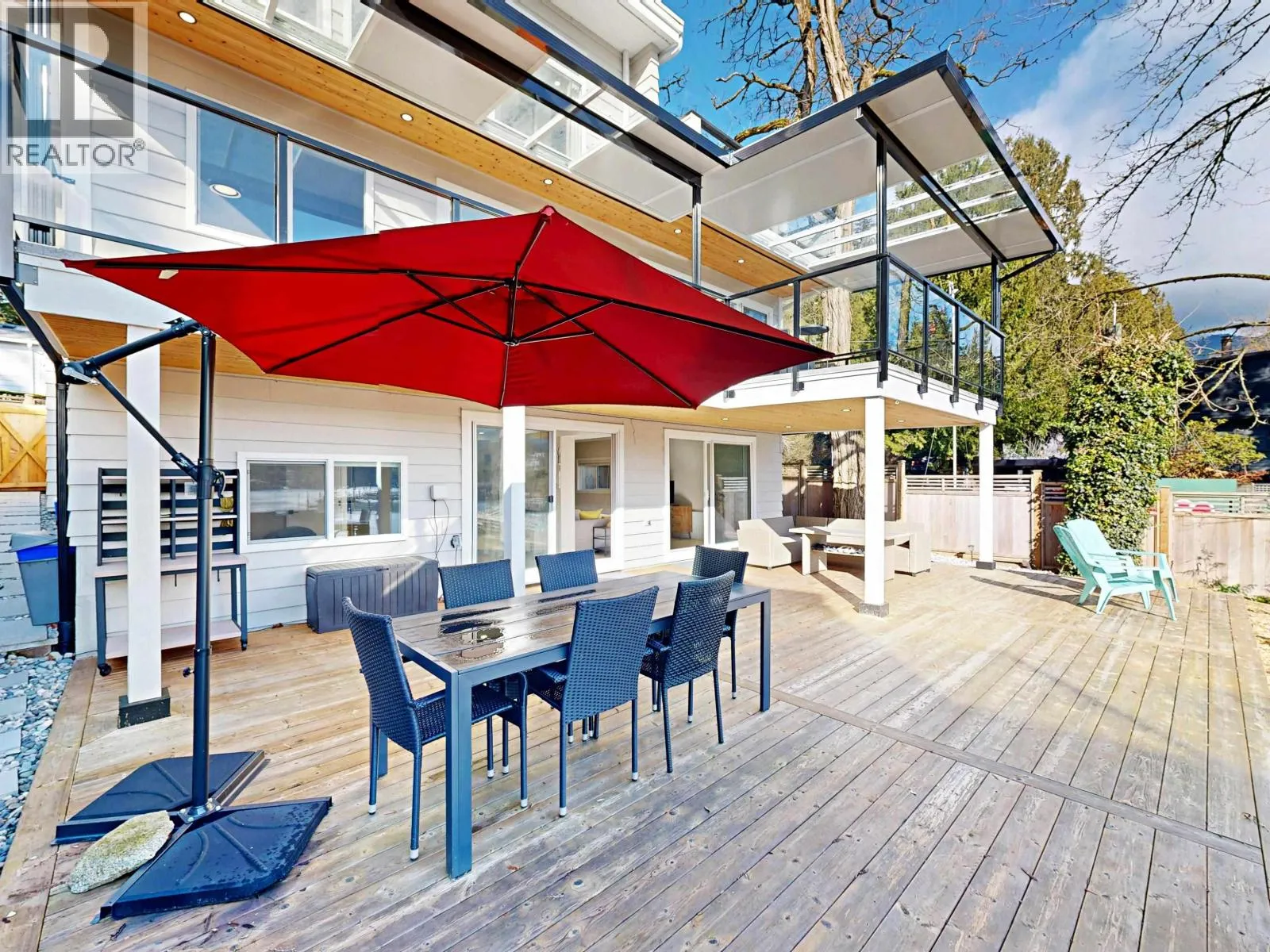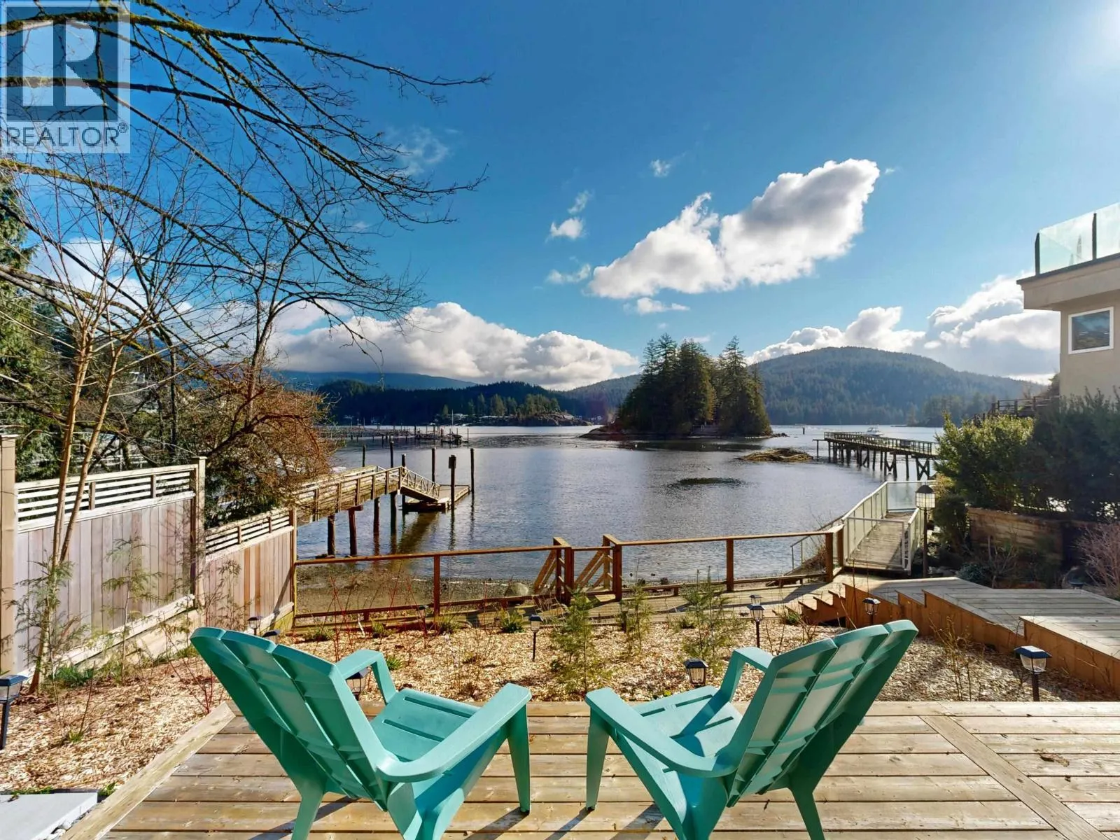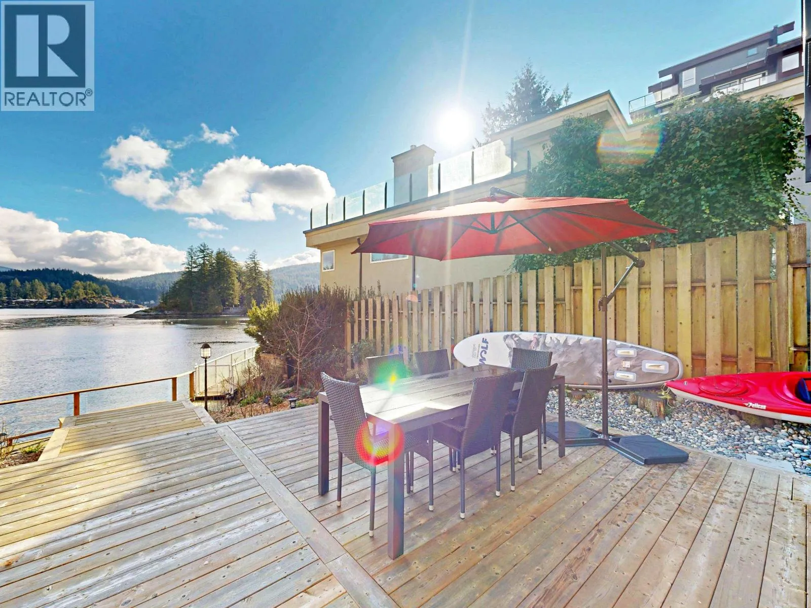 Newly renovated contemporary waterfront residence in Deep Cove offers a rare blend of modern luxury and West Coast natural beauty . Inside, the open-concept layout is flooded with natural light, highlighting high-end finishes. The chef-inspired kitchen features premium S/S appliances, sleek cabinetry, and an oversized island. With over 3,000sq ft it offers spacious living and dining areas flow effortlessly onto sun-drenched terraces, great for hosting or relaxing against a backdrop of the waterfront view. This home offers 5 generously sized bedrooms, 4 full bathroom. This prime waterfront property provides direct access to the shoreline and to your private shared dock to park your own boat. The ultimate West Coast lifestyle-kayaking, paddleboarding from your own backyard. Must VIEW! (id:27476)