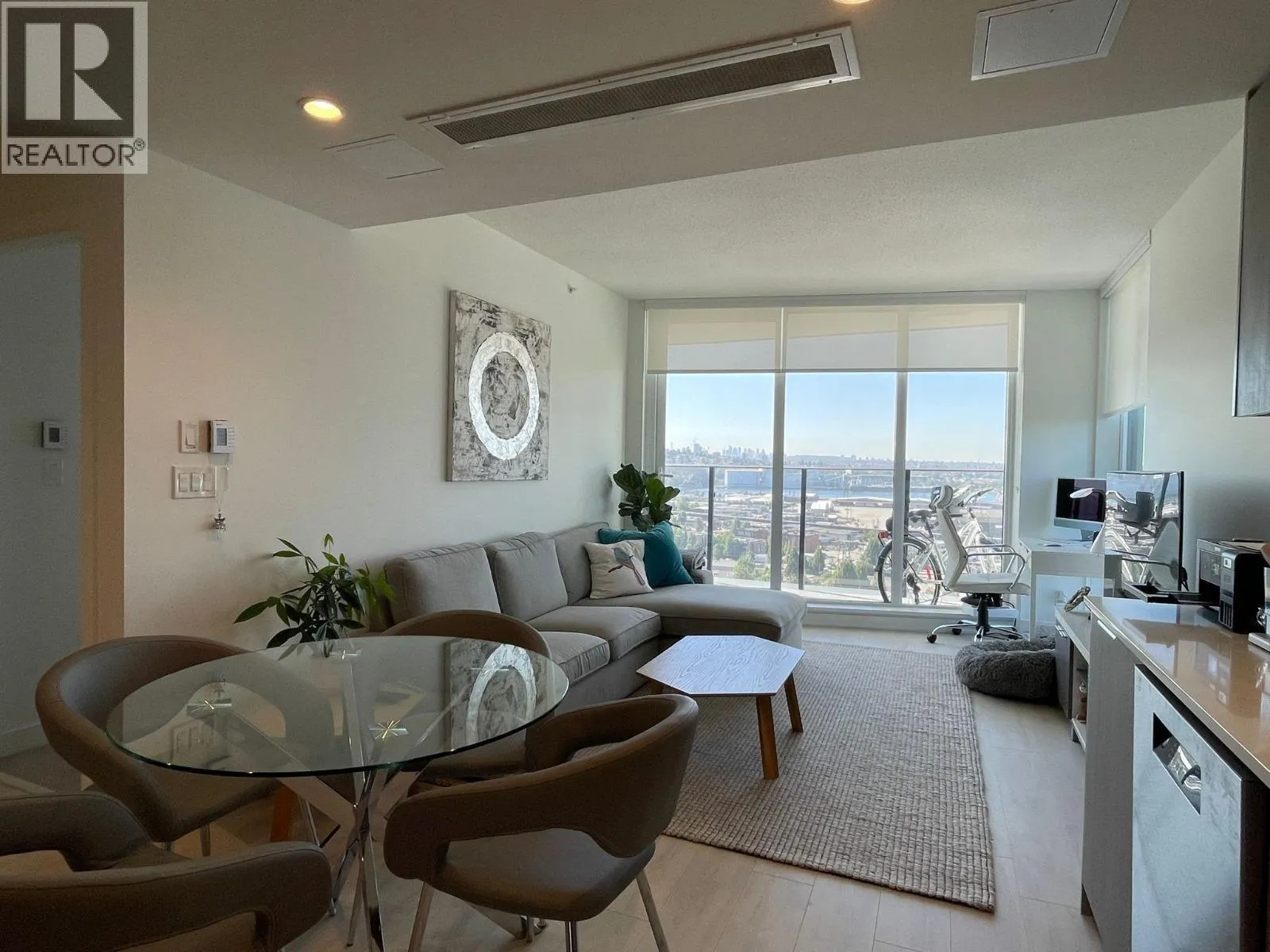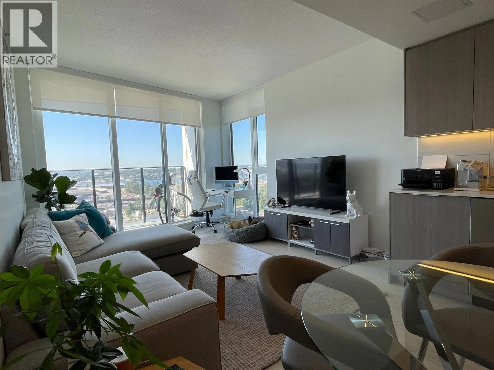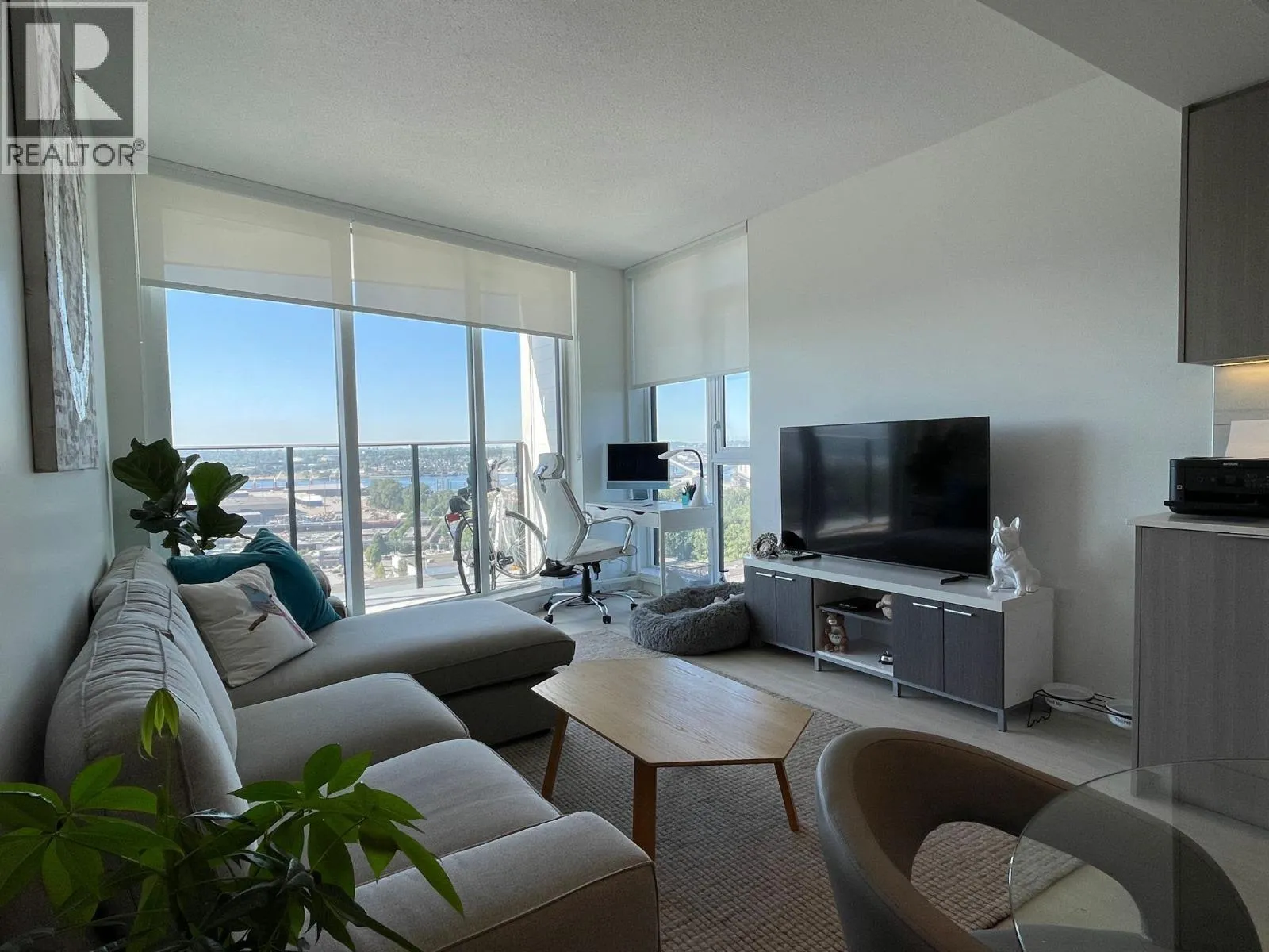 Panoramic WATER & CITY VIEW, on the 20th floor at "Hunter at Lynn Creek" . Bright & spacious SOUTHWEST facing 649 sqft 1 bedroom & Den with A/C at highly sought after development in the neighbourhood developed by Intergulf. Open plan kitchen has ample quarts counter space, modern cabinetry, S/S appliances & gas stove. Large private balcony and unobstructed water and city views will brings you a panoramic view. Few minutes drive from shopping, restaurants, Deep Cove, and Highway 1. The building offers a party room, gym, outdoor BBQ, children playing area, sauna social lounge, wellness centre and bike repair room and tens of visitors parking The unit faces unobstructed south view of water , mountains and second narrow bridge. EV Parking: P1-#264, Locker:P1 122-#40. (id:27476)