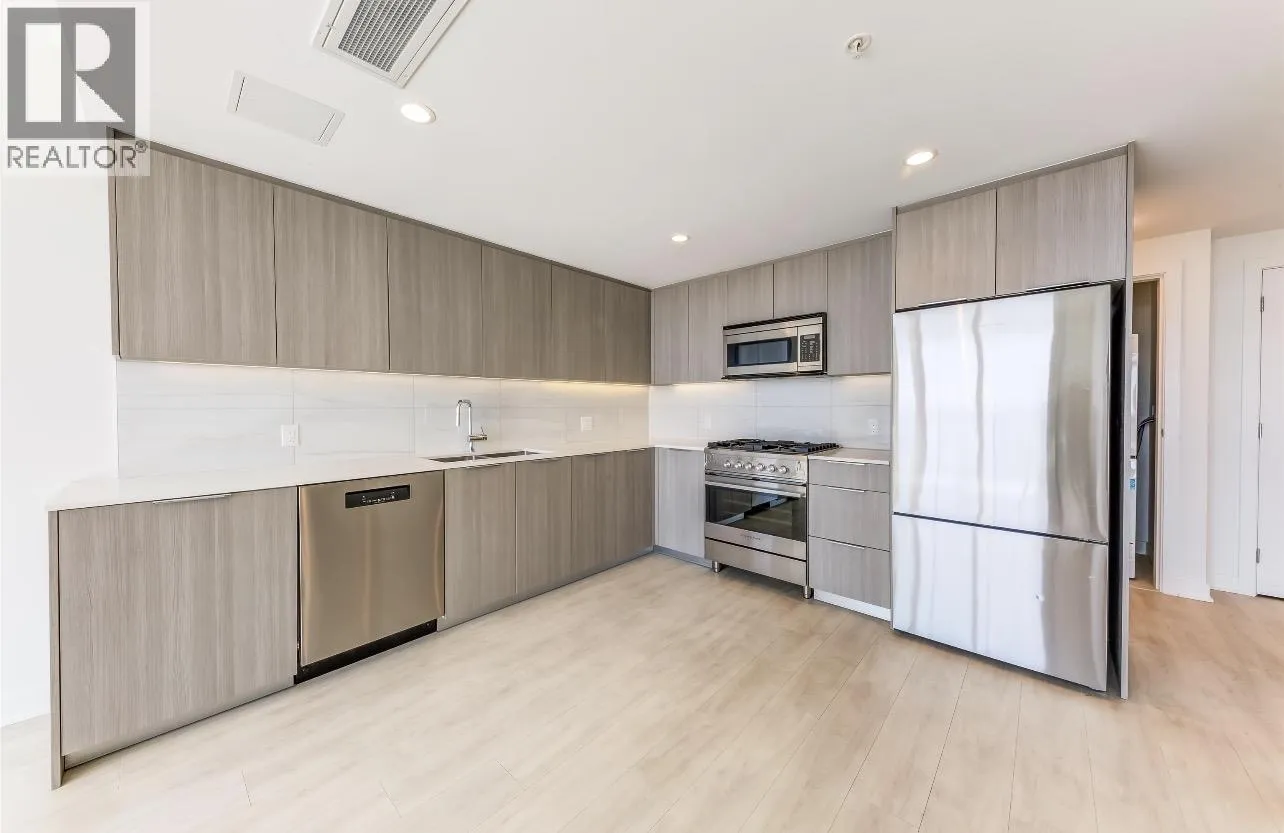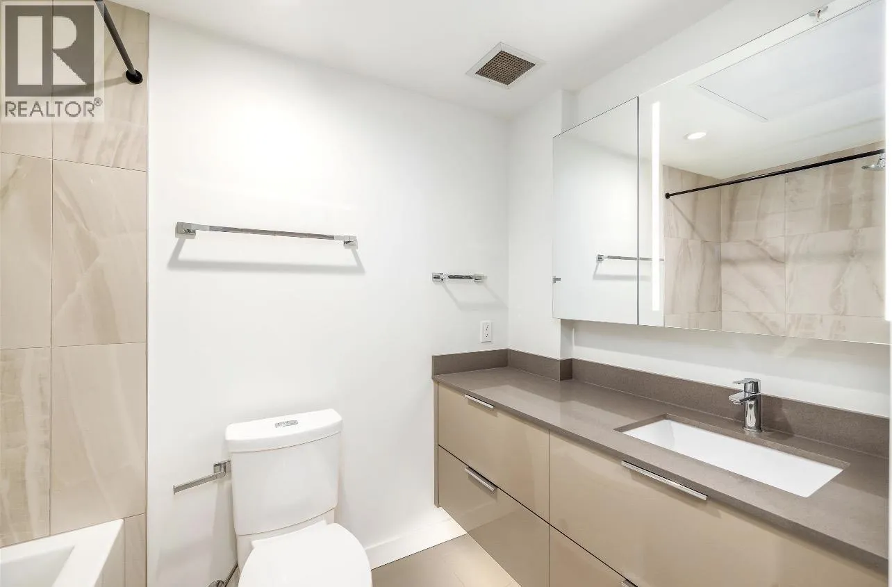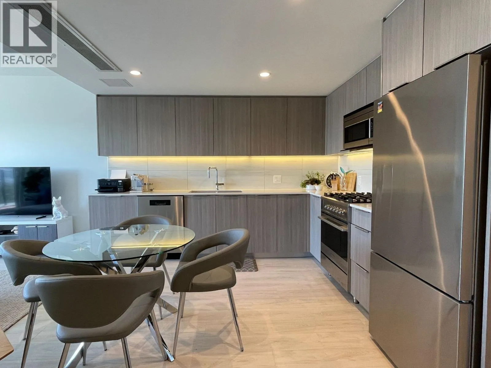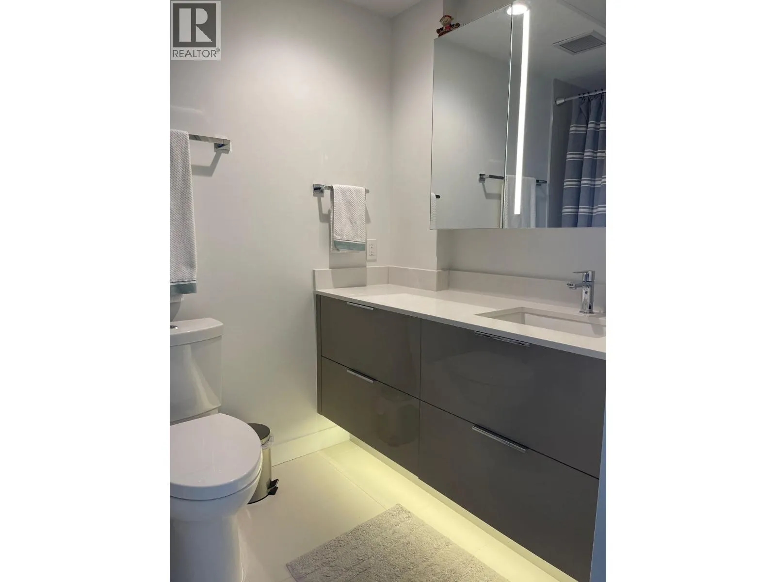 Panoramic WATER & CITY VIEW, on the 20th floor at "Hunter at Lynn Creek" . Bright & spacious SOUTHWEST facing 649 sqft 1 bedroom & Den with A/C at highly sought after development in the neighbourhood developed by Intergulf. Open plan kitchen has ample quarts counter space, modern cabinetry, S/S appliances & gas stove. Large private balcony and unobstructed water and city views will brings you a panoramic view. Few minutes drive from shopping, restaurants, Deep Cove, and Highway 1. The building offers a party room, gym, outdoor BBQ, children playing area, sauna social lounge, wellness centre and bike repair room and tens of visitors parking The unit faces unobstructed south view of water , mountains and second narrow bridge. EV Parking: P1-#264, Locker:P1 122-#40. (id:27476)