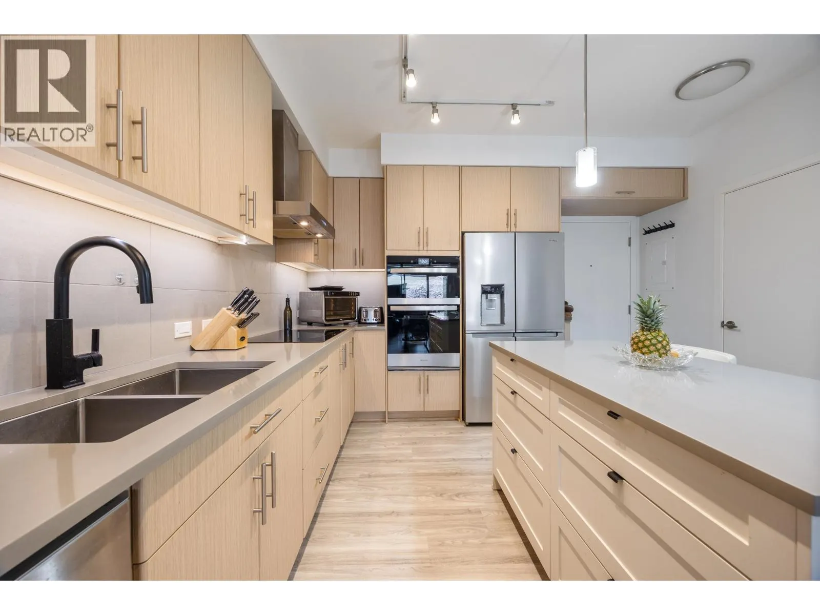 Highly sought-after Millhouse by Marcon! Perfectly positioned on the quiet side of the building, offering stunning mountain views. The thoughtfully updated kitchen features new cabinetry with added storage and premium appliances, including a Bosch induction cooktop, Bosch dishwasher, and Whirlpool built-in wall oven and microwave, along with a Whirlpool refrigerator with water dispenser. Enjoy a spacious 2 bed, 2 bath 867 sqft layout, open-concept living, and large entertainer´s kitchen that flows seamlessly into the living area. Thoughtful updates include newer washer & dryer, California Closet, plus updated flooring in the living area, adding comfort and convenience throughout. Pet-friendly, with a secure oversized roller-style storage locker, fantastic amenity room. Located in the heart of Lynn Valley, you´re just steps to shopping, schools, parks, and trails. A perfect blend of lifestyle, location, and value, this is one you don´t want to miss. (id:27476)