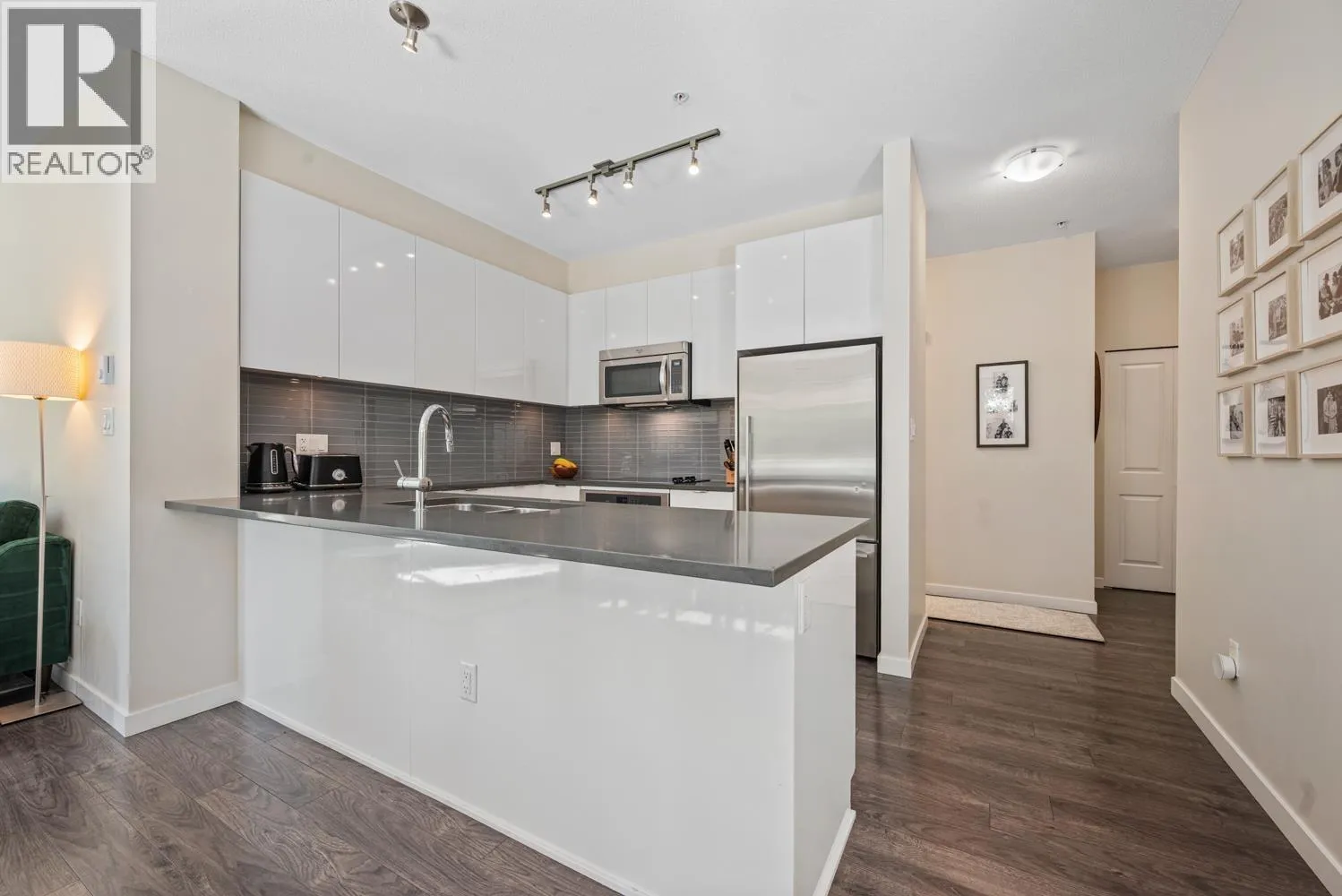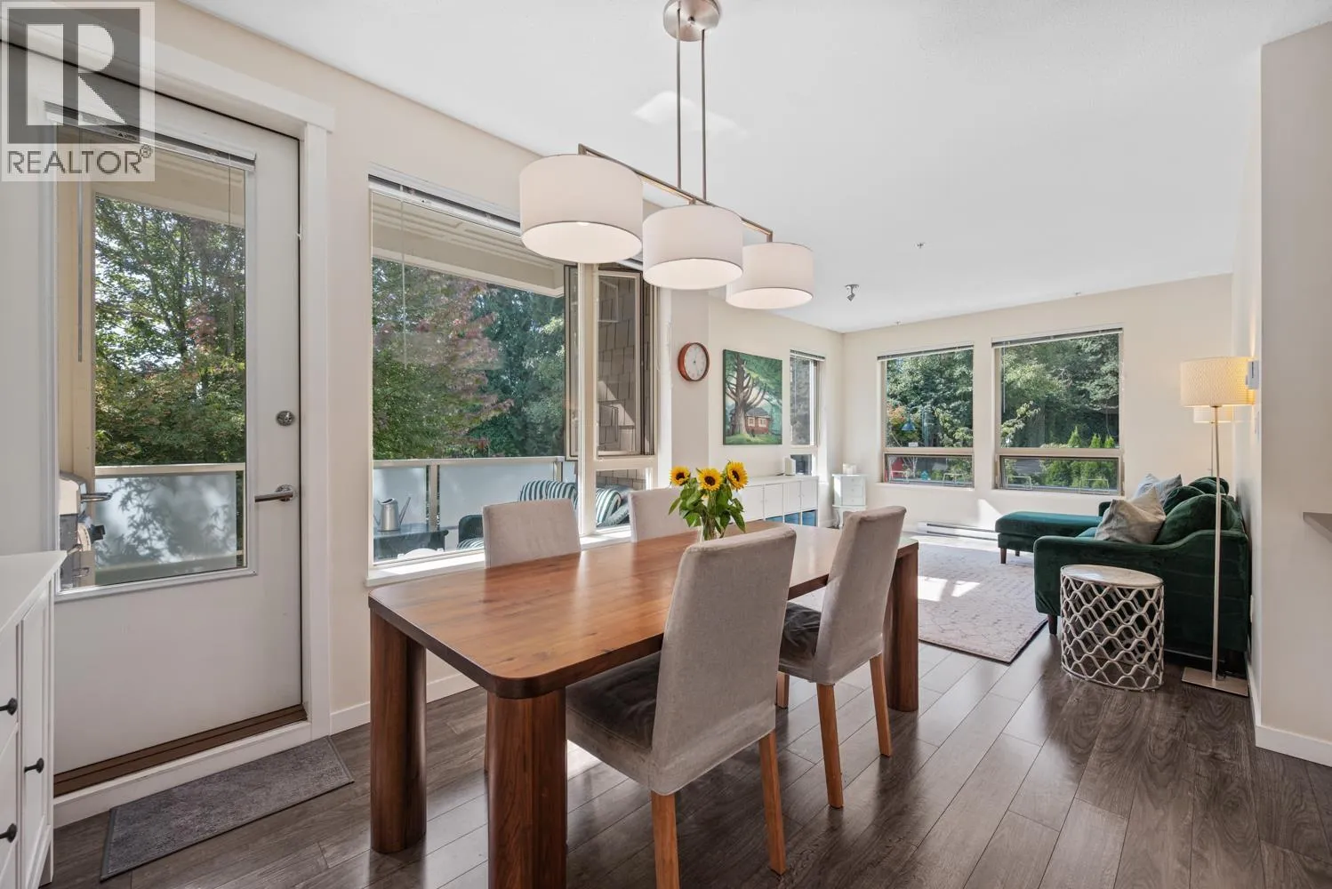 Bright 3 bed, 2 bath corner home in the heart of Lynn Valley! Quiet SW exposure with 9´ ceilings, wide-plank floors, and an open concept layout. The kitchen boasts quartz counters, stainless appliances, and abundant storage. Generous living and dining areas fit house-size furniture. Primary suite includes a walk-in closet and spa-like ensuite with double sinks, soaker tub, and glass shower. Two additional bedrooms plus full bath offer flexibility. Oversized secure storage easily accommodates bikes, kayaks, and outdoor gear. A sought-after building with excellent amenities, steps to shops, schools, trails, and world-class mountain biking. (id:27476)